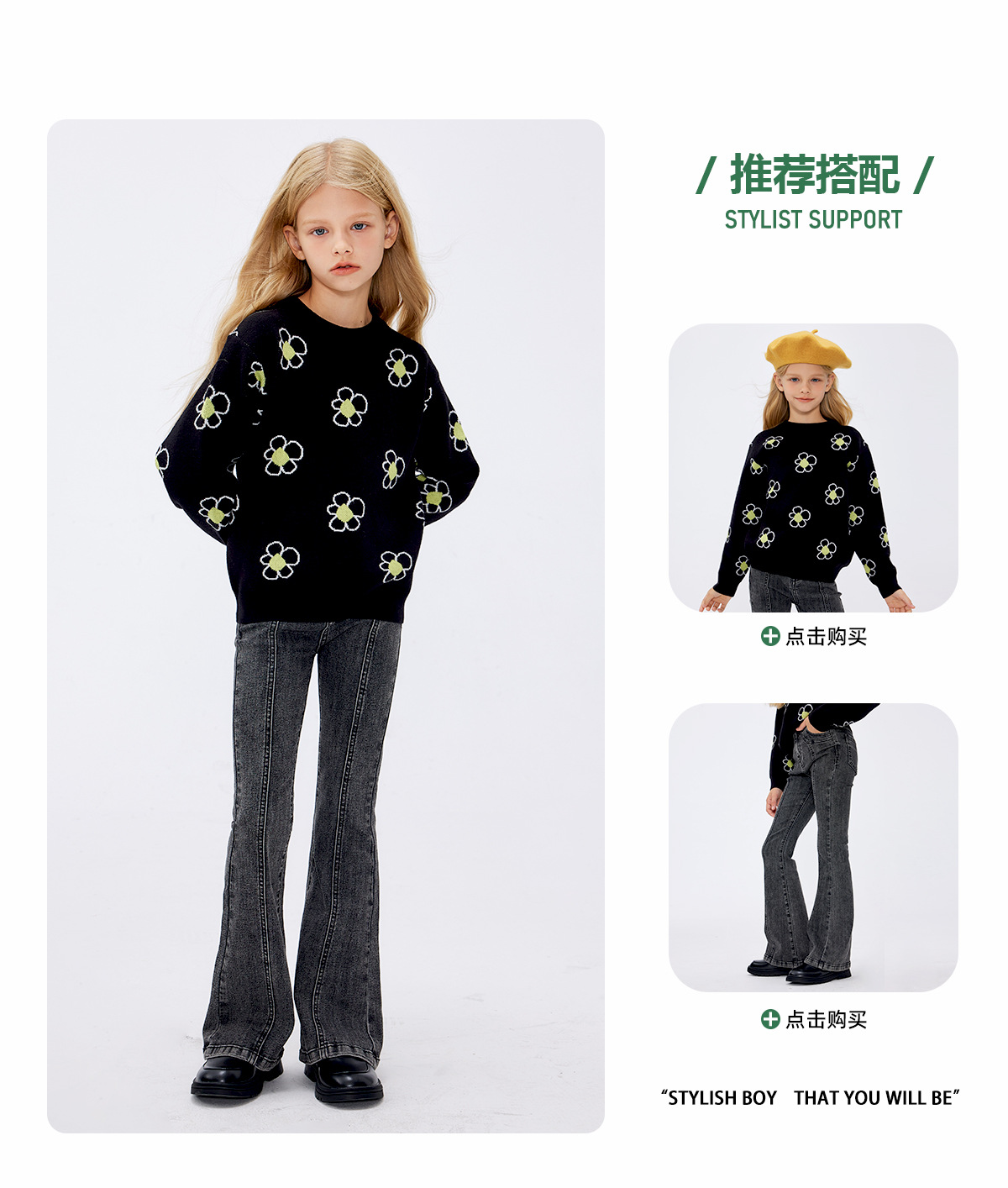DK 아동복 가을 신작 여아 핫걸 청바지 플레어 팬츠 중대형 아동 슬리밍 와이드 팬츠스토어 가기