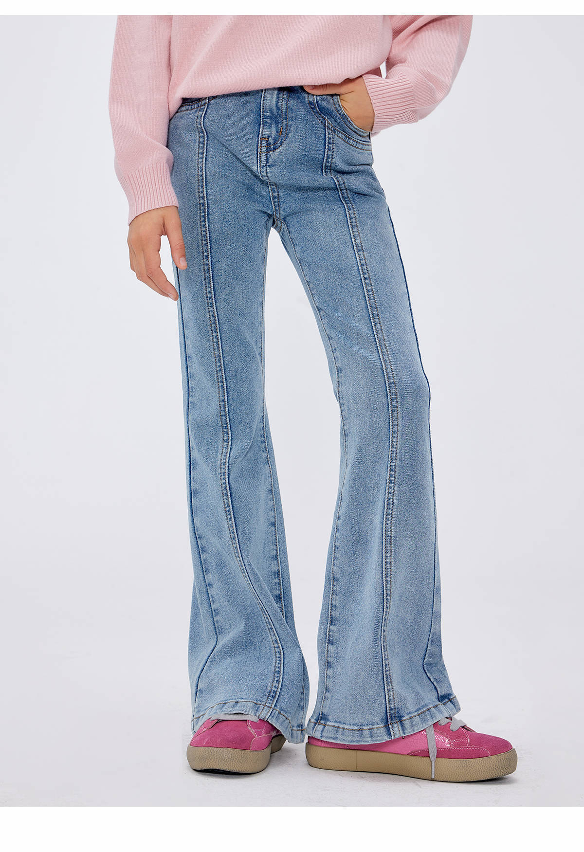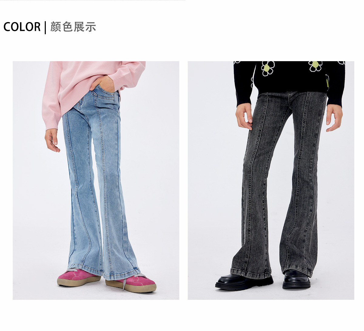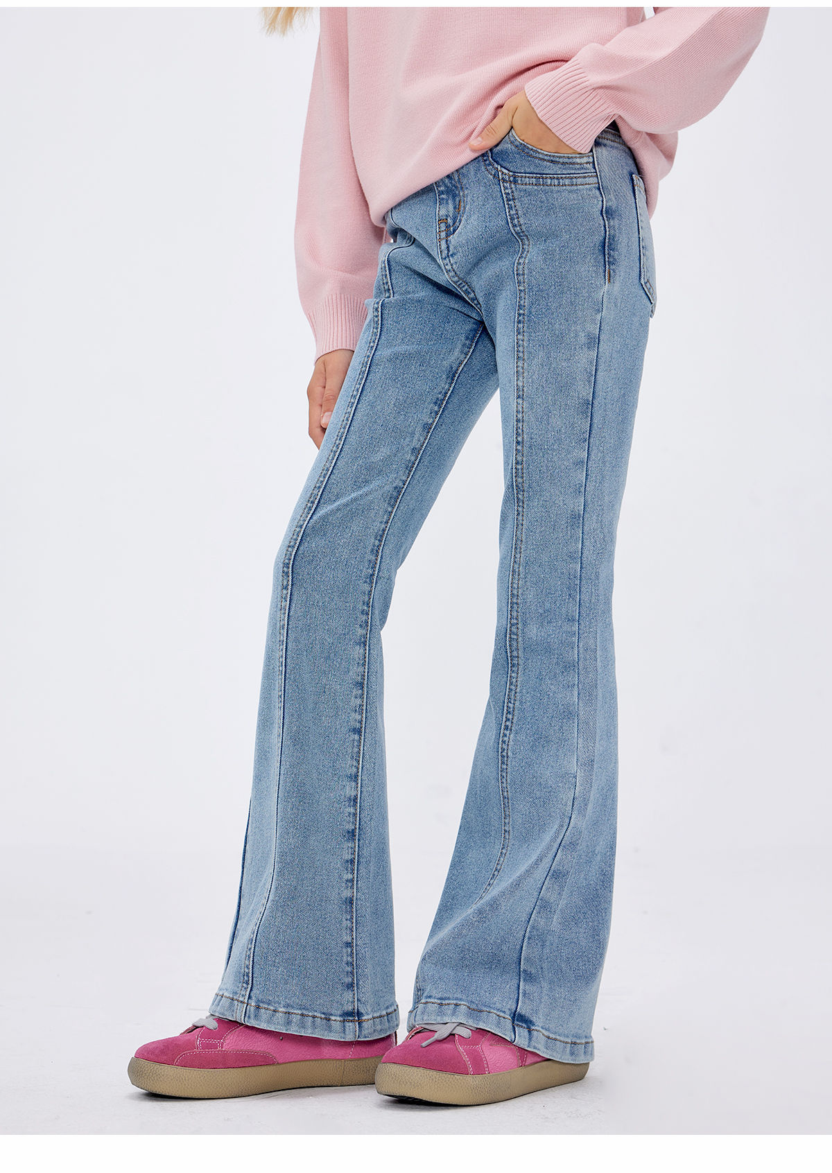 DK 아동복 가을 신작 여아 핫걸 청바지 플레어 팬츠 중대형 아동 슬리밍 와이드 팬츠