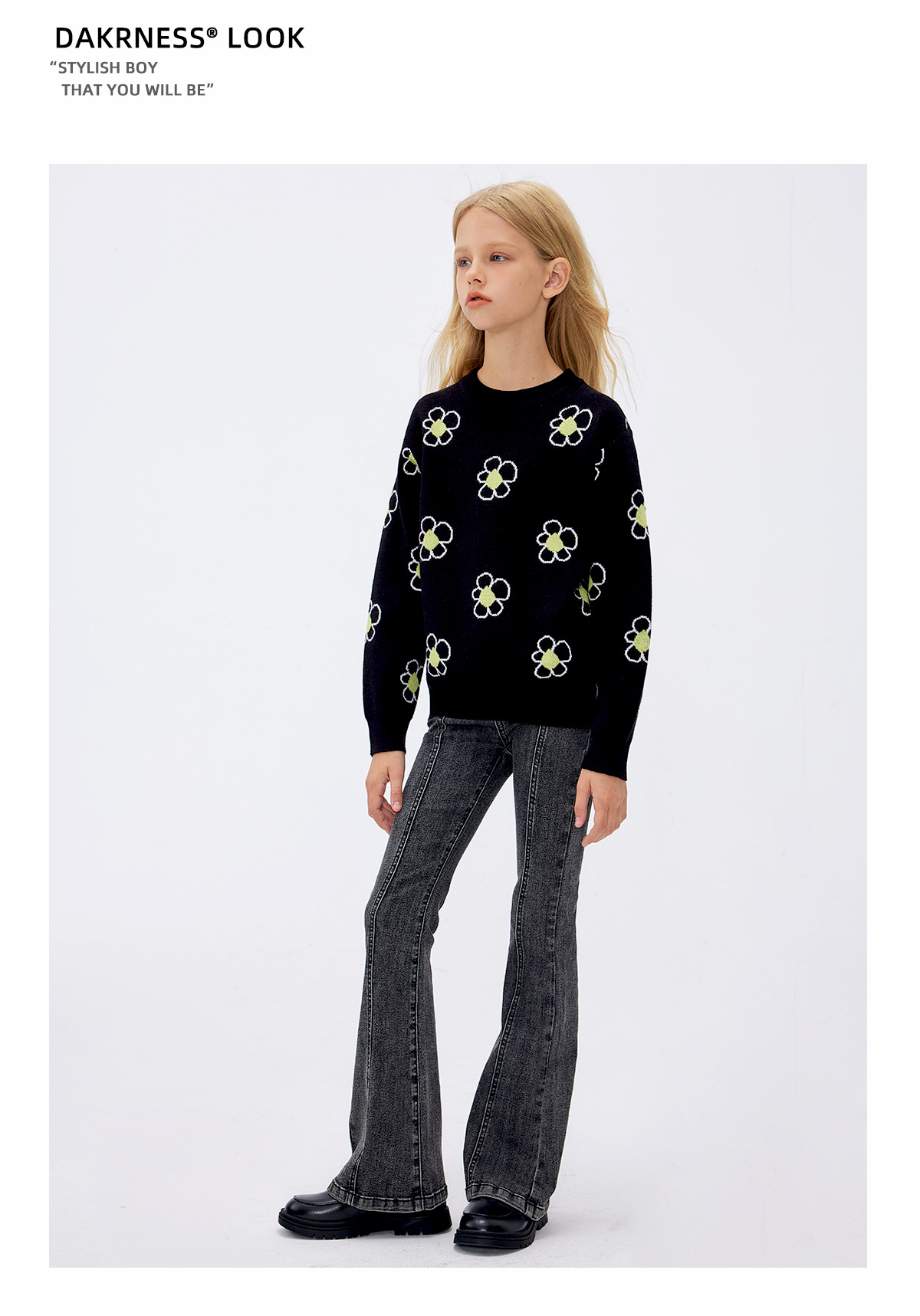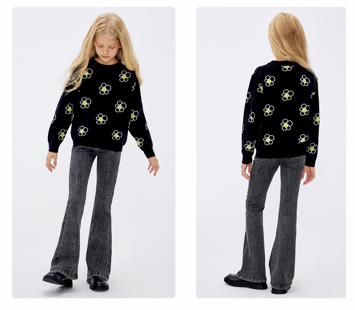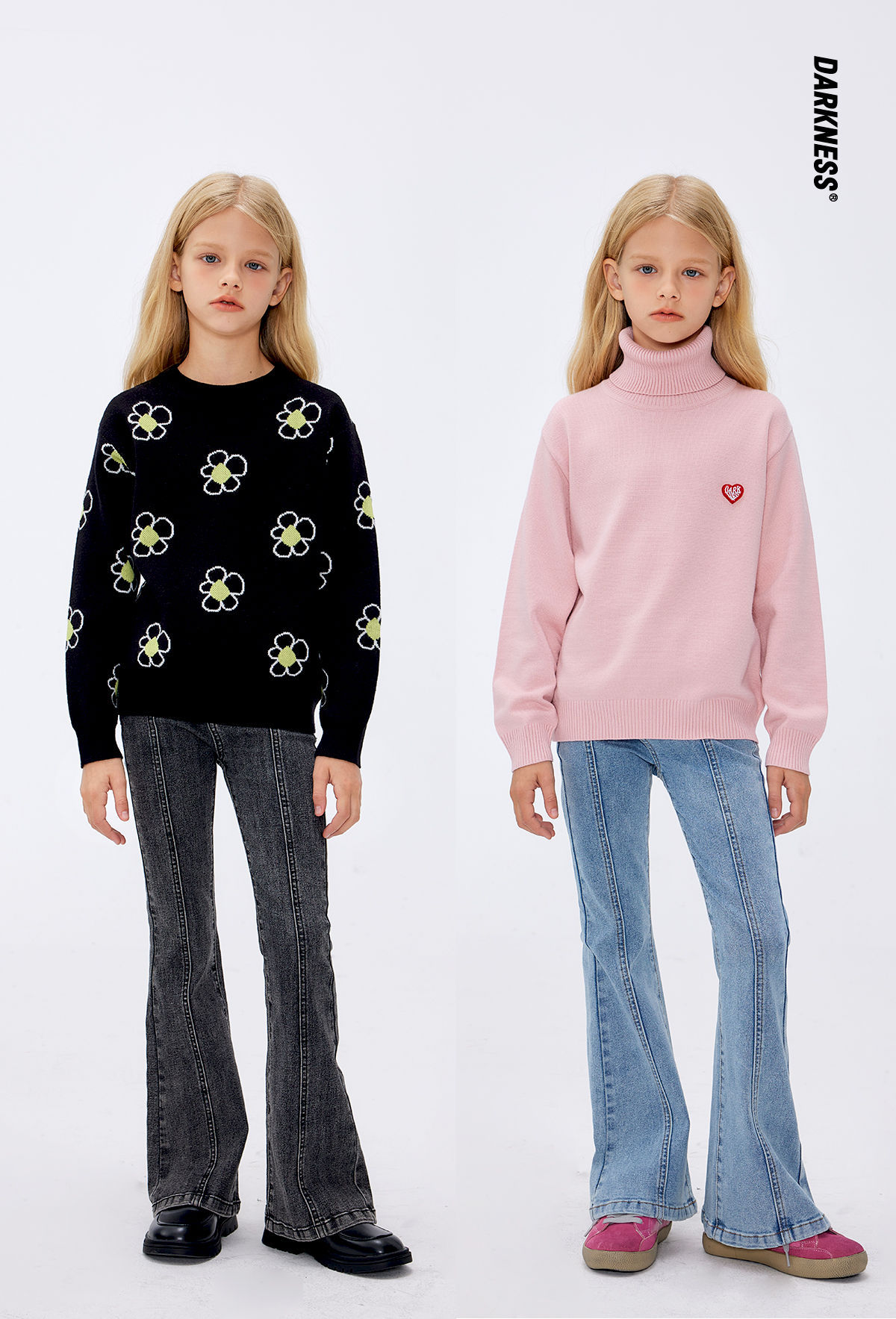 DK 아동복 가을 신작 여아 핫걸 청바지 플레어 팬츠 중대형 아동 슬리밍 와이드 팬츠