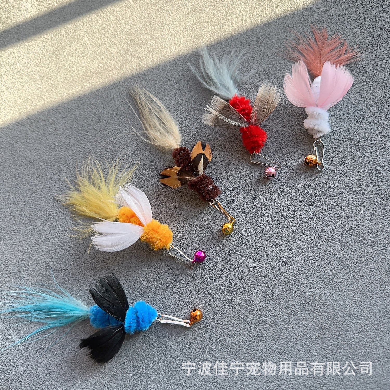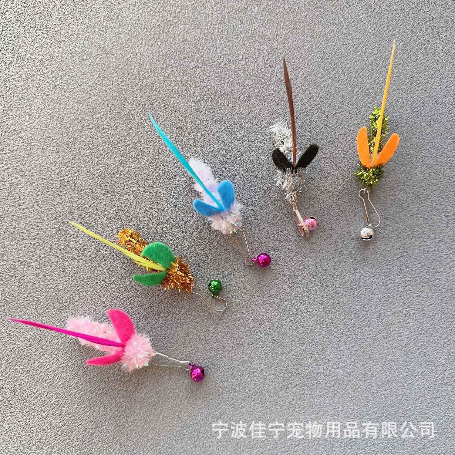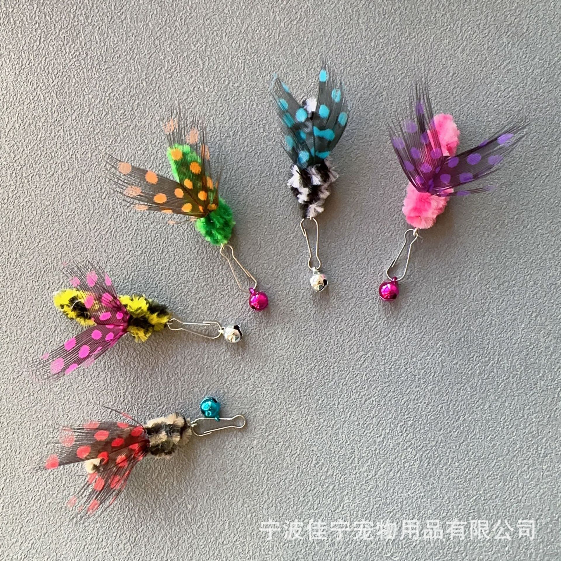 국경 간 귀여운 모델링 곤충 고양이 스틱 교체 머리 물림 방지 깃털 고양이 장난감 작은 비행 곤충 애완 동물 대화 형 용품스토어 가기
