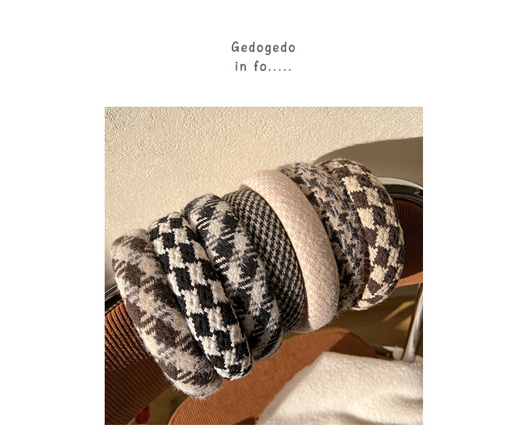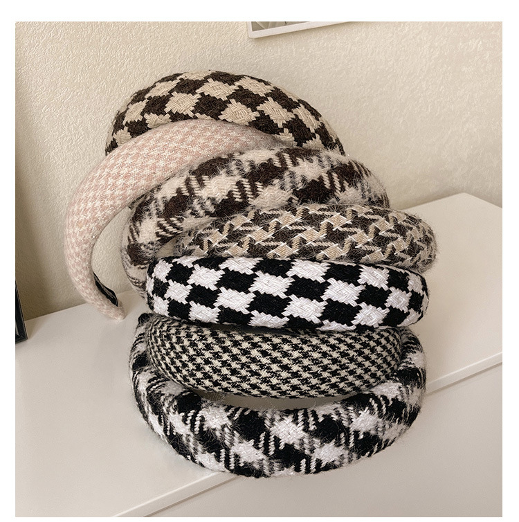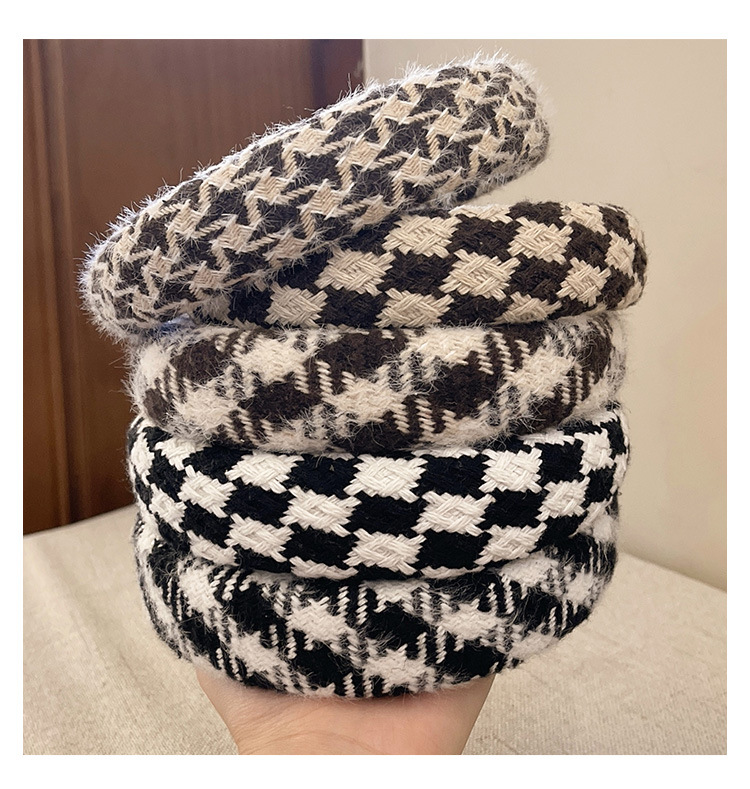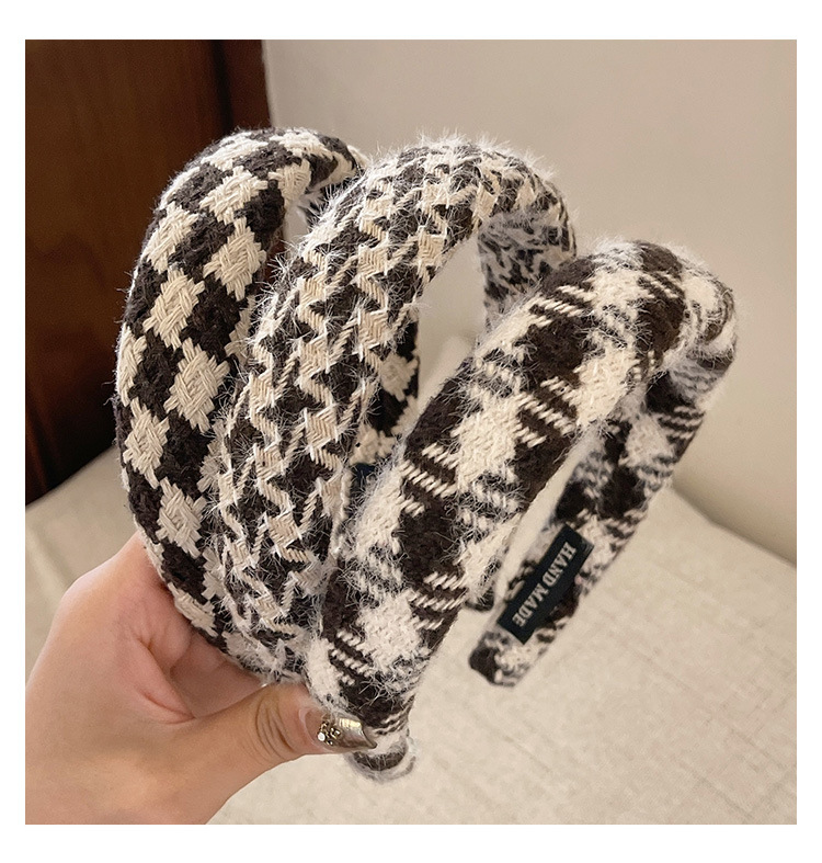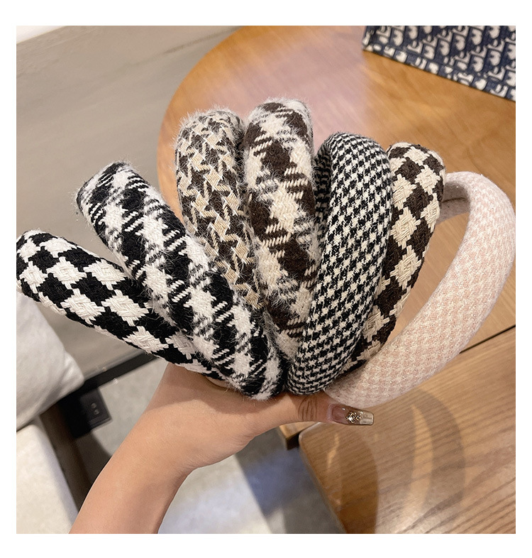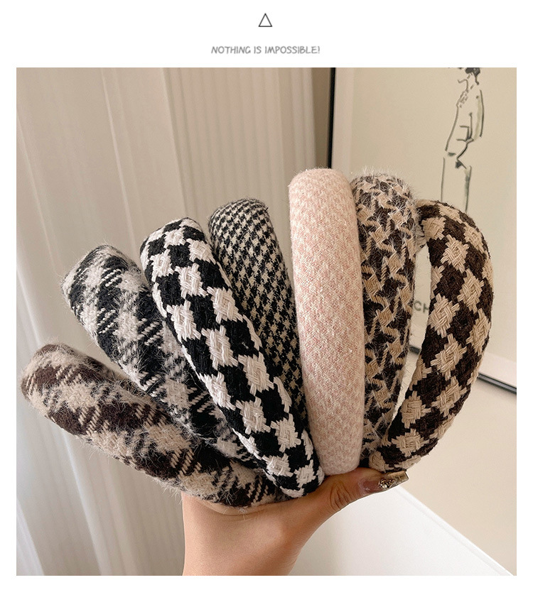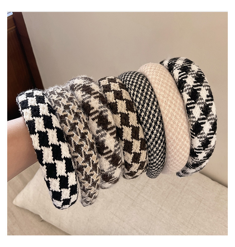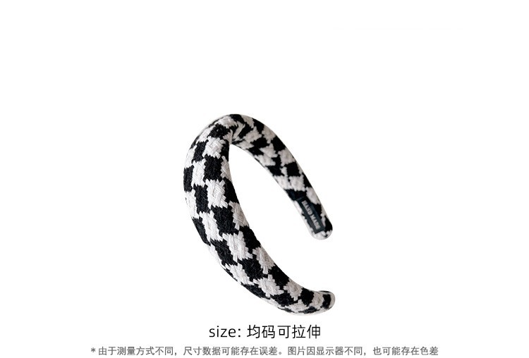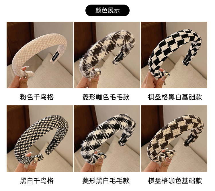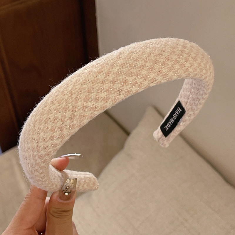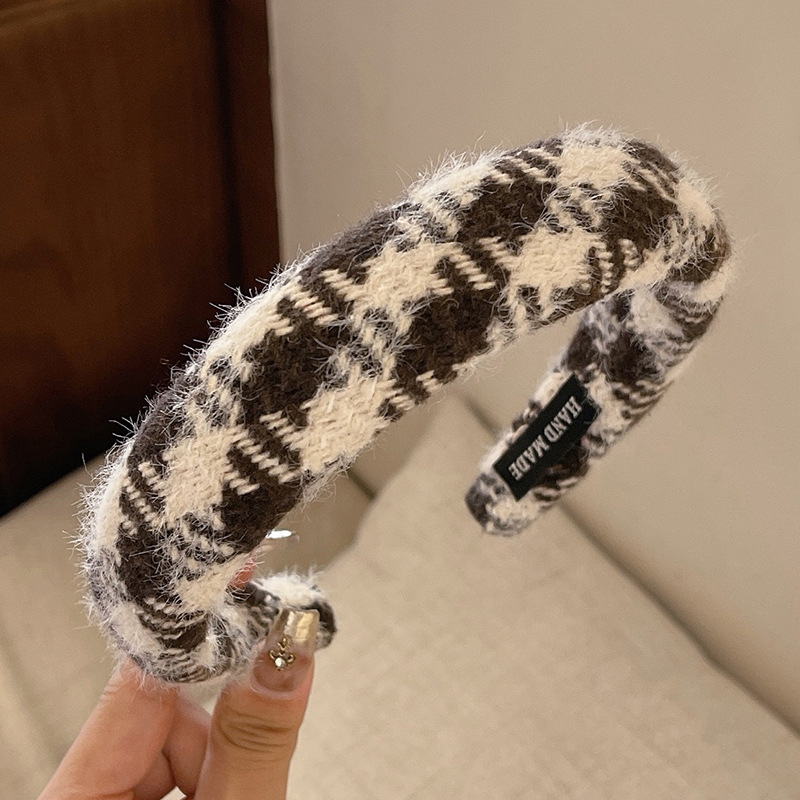 한국식 Houndstooth 스폰지 헤어 후프 여성용 가을과 겨울 높은 두개골 최고 압력 헤어 스탬프 고급 감각 모든 매치 외부 시작 헤어 후프스토어 가기