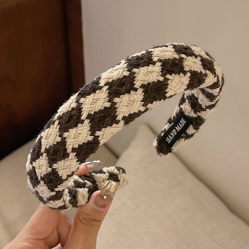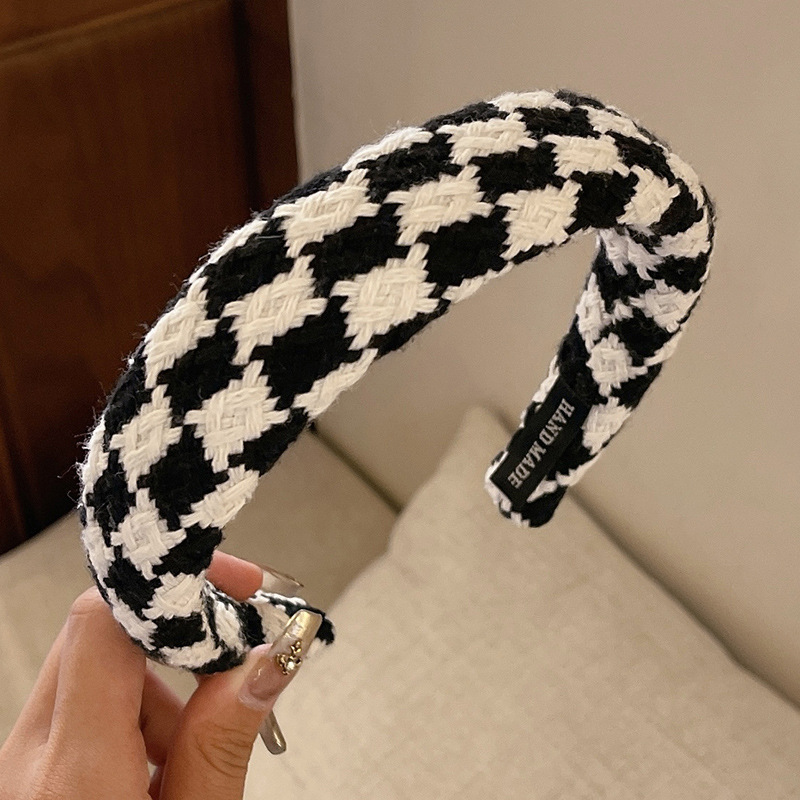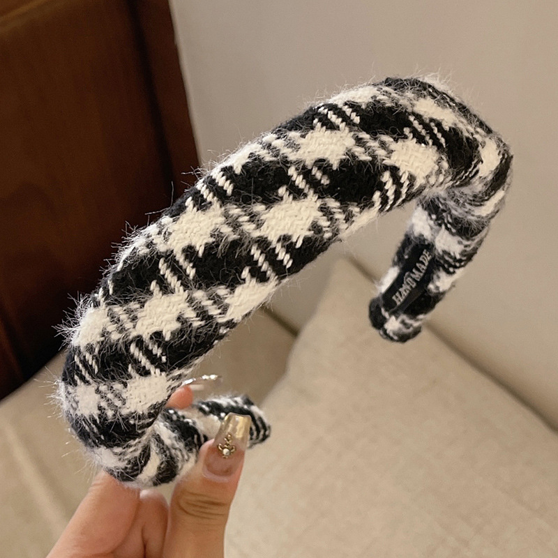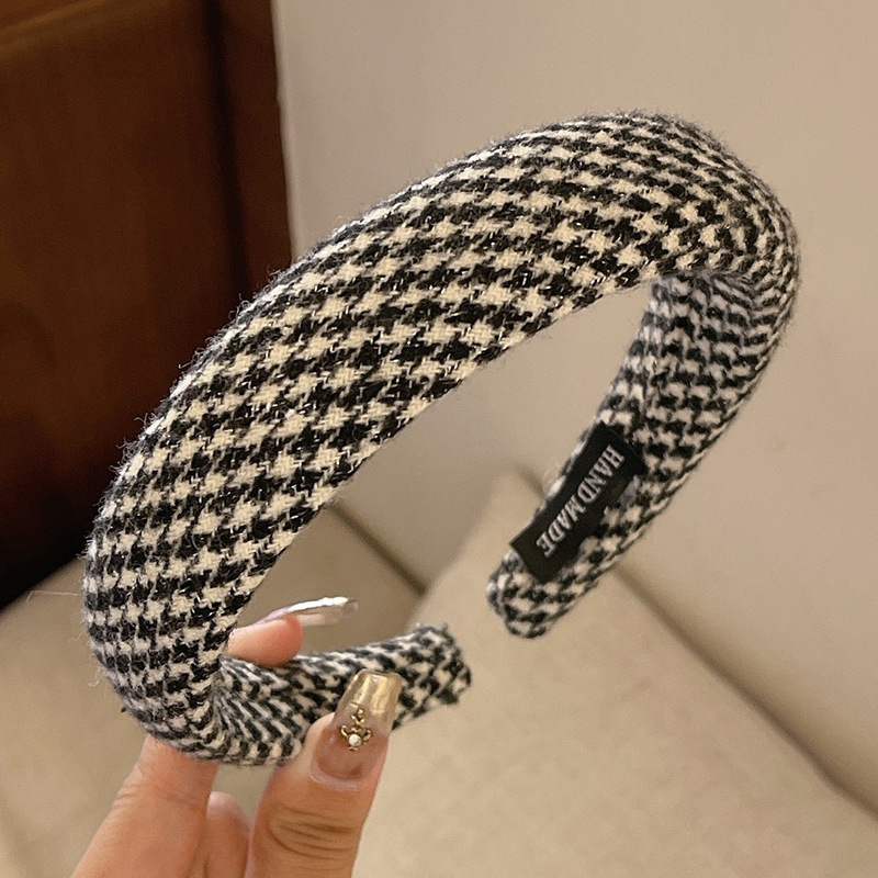 한국식 Houndstooth 스폰지 헤어 후프 여성용 가을과 겨울 높은 두개골 최고 압력 헤어 스탬프 고급 감각 모든 매치 외부 시작 헤어 후프