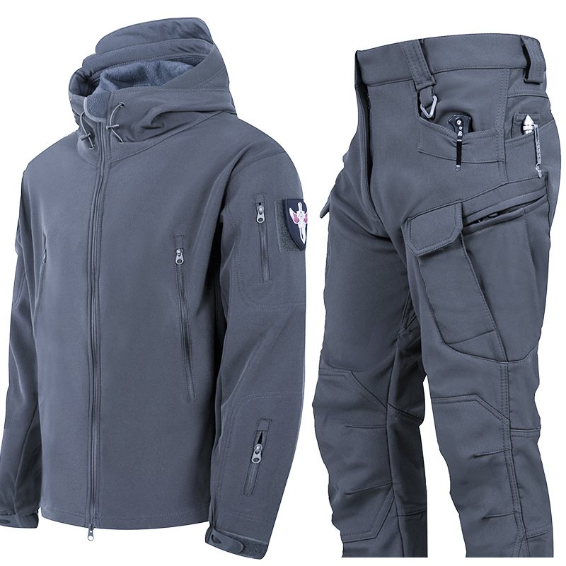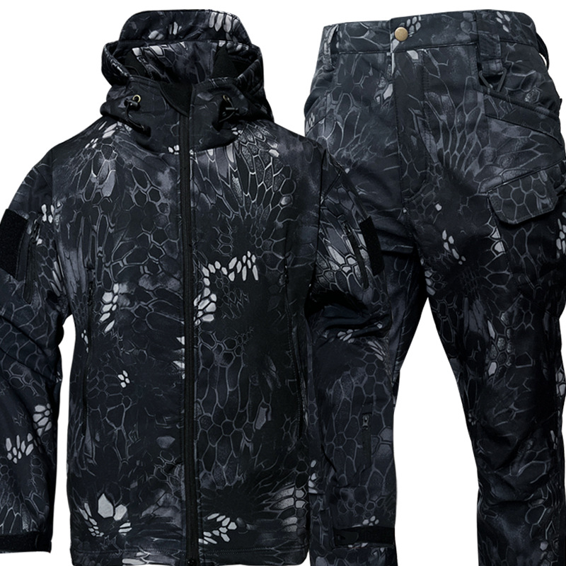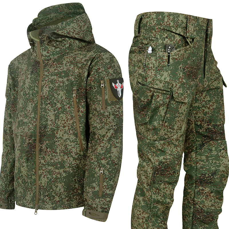 재고 상어 피부 충전 코트 위장 세트 가을과 겨울 야외 차가운 세트 두꺼운 따뜻한 충전 코트