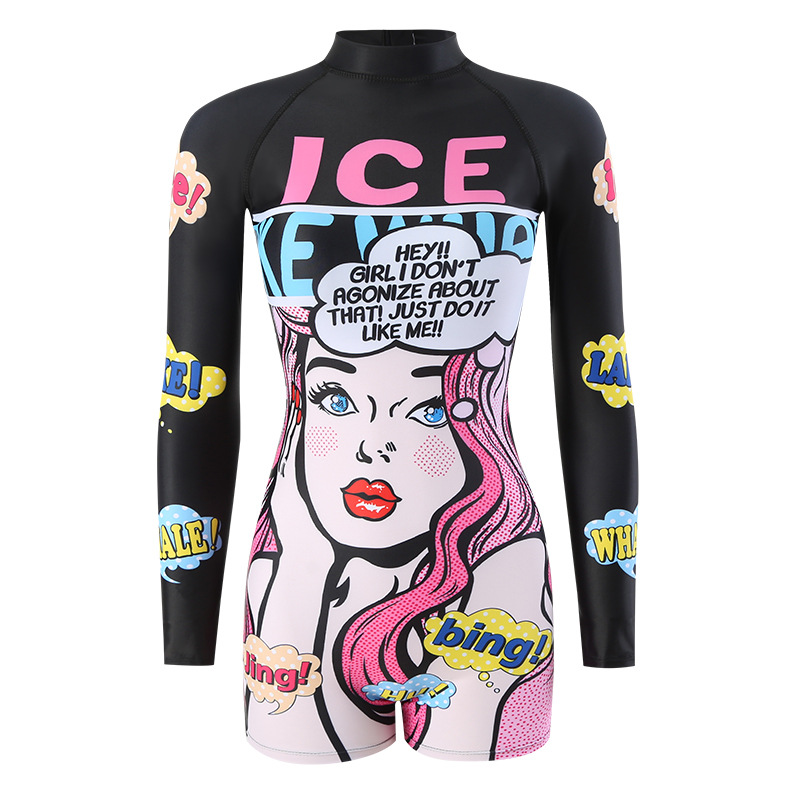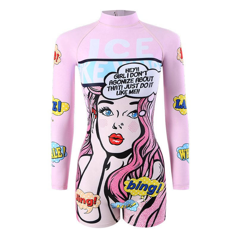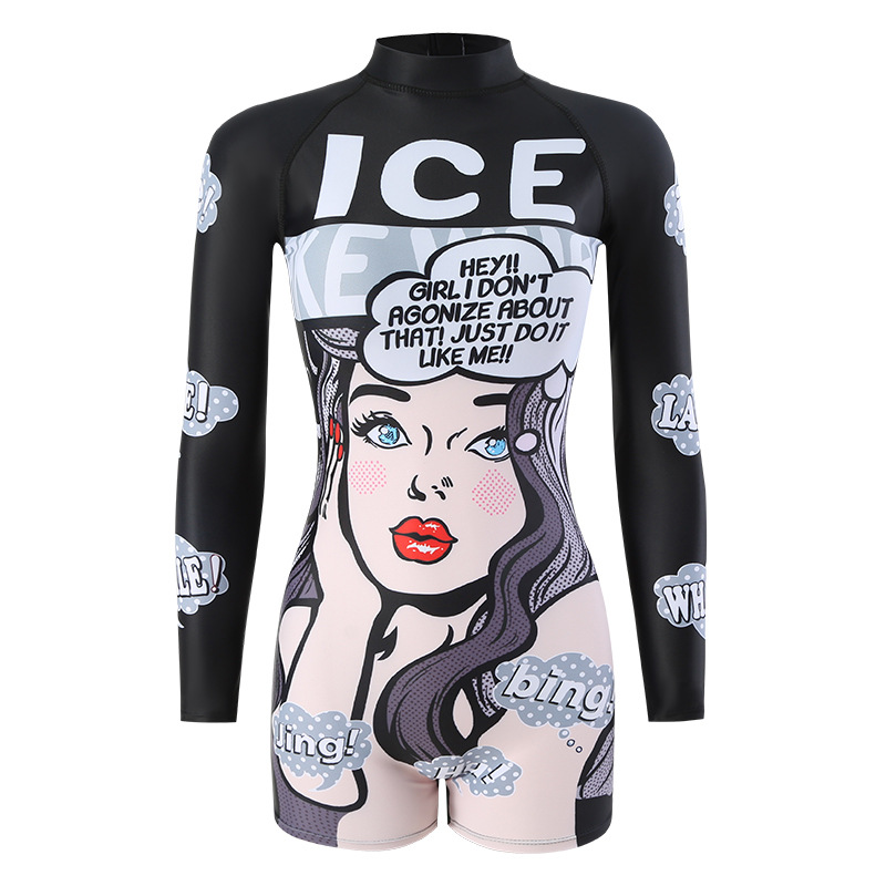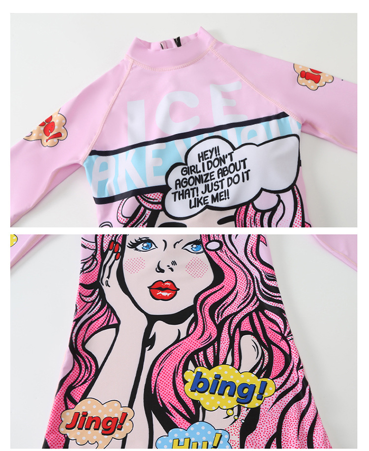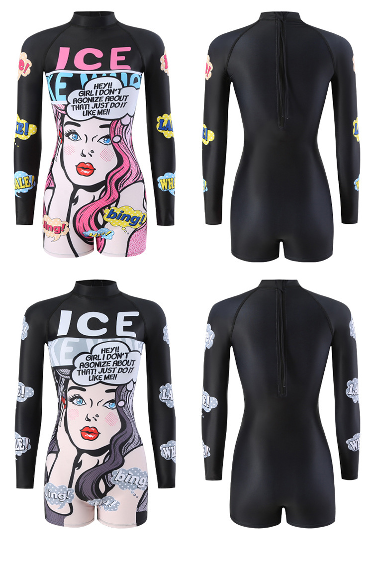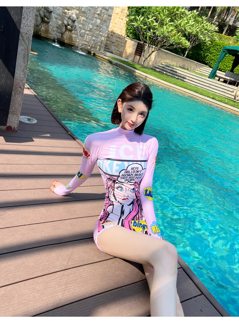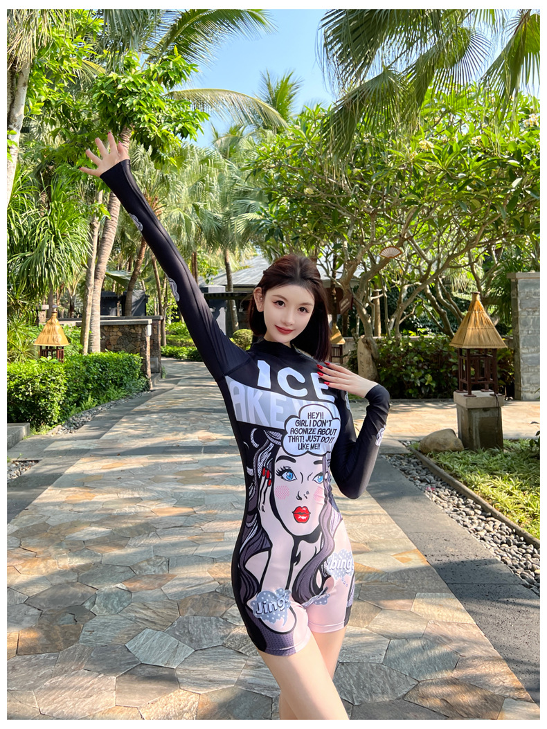 수영복 여성 원피스 복서 보수적 인 만화 배꼽 서핑 긴 소매 태양 보호 온천 학생 해변 스노클링 수영복