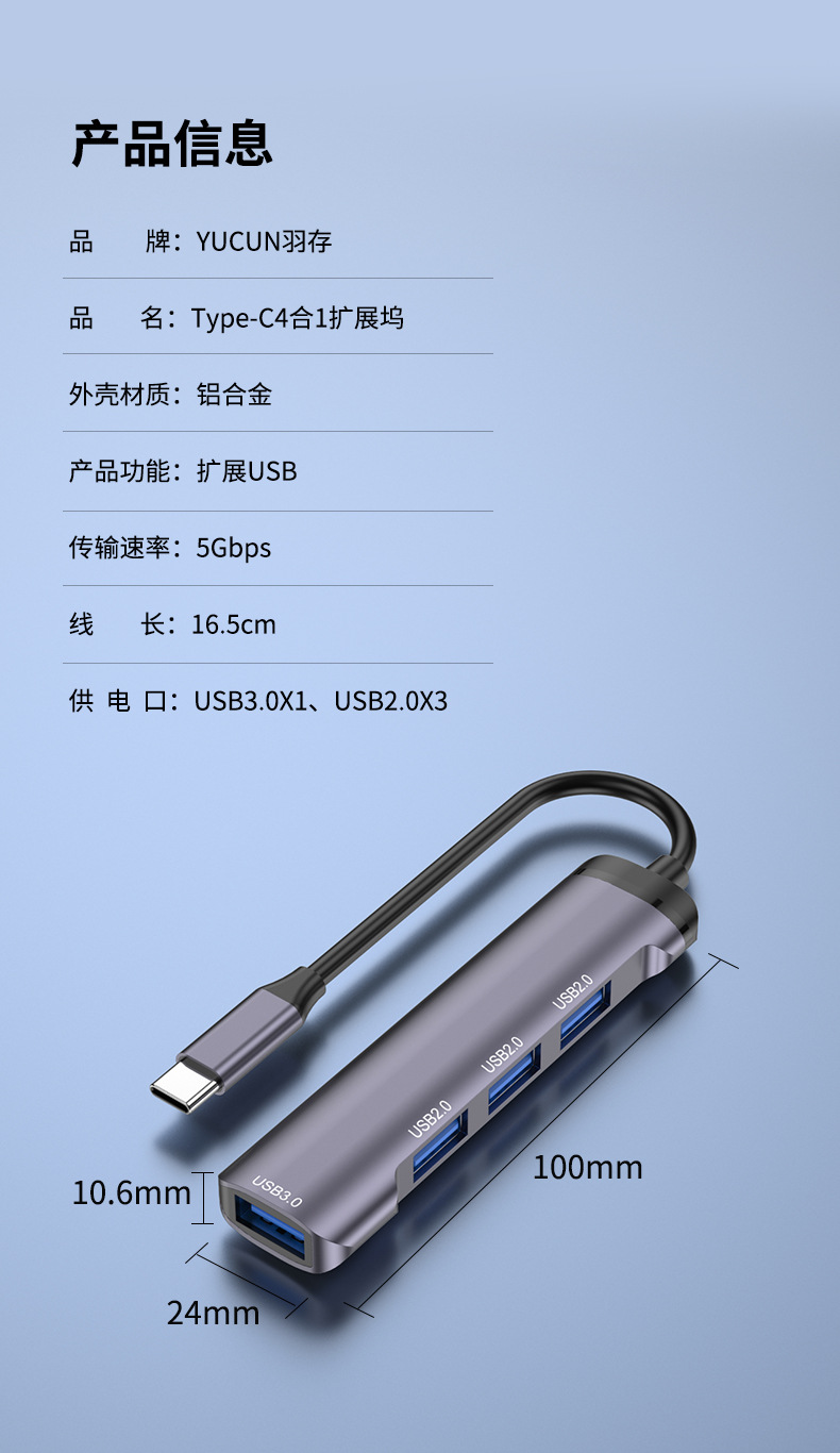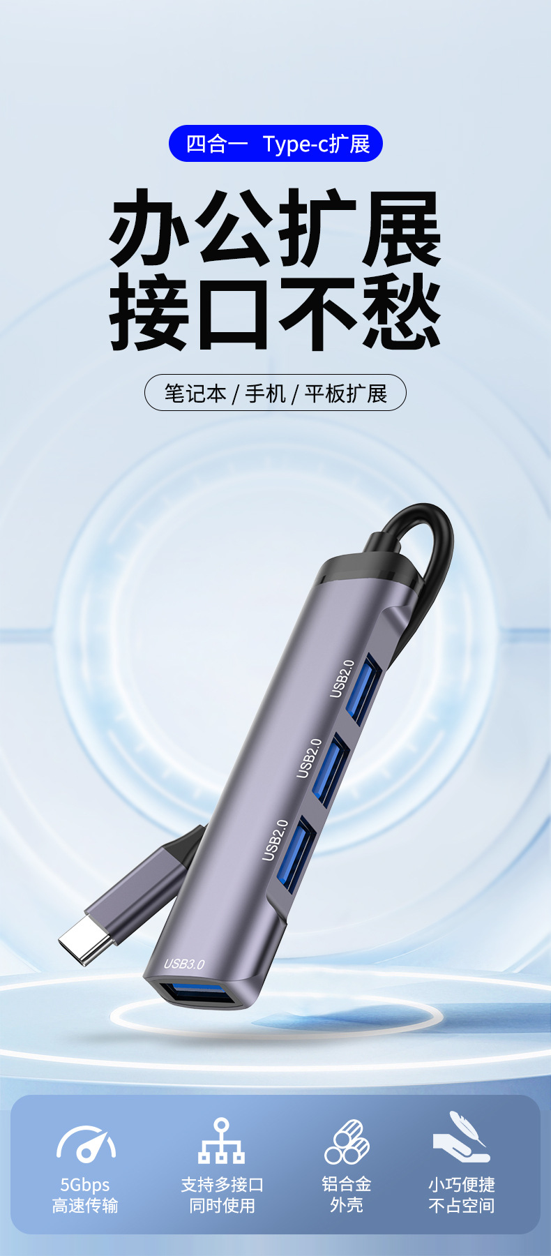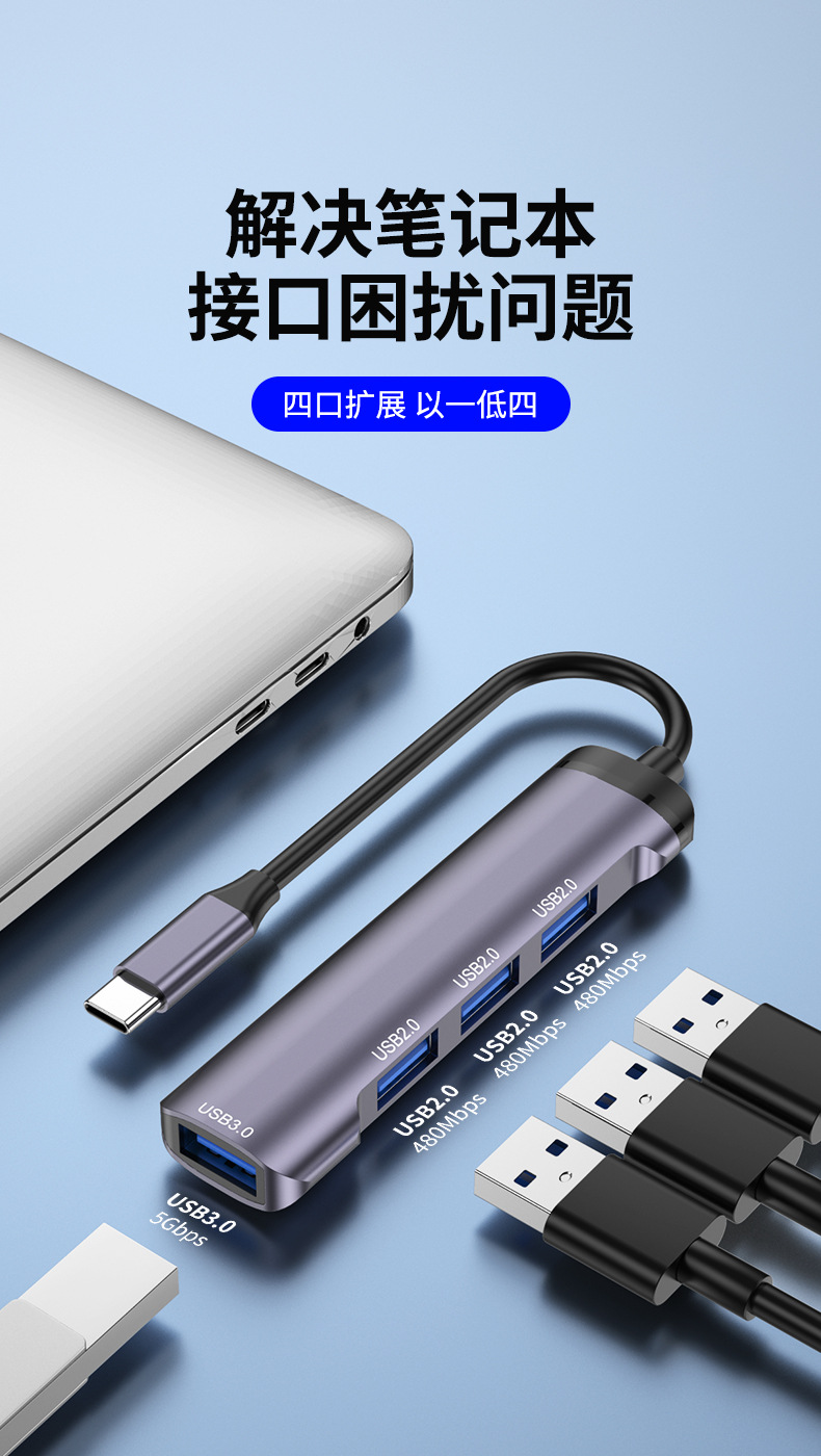국경 간 새로운 TYPE C 4 대 1 익스텐더 USB3.0USB2.0 4 대 1 도킹 스테이션 지원 5Gbps스토어 가기