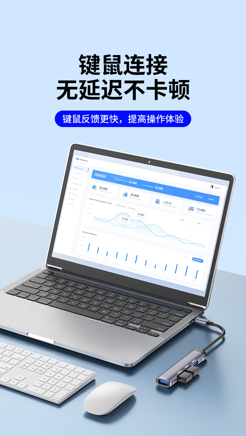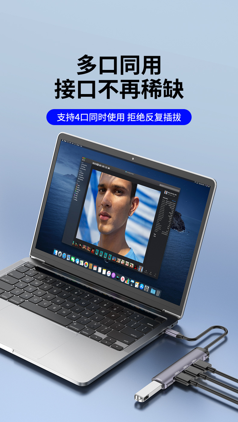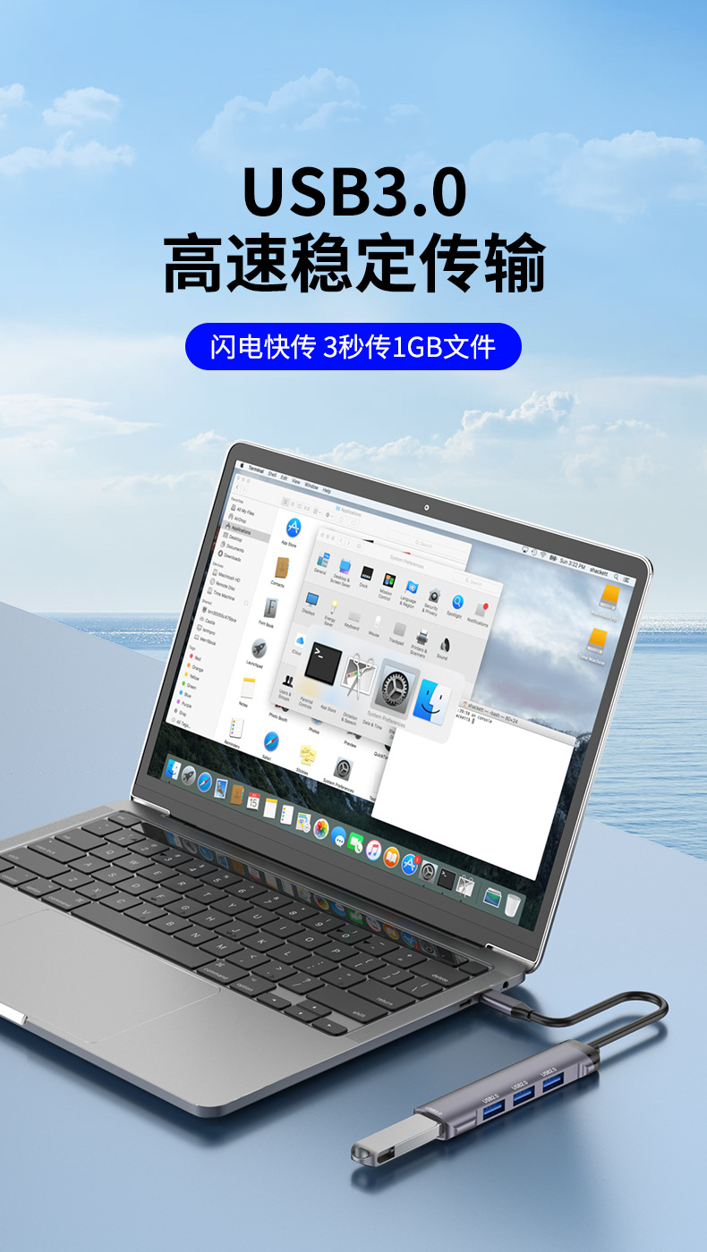 국경 간 새로운 TYPE C 4 대 1 익스텐더 USB3.0USB2.0 4 대 1 도킹 스테이션 지원 5Gbps스토어 가기