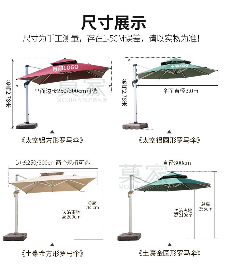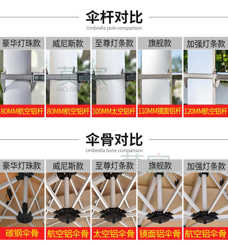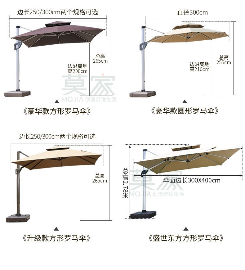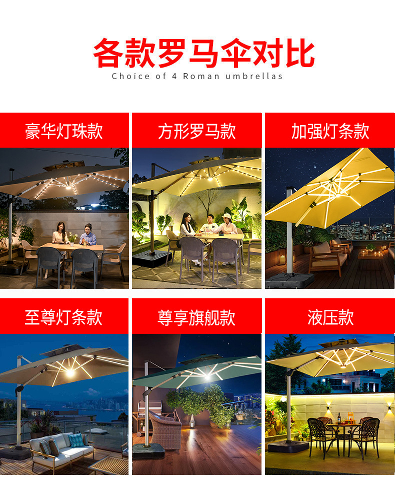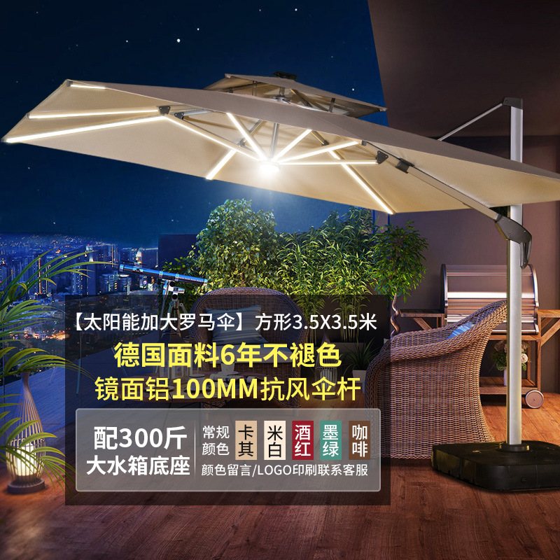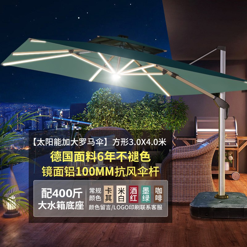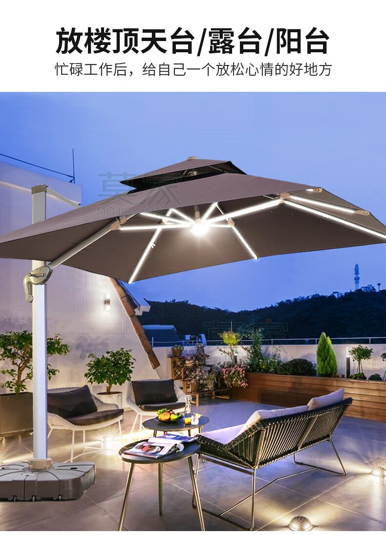 Mojia 야외 태양 차양 정원 큰 LED 빛의 날과 밤 야외 스톨 로마 우산스토어 가기