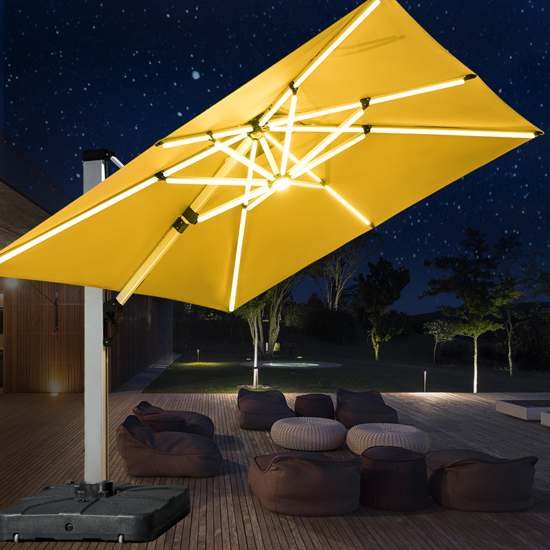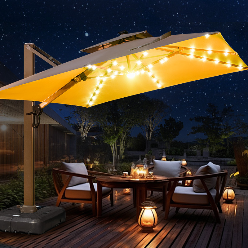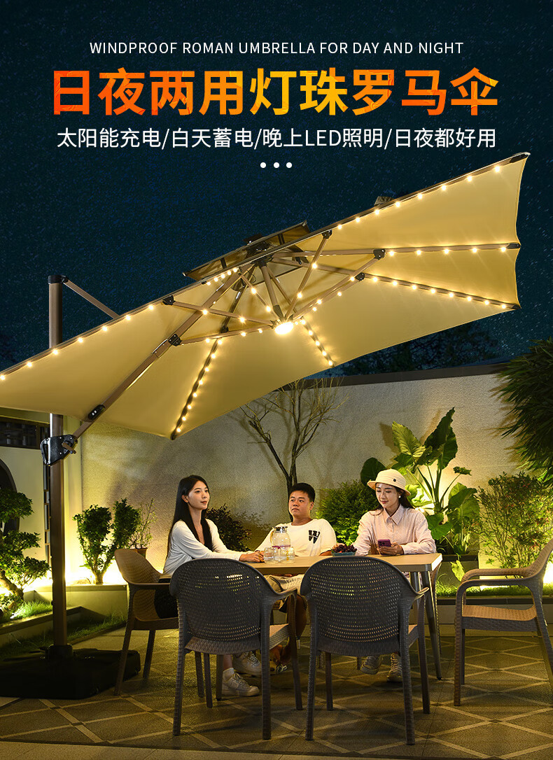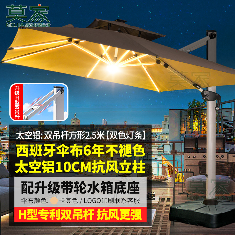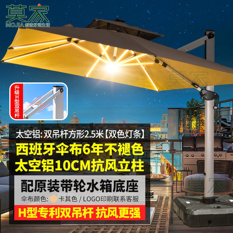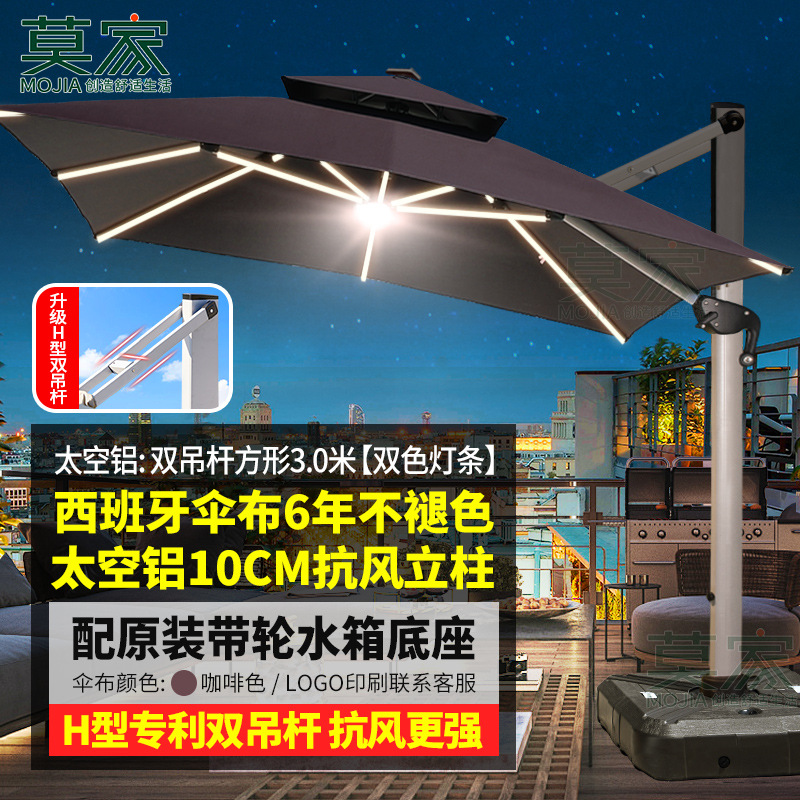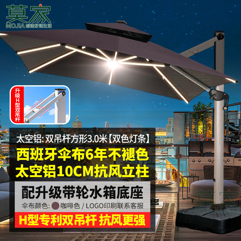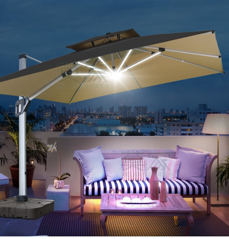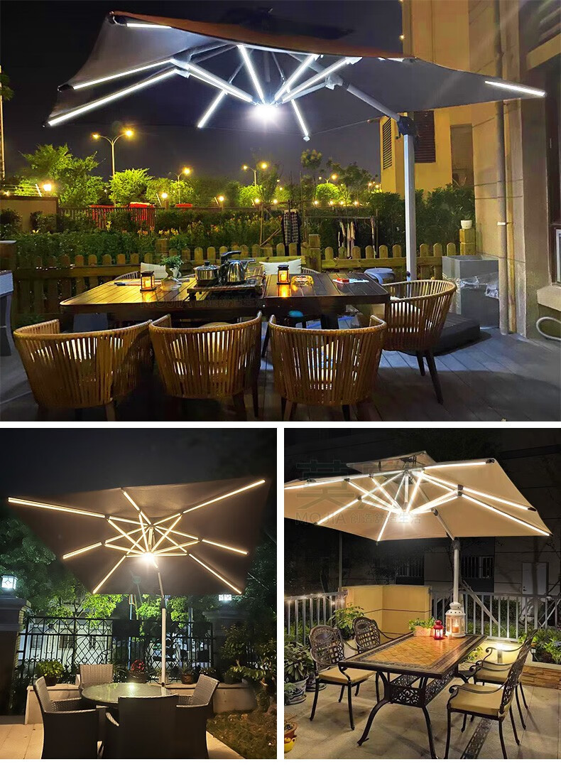 Mojia 야외 태양 차양 정원 큰 LED 빛의 날과 밤 야외 스톨 로마 우산