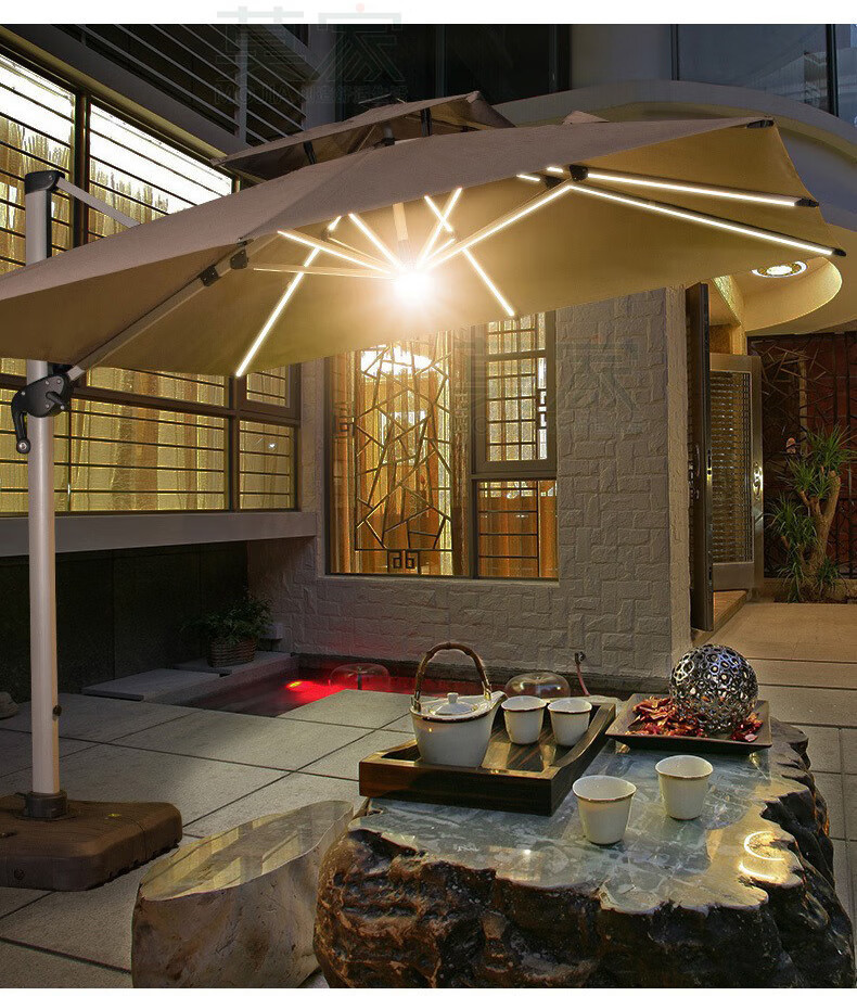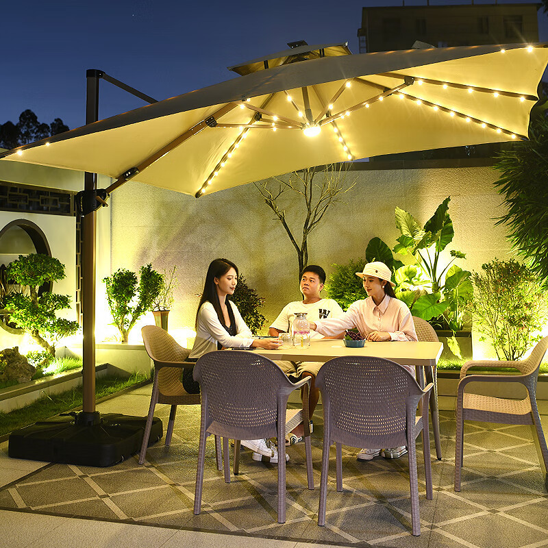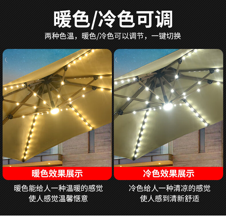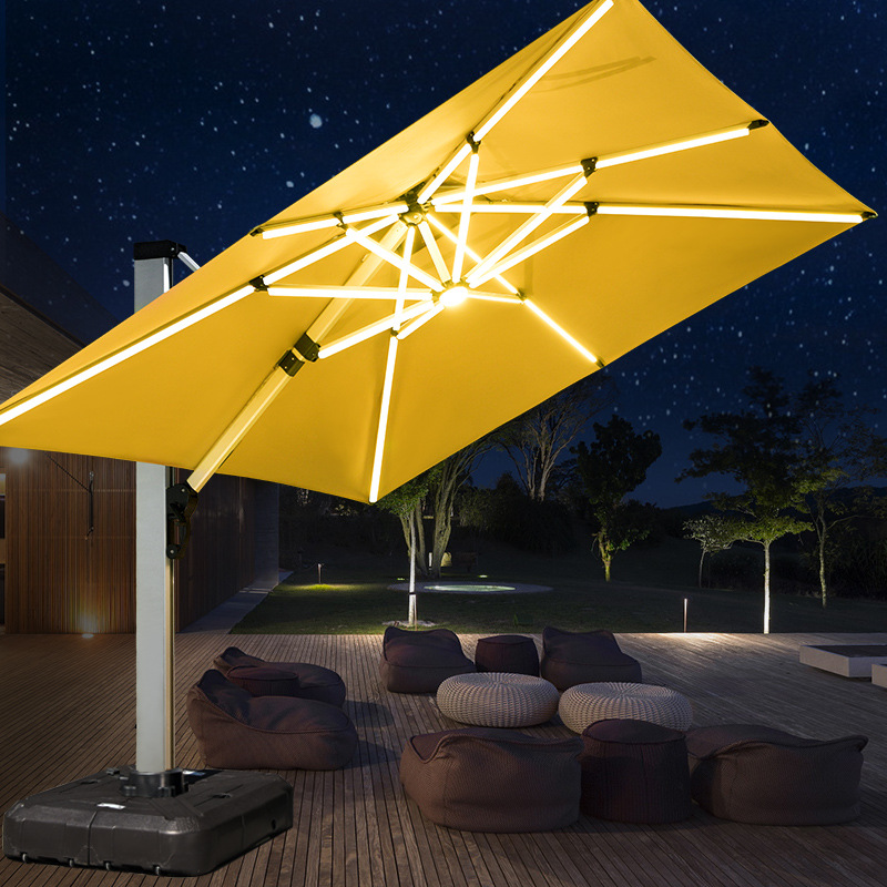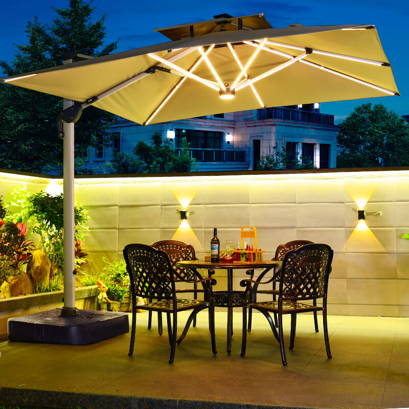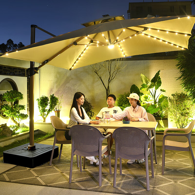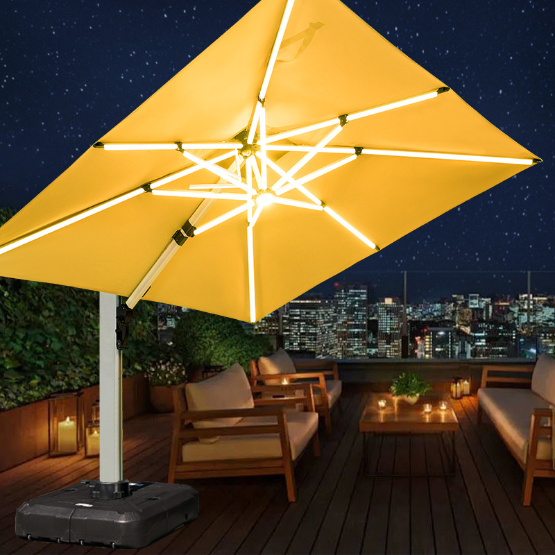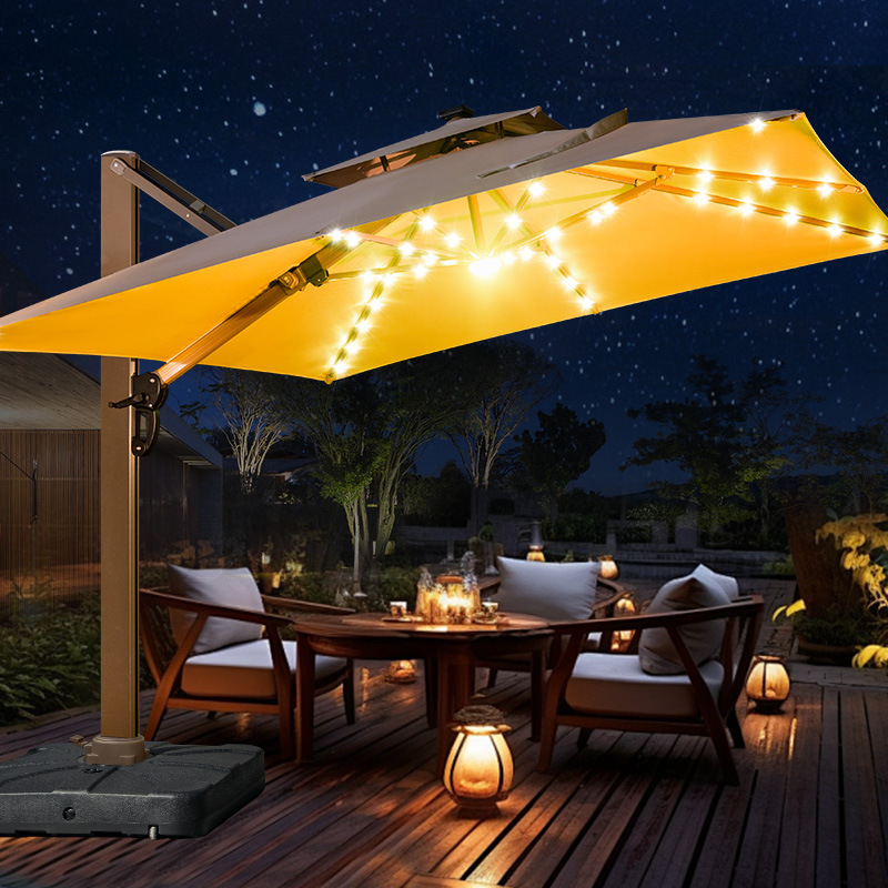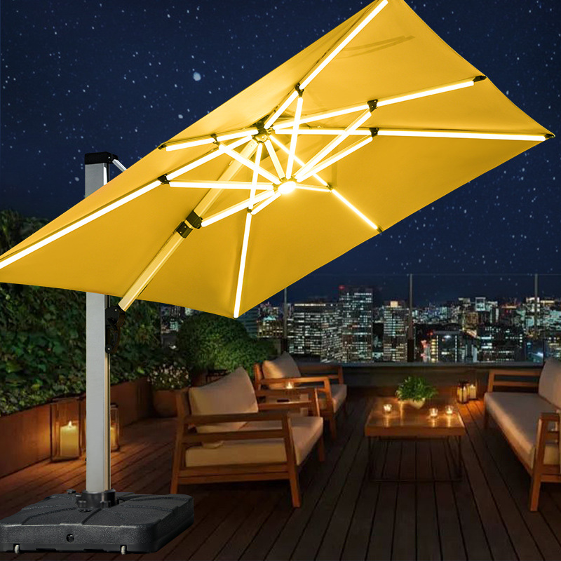 Mojia 야외 태양 차양 정원 큰 LED 빛의 날과 밤 야외 스톨 로마 우산
