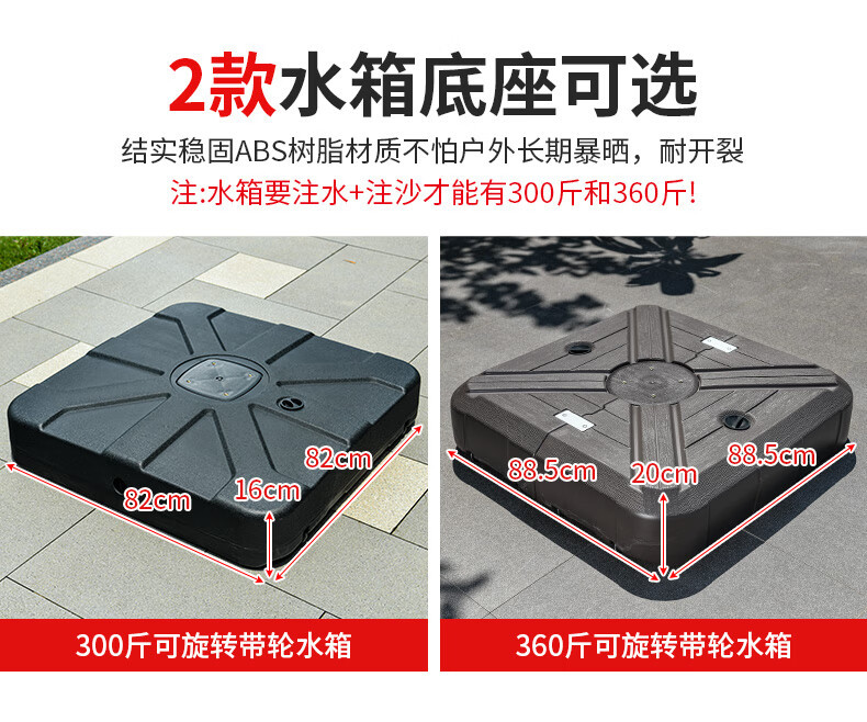 • [더블폴] 사각 2.5m 태양광우산 + 물탱크 200kg개 [더블컬러 라이트스트립]