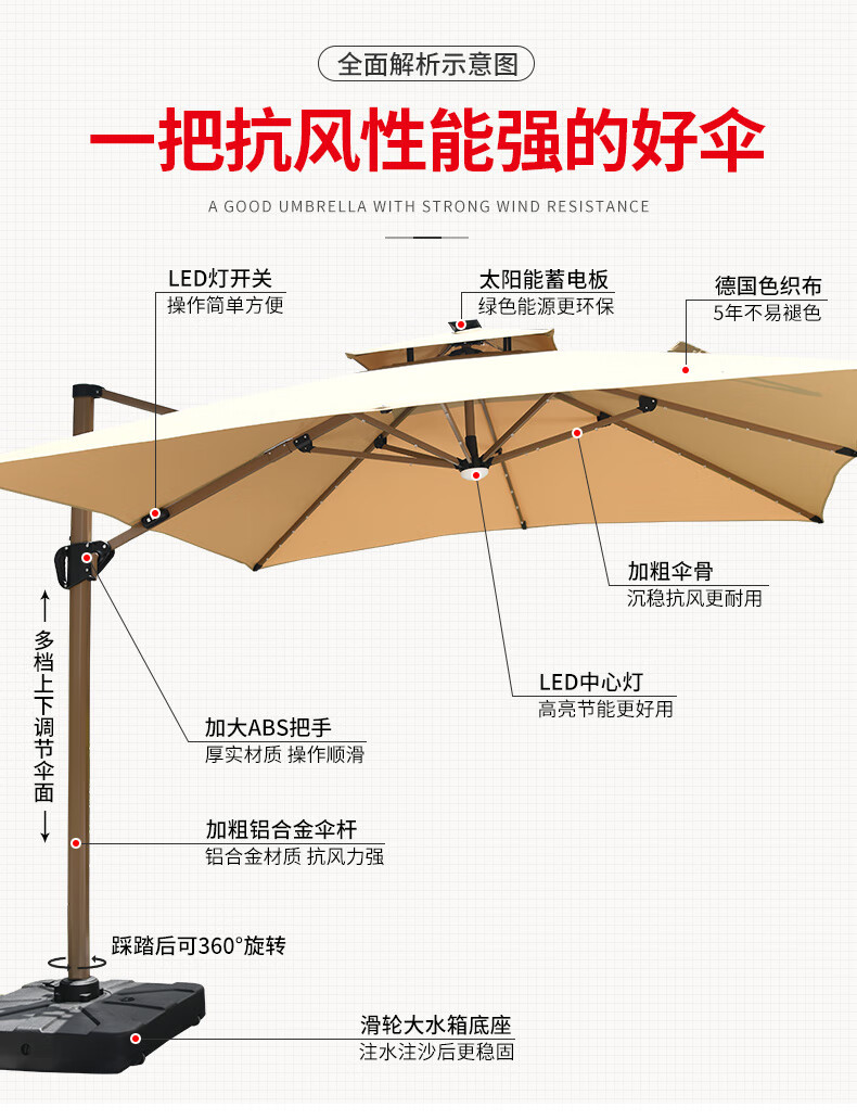 • 플래그십 모델: 3x 4m 태양광 우산 200kg 베이스