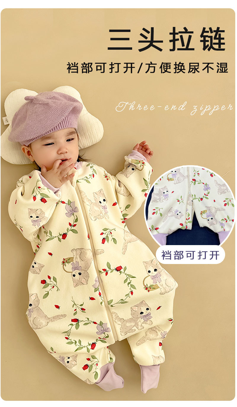 AEgtesol Baby 두꺼운 오스트리아 벨벳 뼈없는 슬리핑 백 어린이 기모 가을과 겨울 결합 된 아기 다리 킥오프 퀼트
