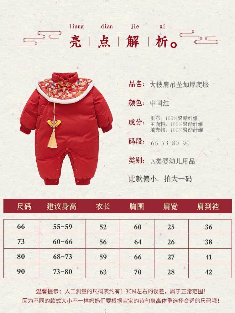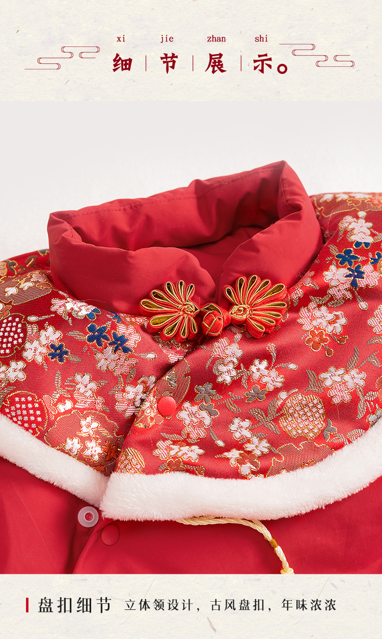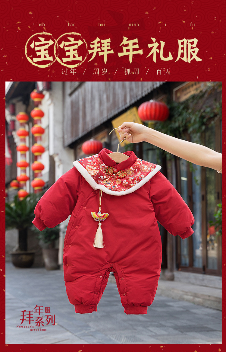 아기의 새해 옷 겨울 기모 퀼트 바디 수트 아기 소녀의 중국 스타일 레드 축제 새해 복장스토어 가기
