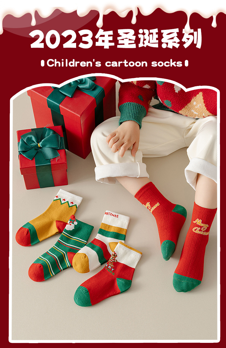어린이 양말 가을 겨울 컬러풀한 크리스마스 양말 중간 길이 면 양말 남아 여아 학생 스포츠 양말 도매스토어 가기