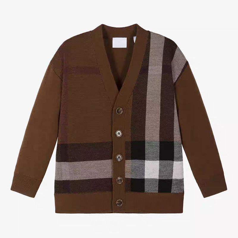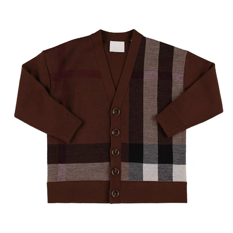 B 새로운 어린이 울 격자 무늬 가디건 다크 브라운 V-넥 긴 소매 스웨터 겨울 소년 영국 스타일 코트 탑스토어 가기