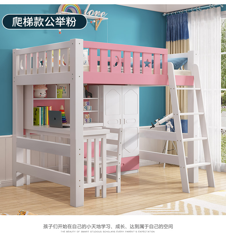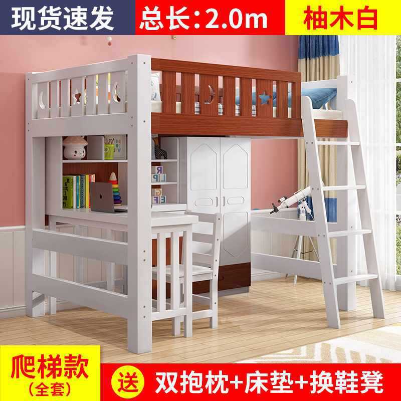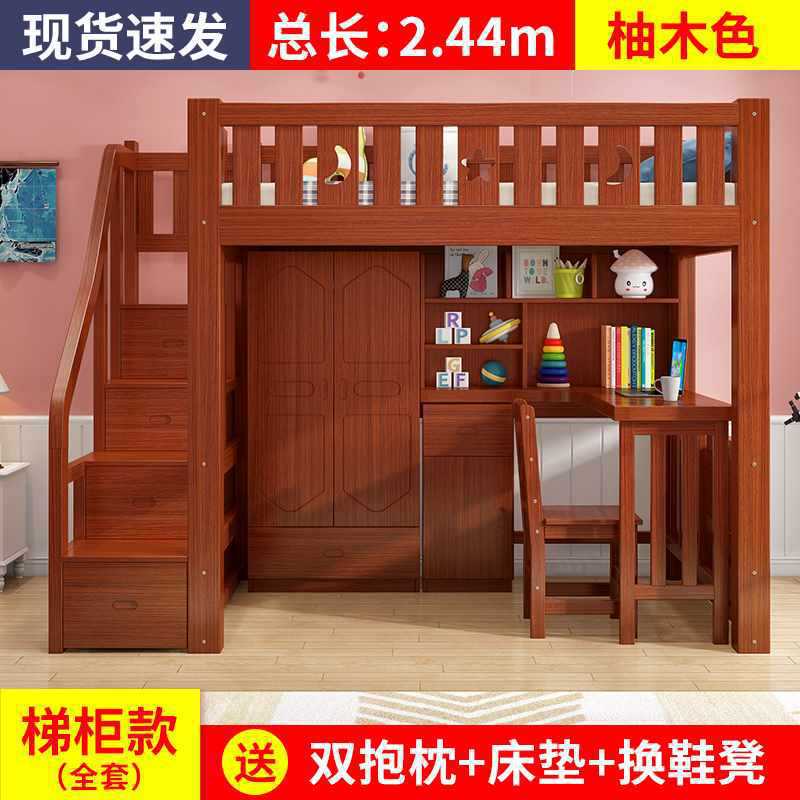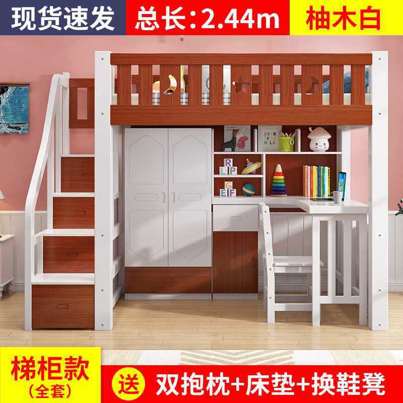 하이/로우 랙 다기능 콤비네이션 침대 2 층 어린이 책상 침대 침대 침대 및 침대 테이블 통합 학습 옷장 침대