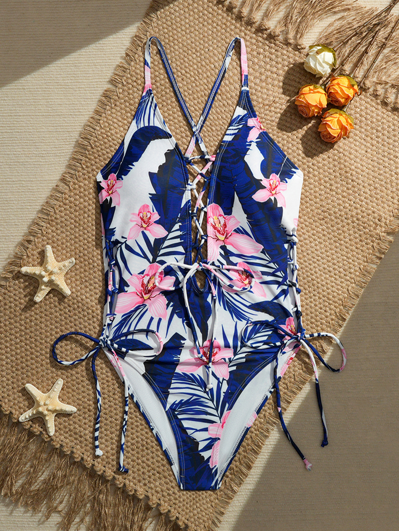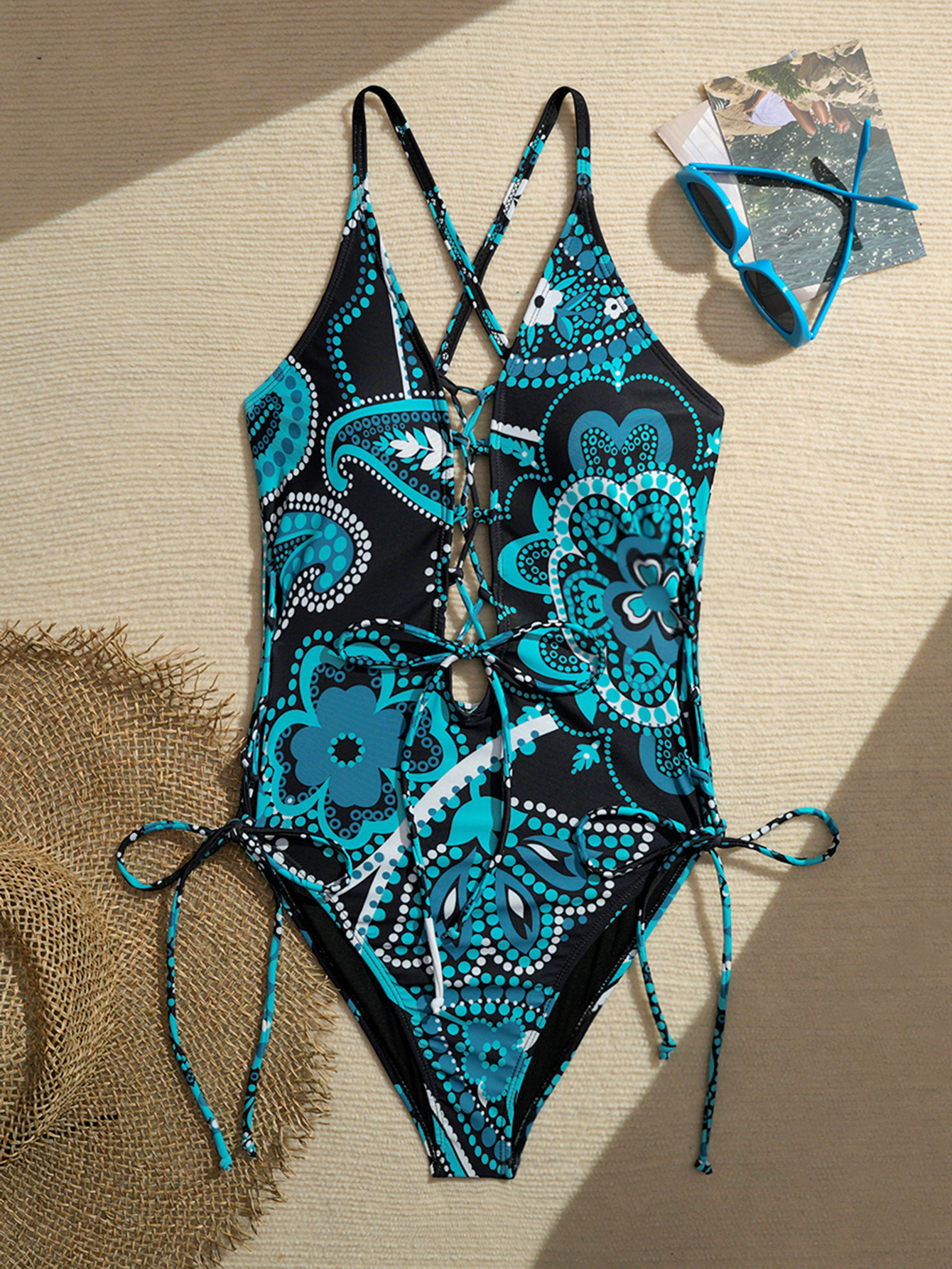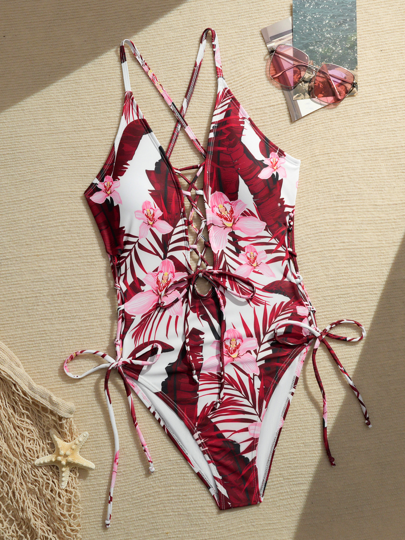 2025 유럽과 미국의 수영복 섹시한 백리스 원피스 수영복 멀티 컬러 크로스 보더 아마존 크로스 스트랩 수영복 비키니