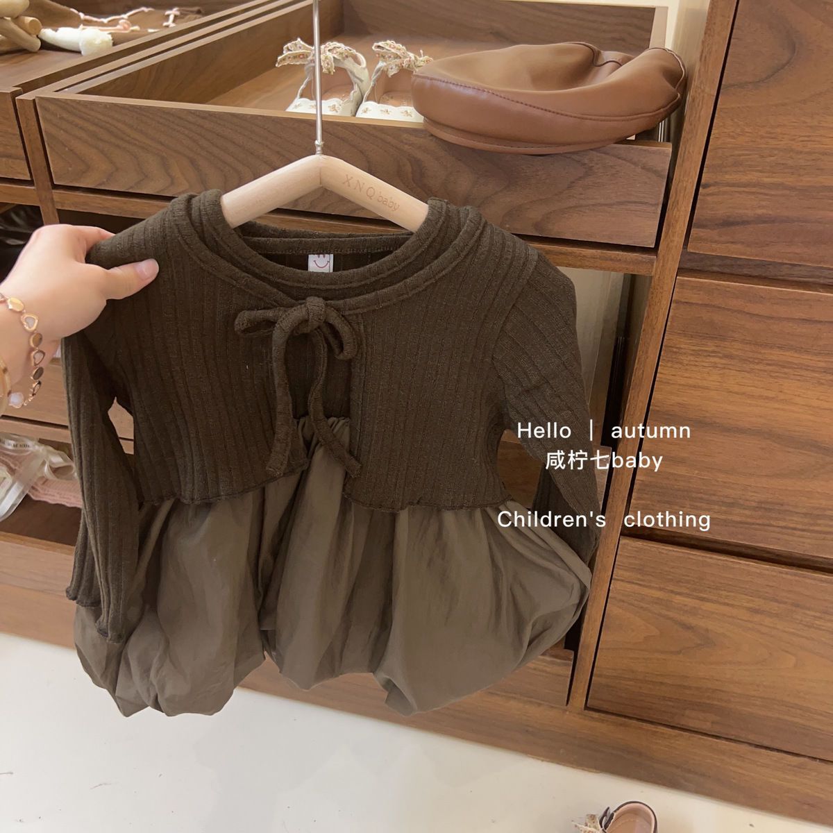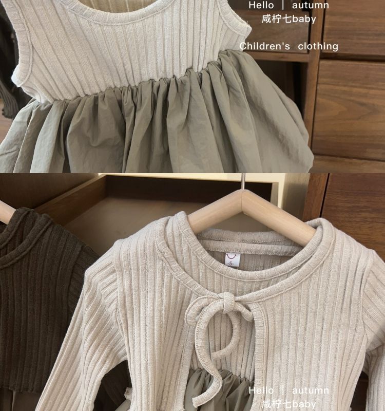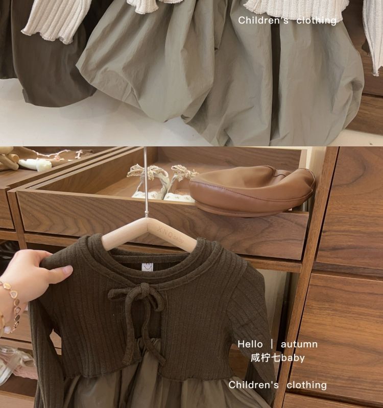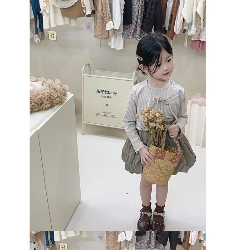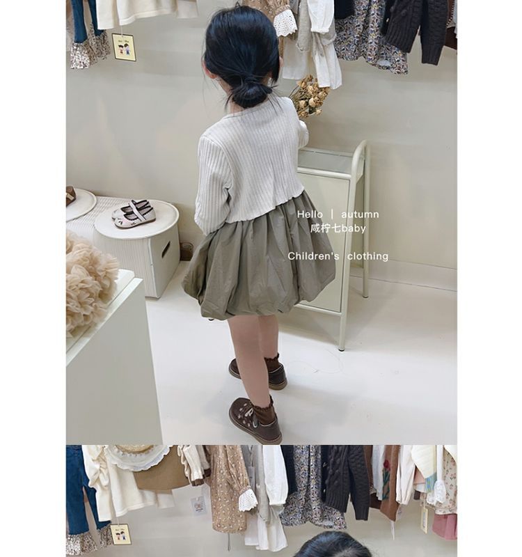 여아 가을 2023 스커트 봄과 가을 여아 원피스 세트 여아 아기 소녀 긴 소매 니트 카디건 꽃 버블 스커트스토어 가기