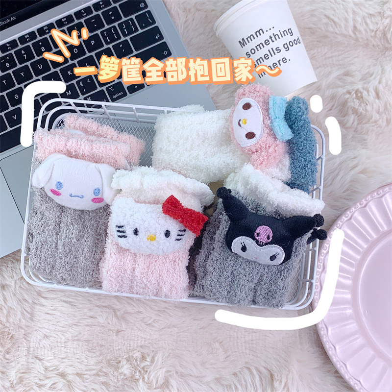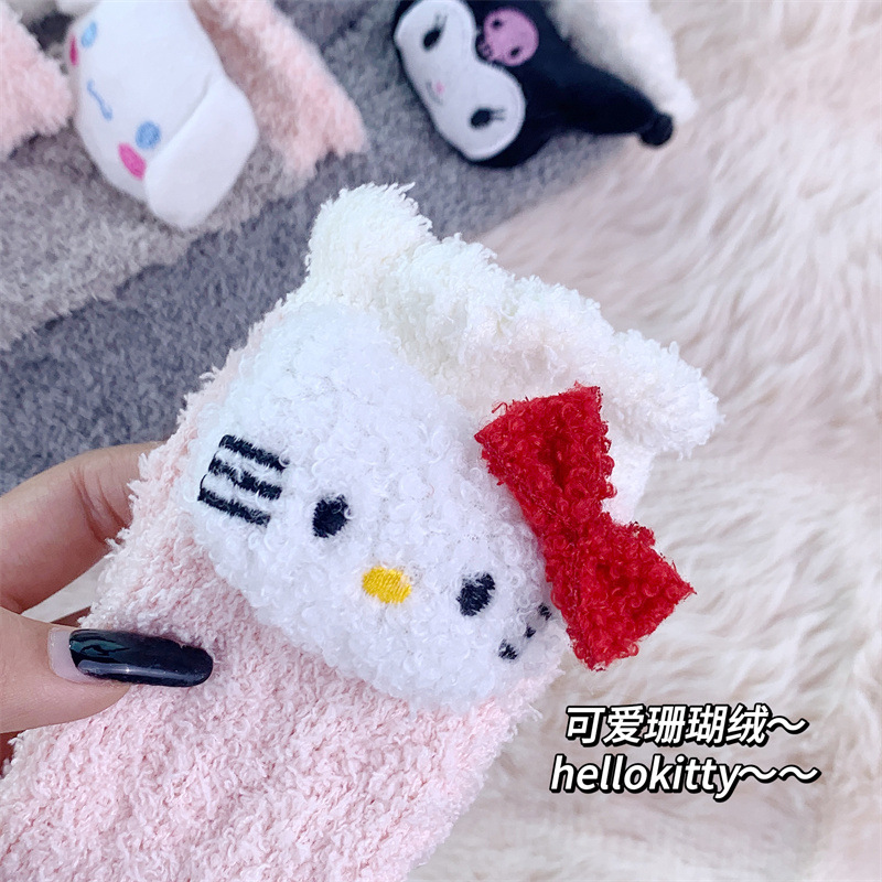 산리오 새로운 산호 양털 양말 통기성 두꺼운 따뜻한 흰색 로리타 귀여운 만화 잠자는 바닥 양말스토어 가기