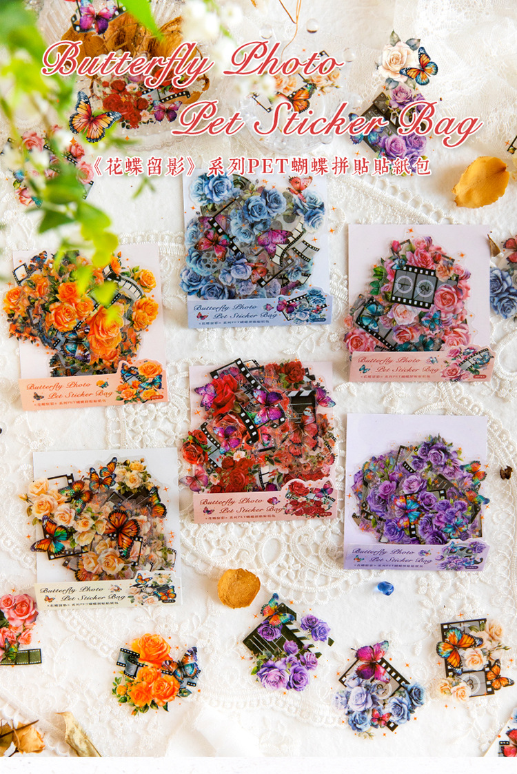 연 지 PET 스티커 가방 꽃 나비 사진 시리즈 나비 콜라주 손 계정 DIY 장식 재료 스티커 6스토어 가기