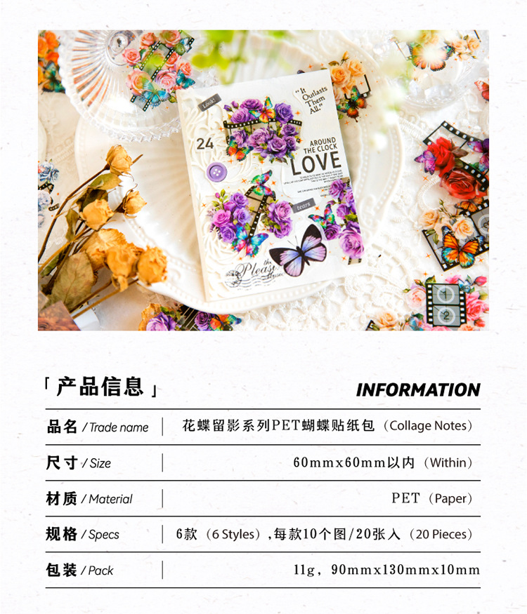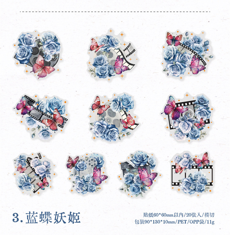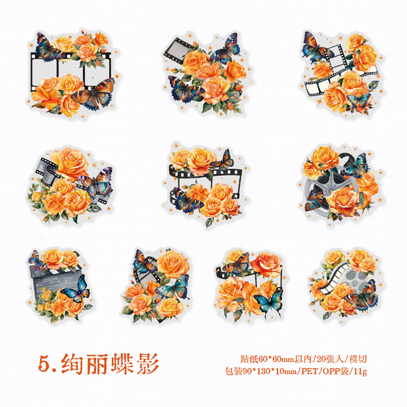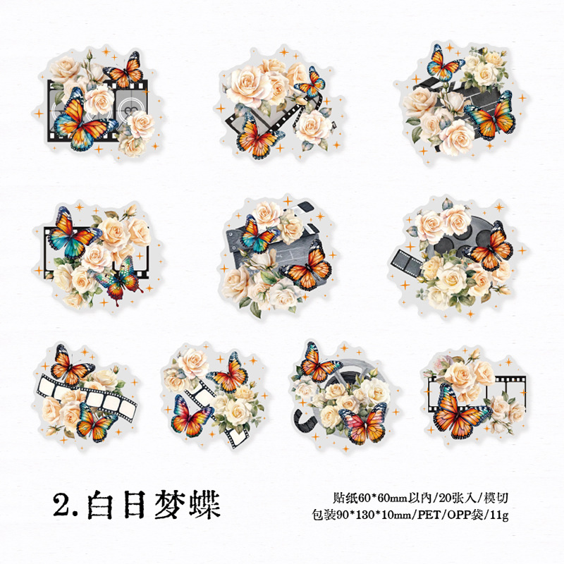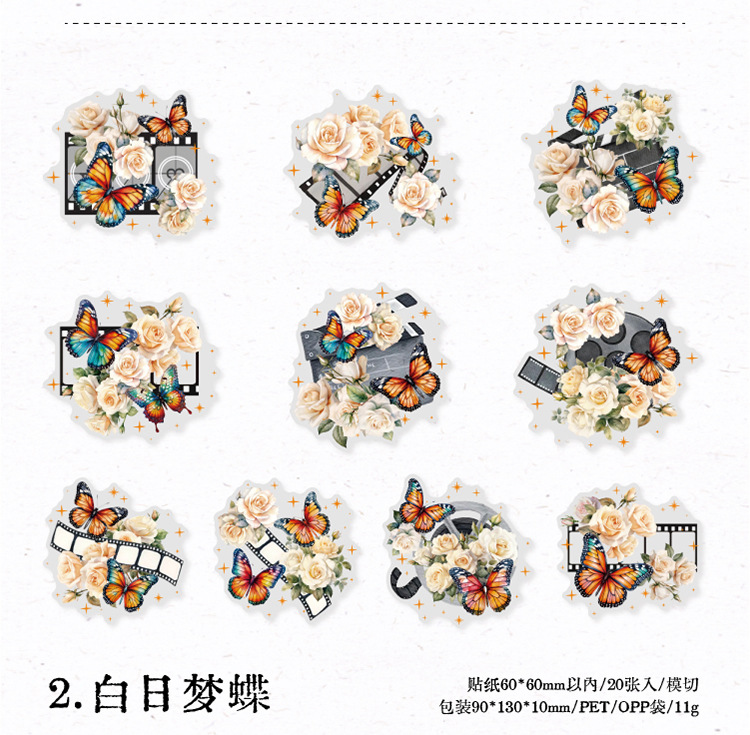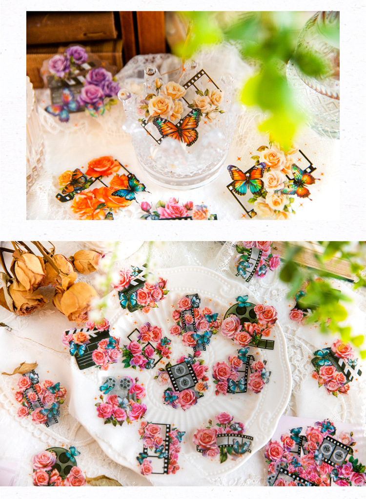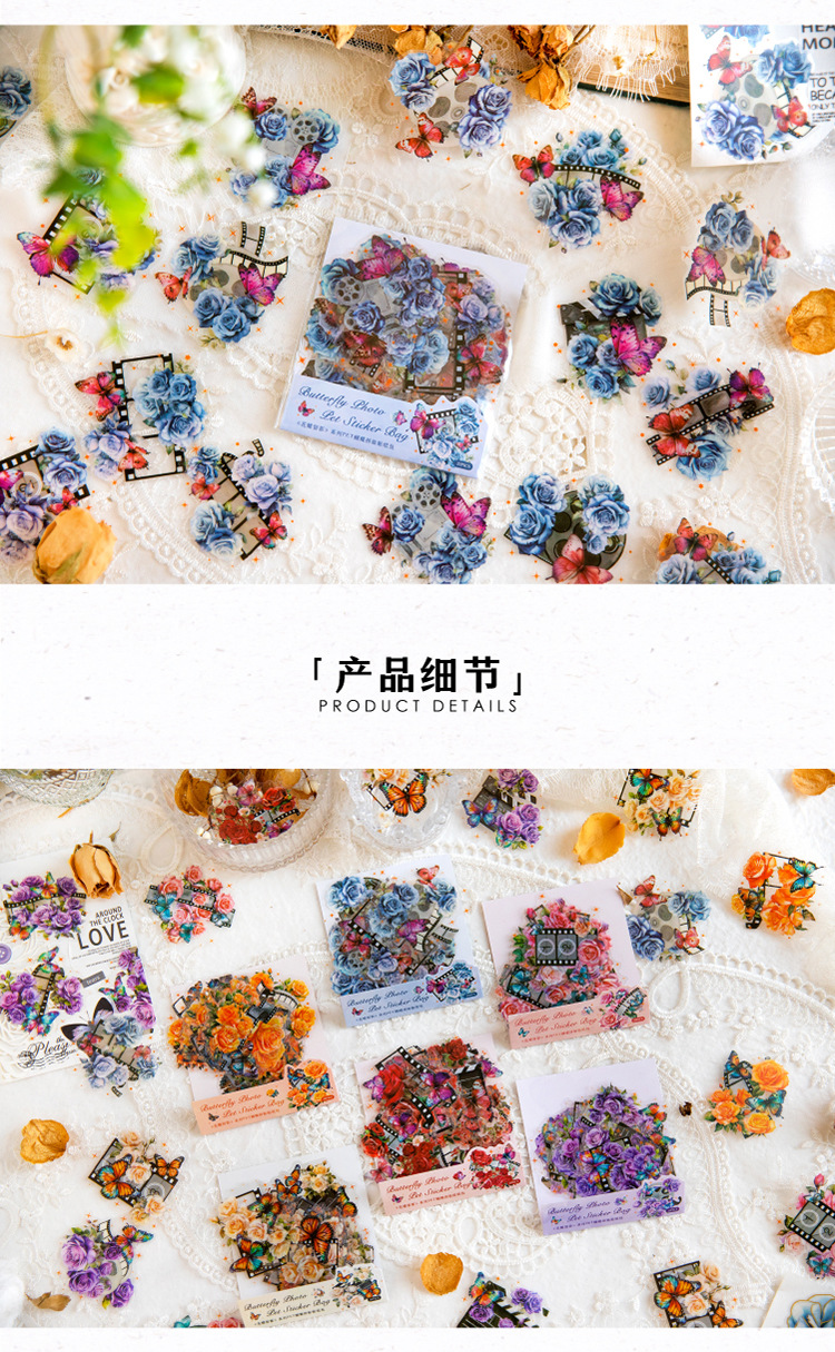 연 지 PET 스티커 가방 꽃 나비 사진 시리즈 나비 콜라주 손 계정 DIY 장식 재료 스티커 6