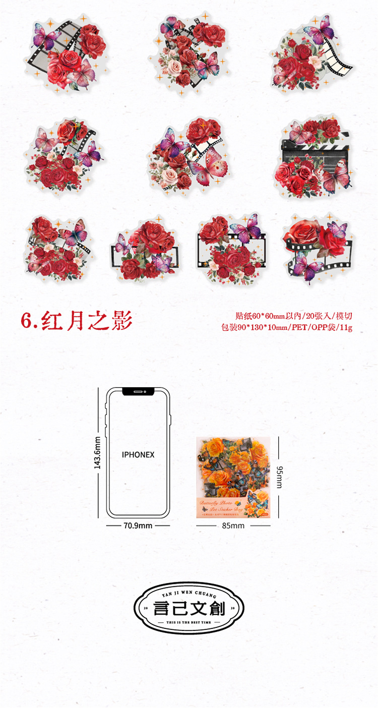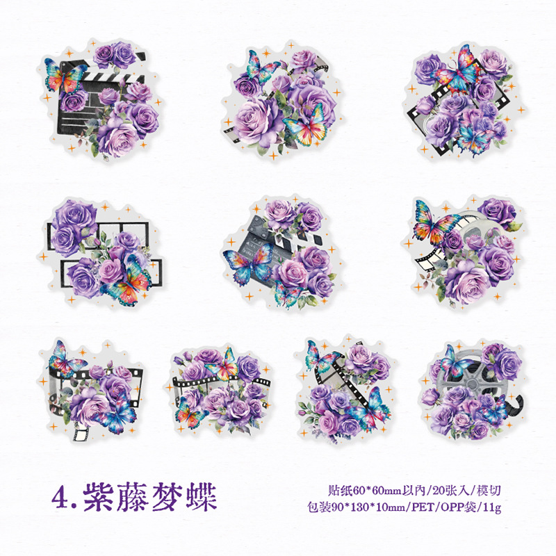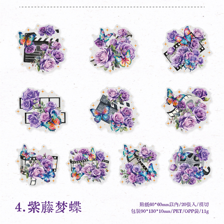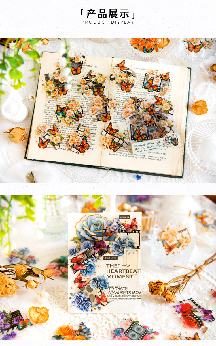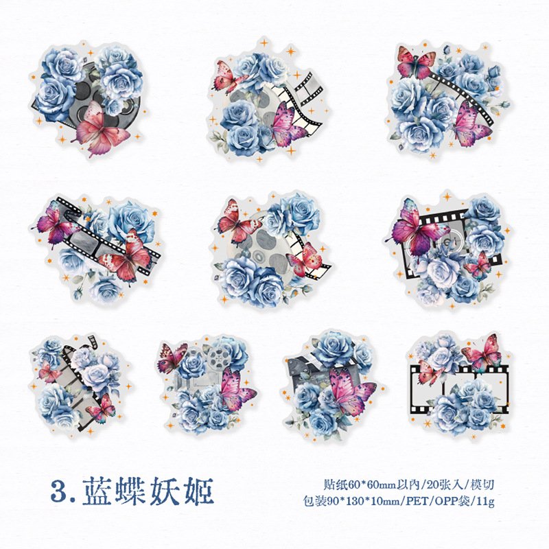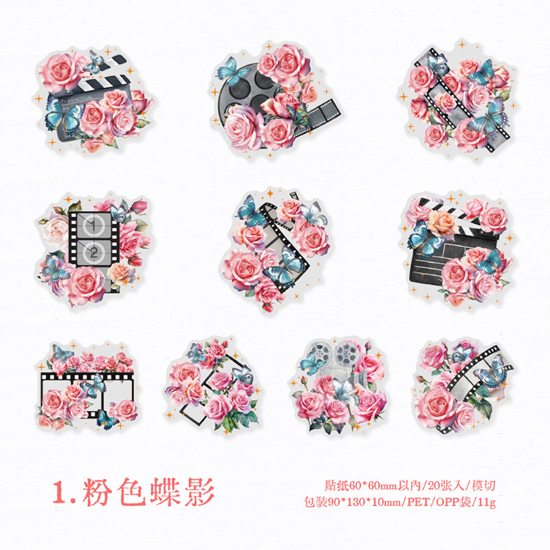 연 지 PET 스티커 가방 꽃 나비 사진 시리즈 나비 콜라주 손 계정 DIY 장식 재료 스티커 6