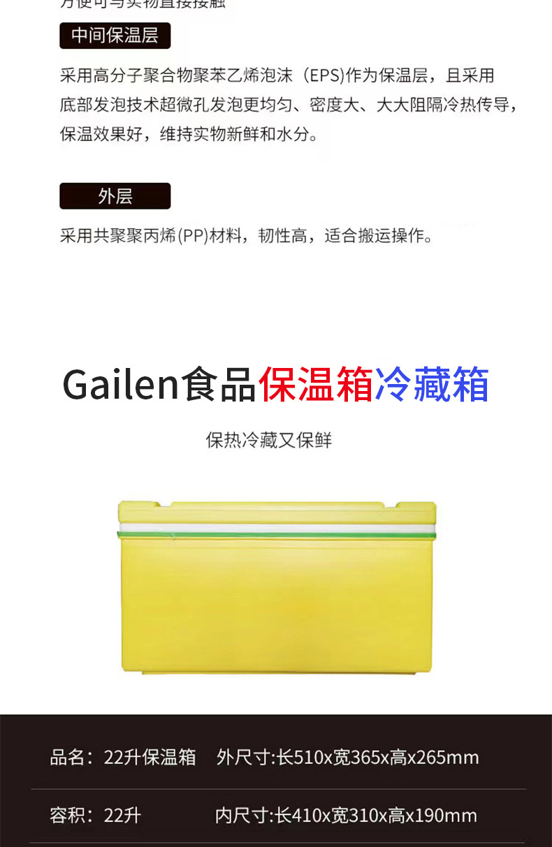 22L 식품 등급 폼 박스 테이크아웃 배달 음식 스시 상업용 야외 냉장 보온 박스 휴대용 급속 냉각