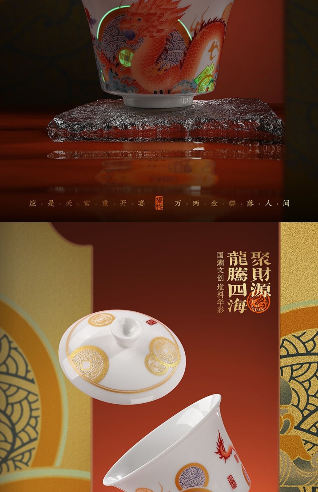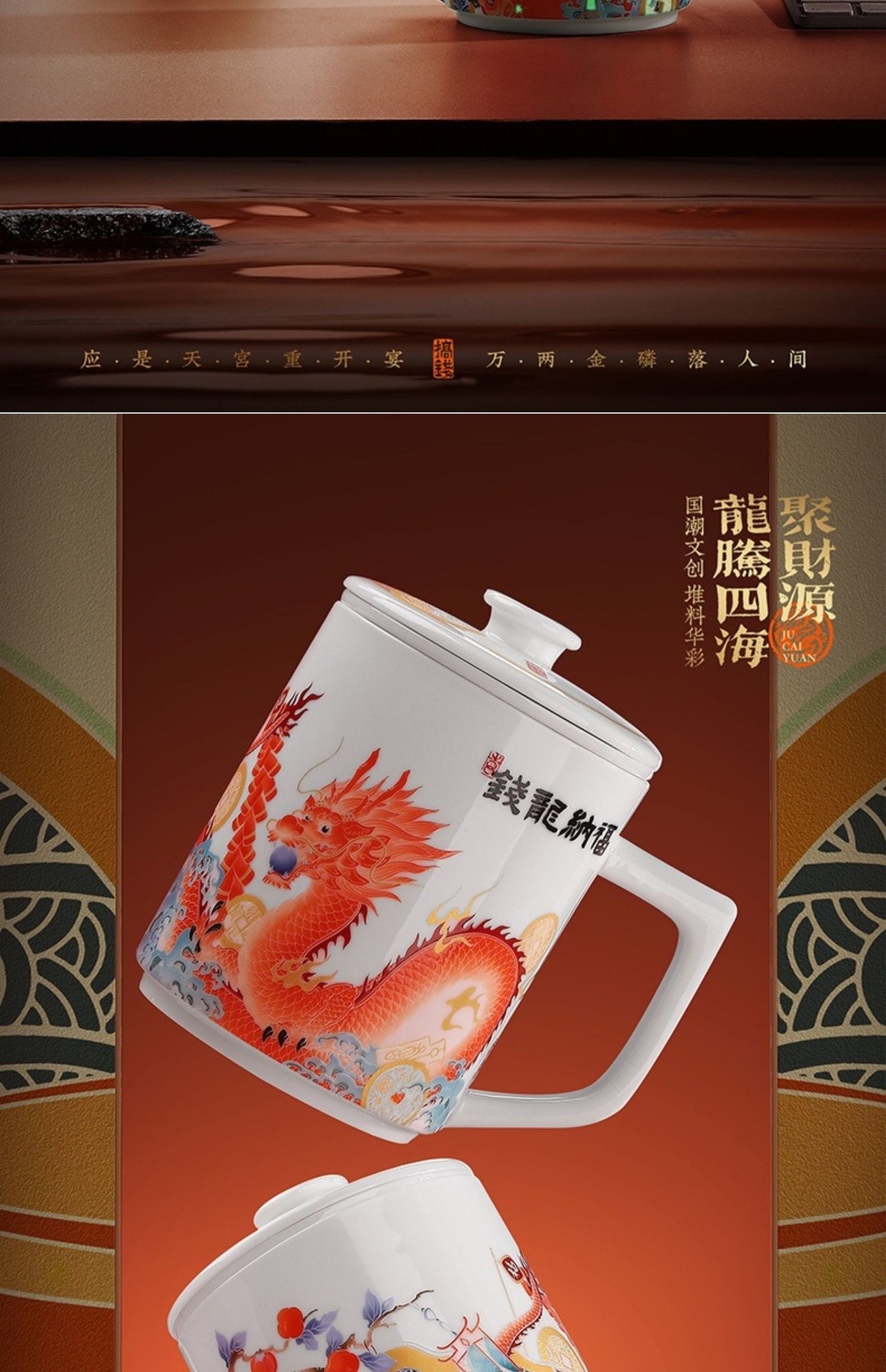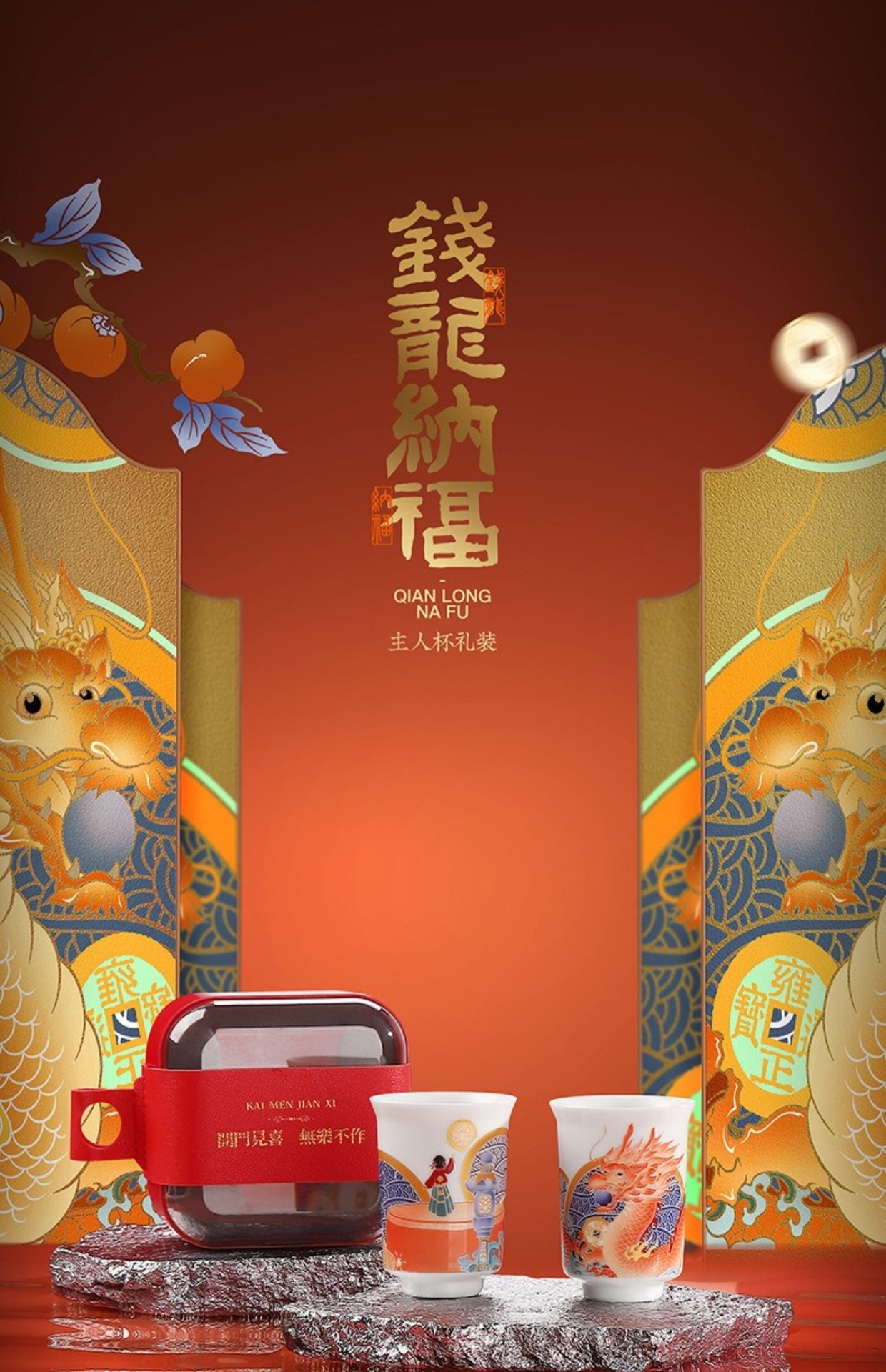 용의 해 2024 찻잔 세라믹 쿵푸 차 컵 마스터 컵 기업 동반 선물 새해 선물 세트 로고스토어 가기