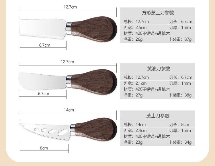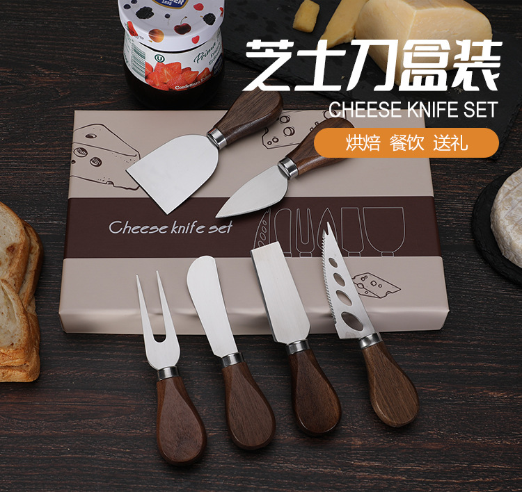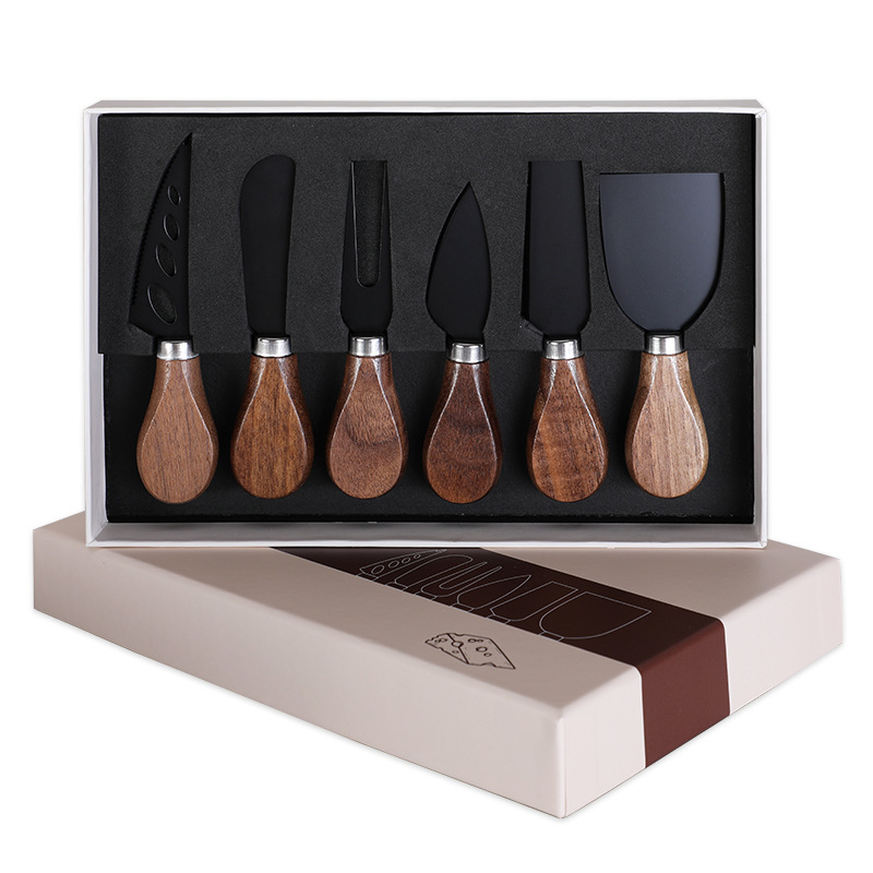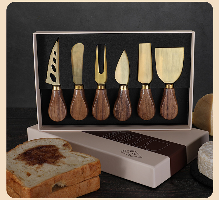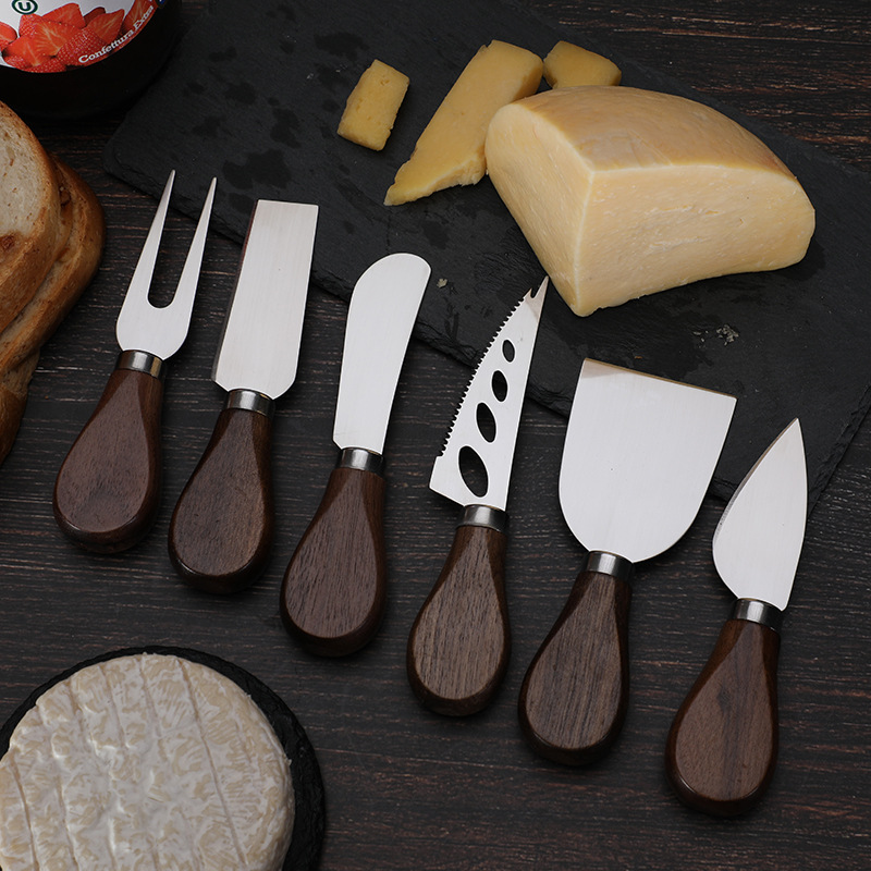 호두나무 손잡이 치즈 도구 세트 칼과 포크 버터 스프레더 스테인리스 치즈 나이프 6종 세트 토스트 빵스토어 가기