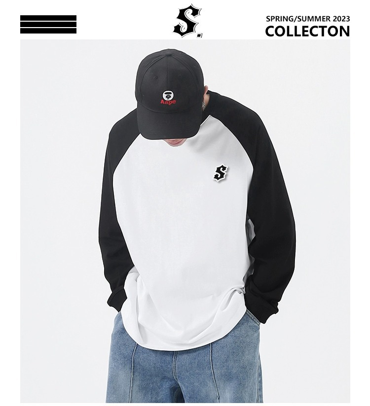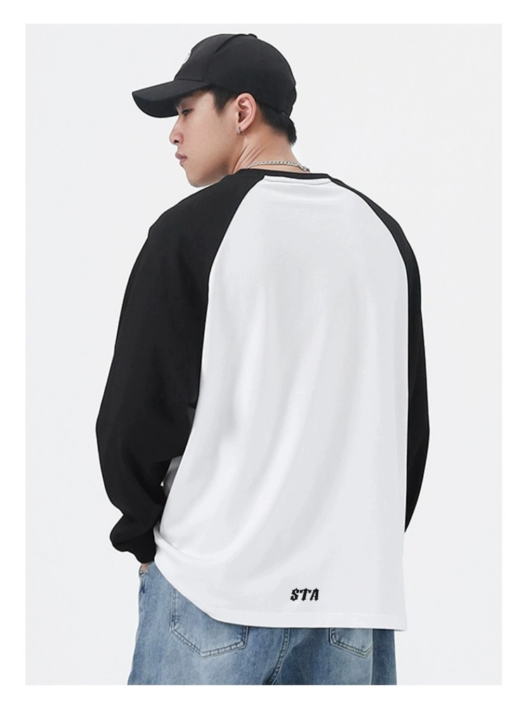 STA 아메리칸 스타일 헤비 벨크로 자수 긴팔 티셔츠 남아 봄 가을 패션 브랜드 순면 루즈한 만능 커플 의류스토어 가기