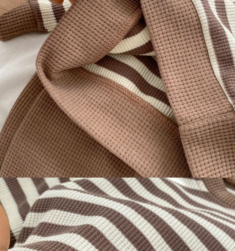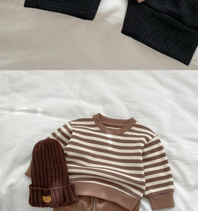 베이비 스플릿 슈트 봄, 가을 한국 스타일 컬러 블록 스트라이프 긴팔 탑과 바지 소년과 소녀를위한 투피스 트렌디 세트