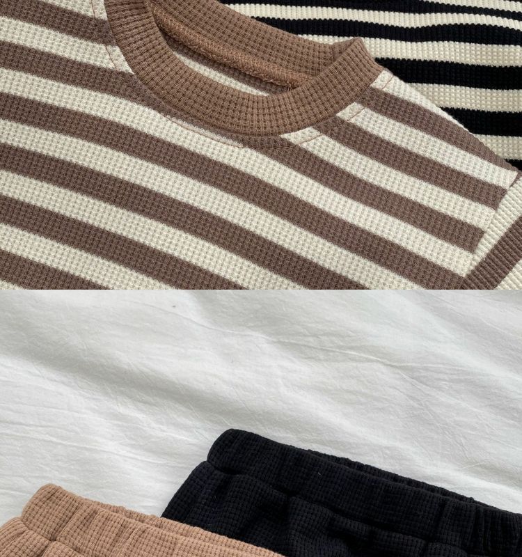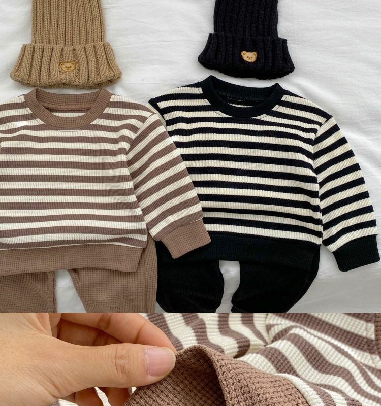 베이비 스플릿 슈트 봄, 가을 한국 스타일 컬러 블록 스트라이프 긴팔 탑과 바지 소년과 소녀를위한 투피스 트렌디 세트스토어 가기