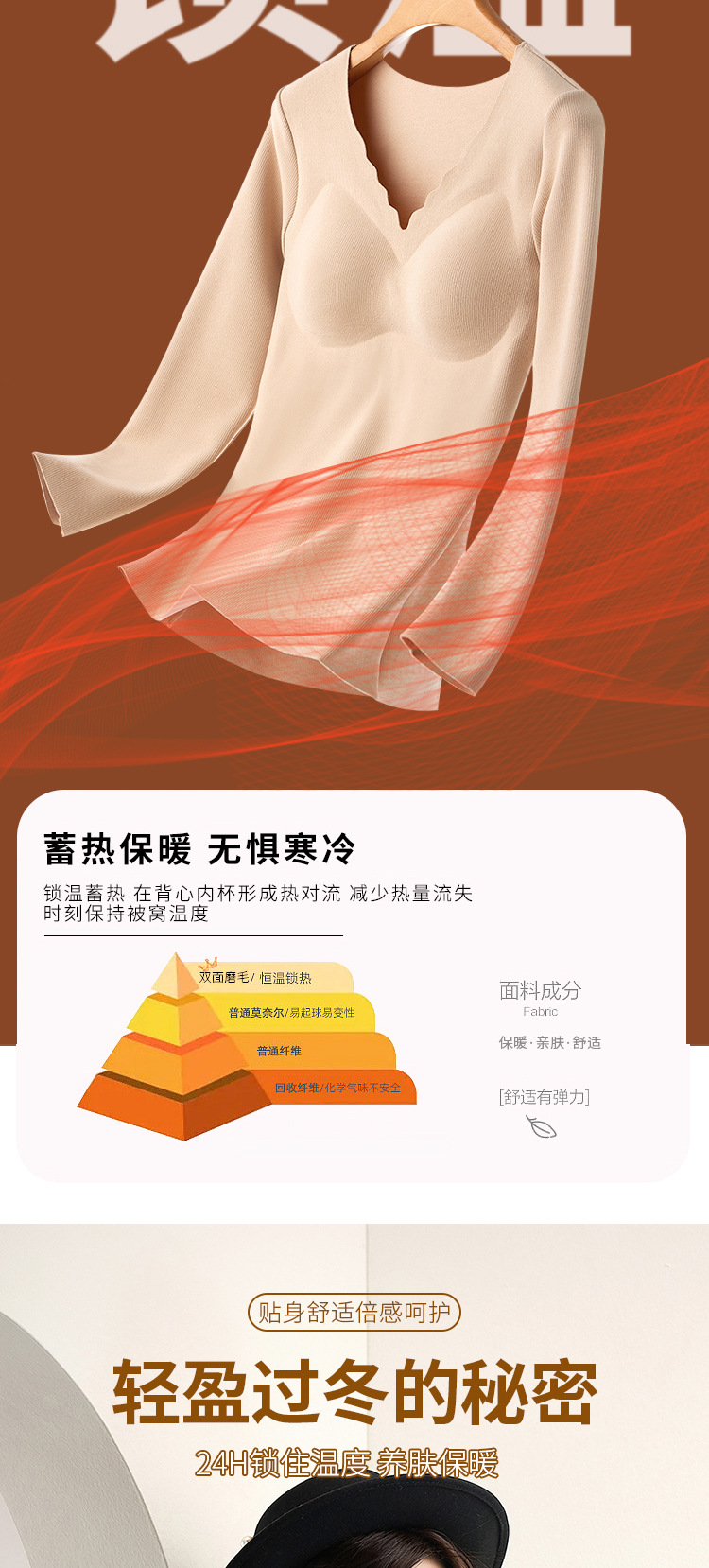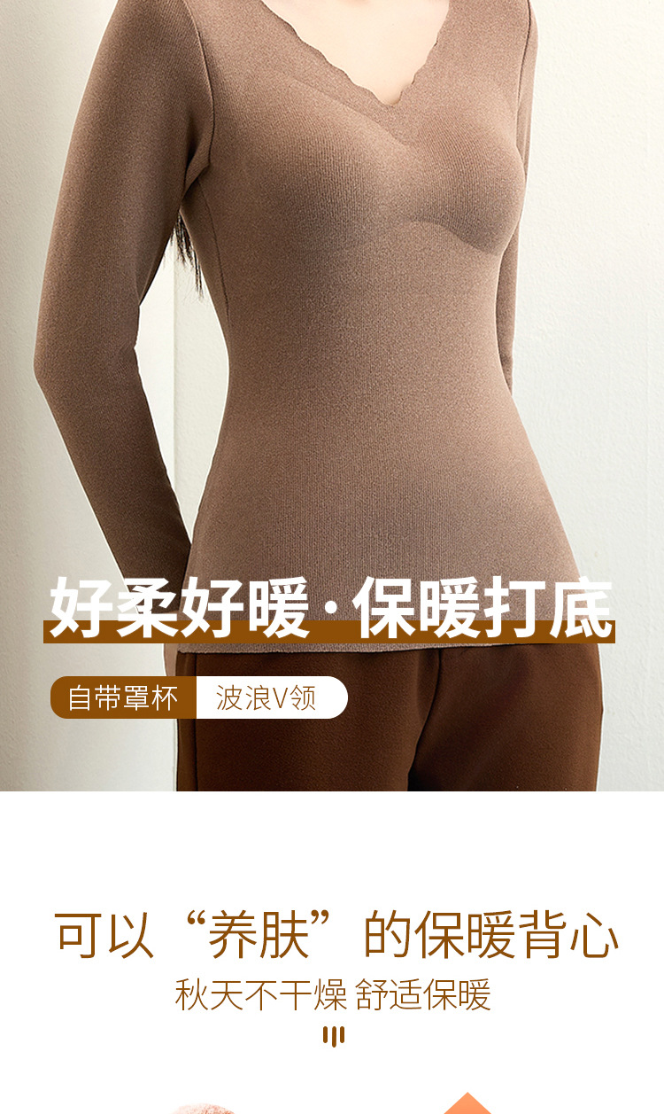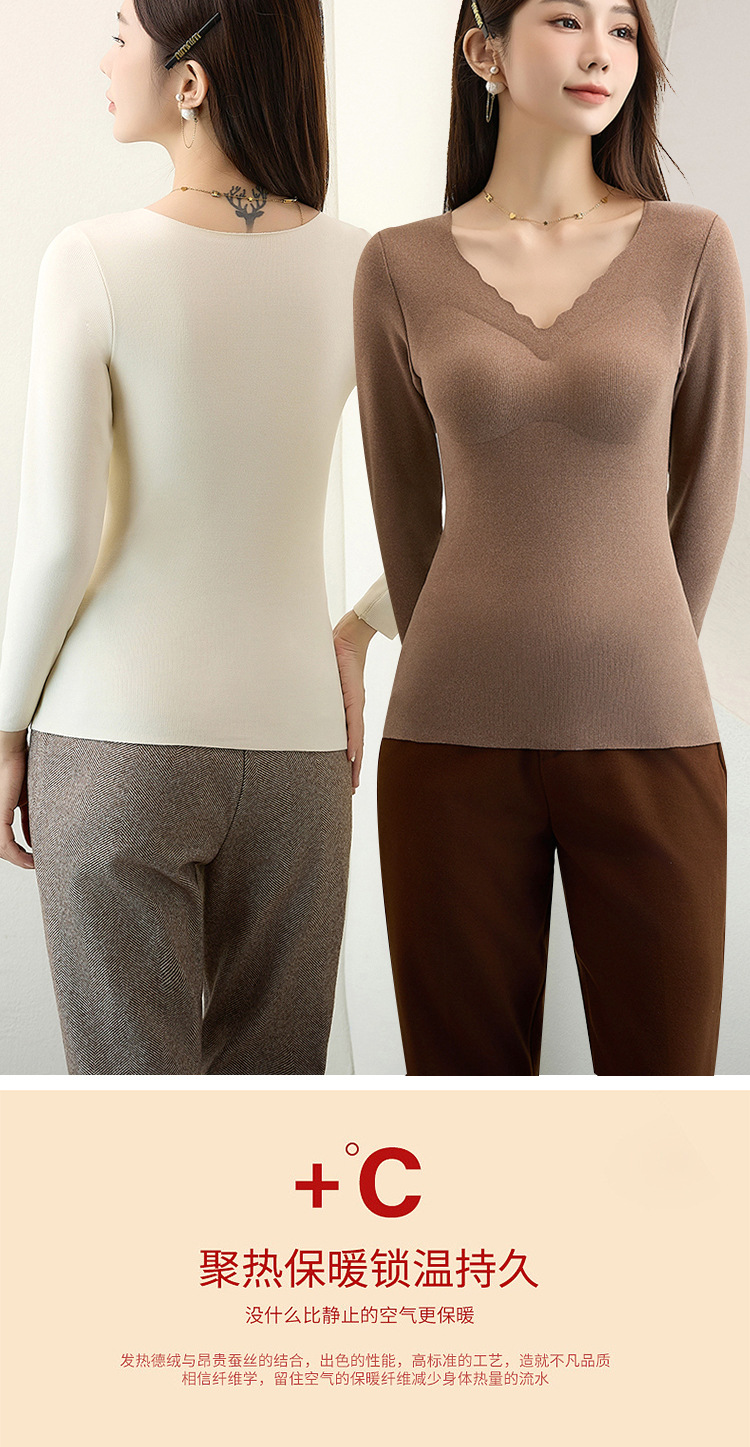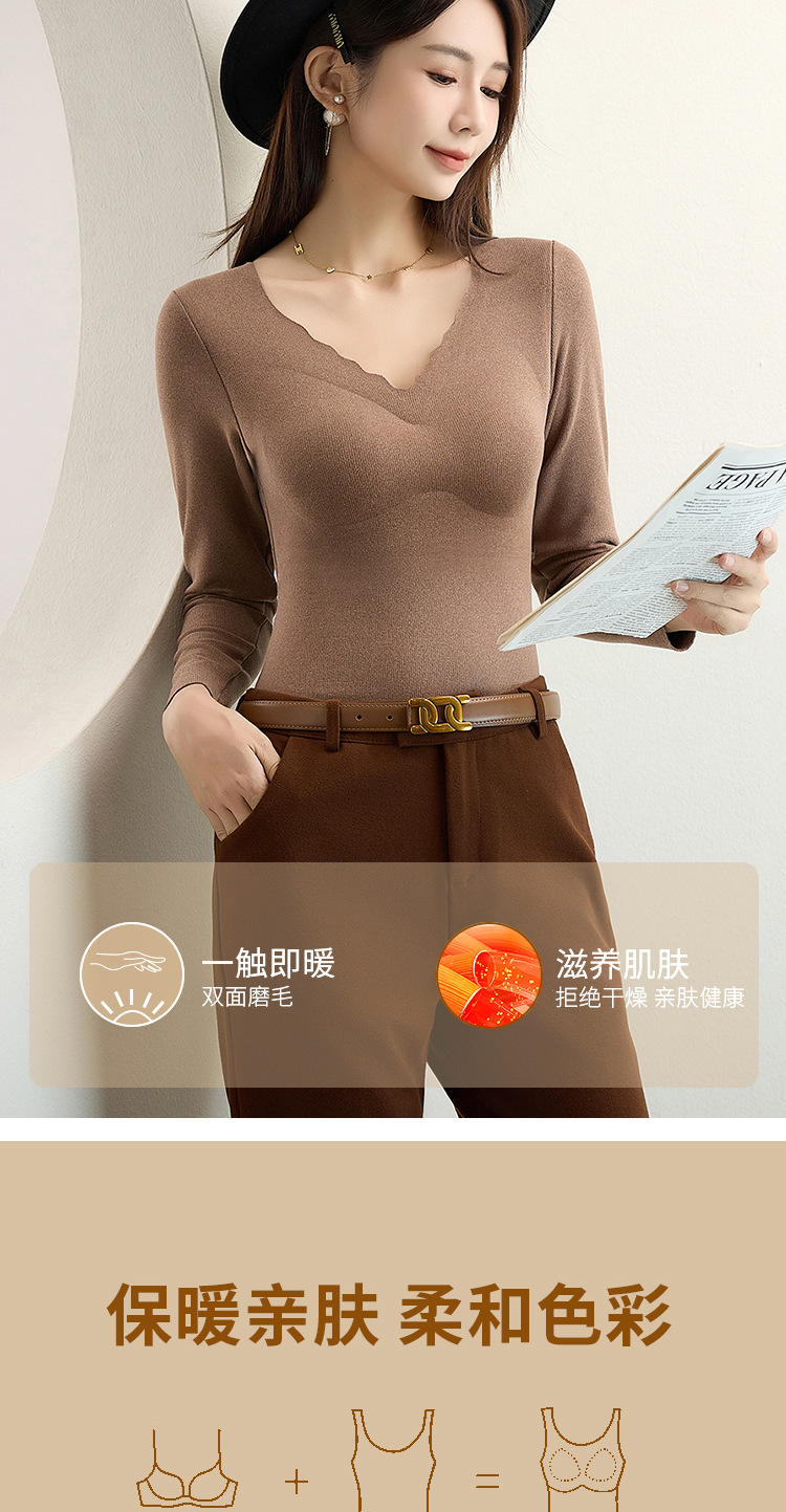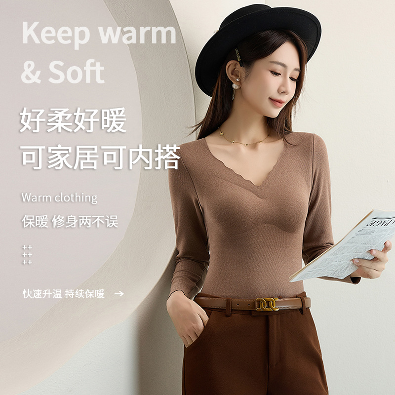 노마크 하이엔드 가을 겨울 보온 속옷 여성용 V넥 두꺼운 베이스 슬림핏 솔리드 컬러 탑 타이트 마모 프리 브라스토어 가기