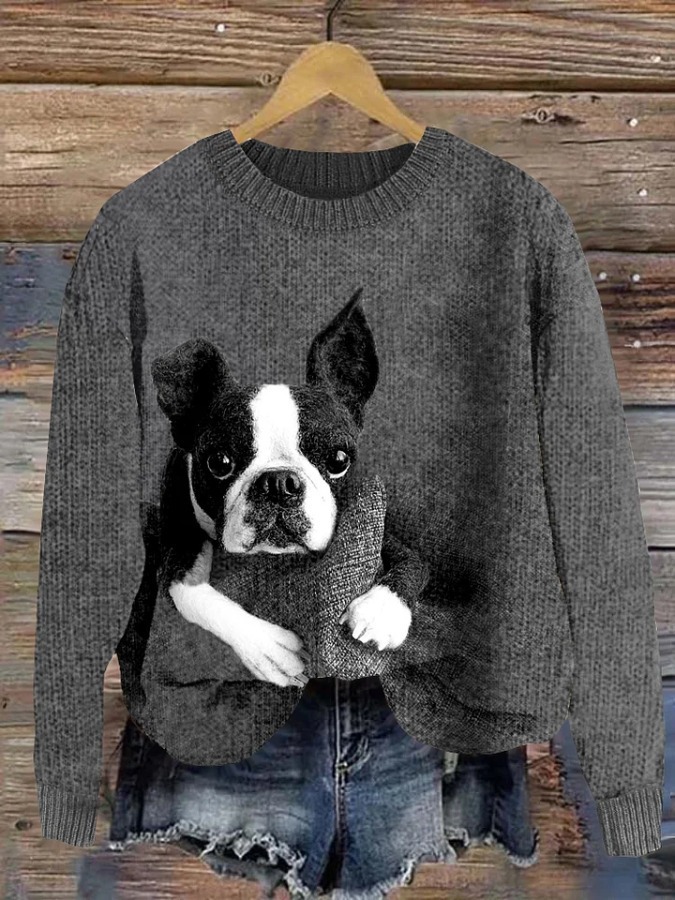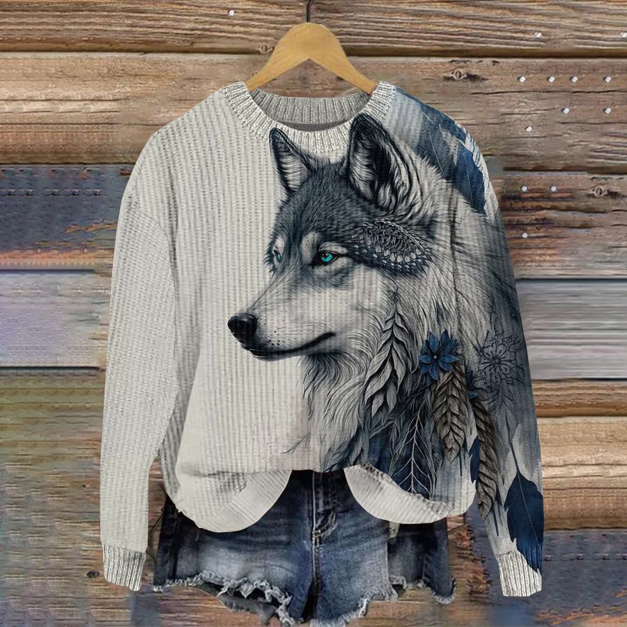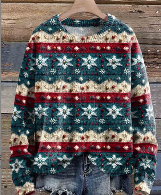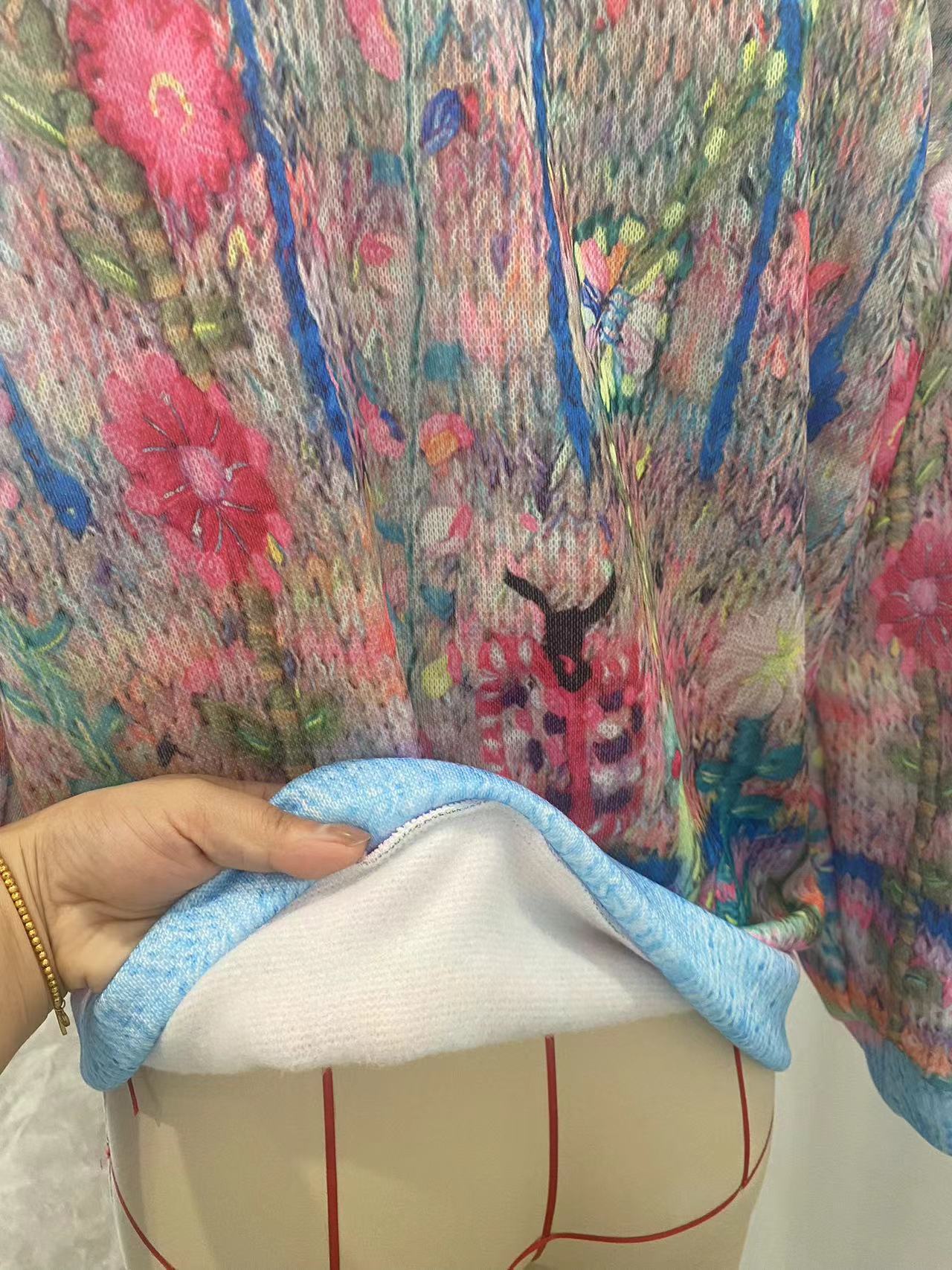 2023 가을과 겨울 새로운 유럽과 미국의 국경 추상 바람 인쇄 드롭 어깨 긴 소매 여성의 캐주얼 북극 벨벳 탑스토어 가기