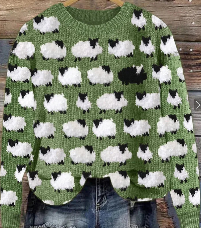 2023 가을과 겨울 새로운 유럽과 미국의 국경 추상 바람 인쇄 드롭 어깨 긴 소매 여성의 캐주얼 북극 벨벳 탑