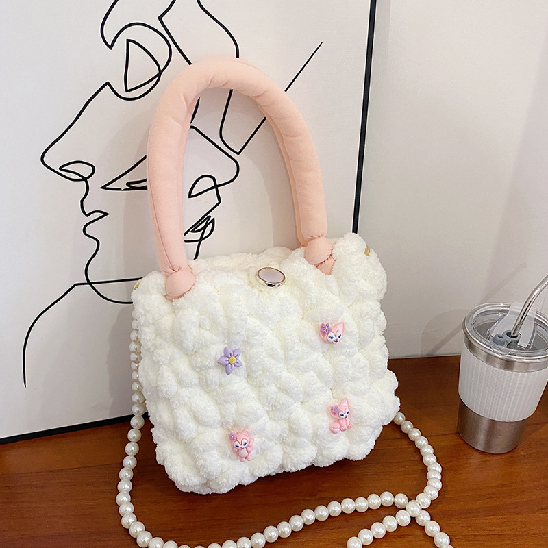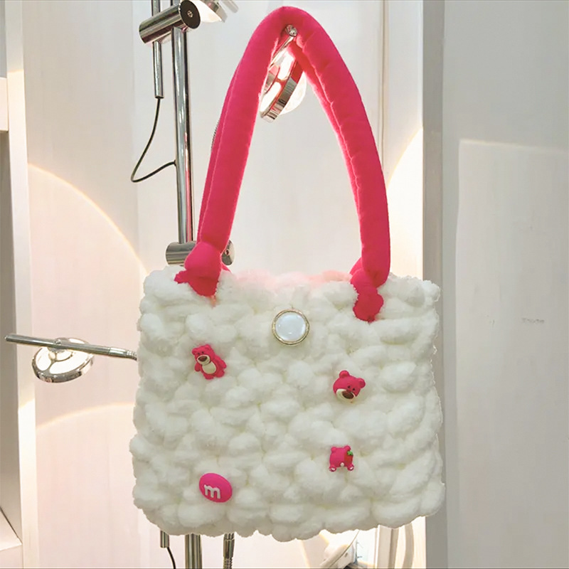 리틀 비버 수제 짠 가방 diy 소재 가방 루피 코튼 캔디 구름 가방 자체 제작 완성 된 크로스 바디 백스토어 가기