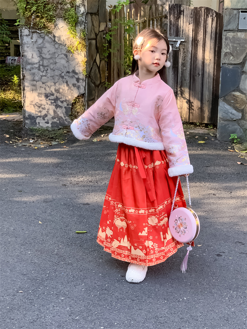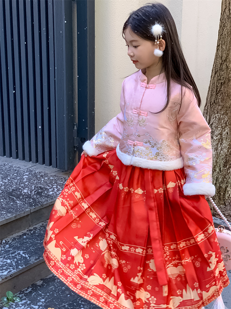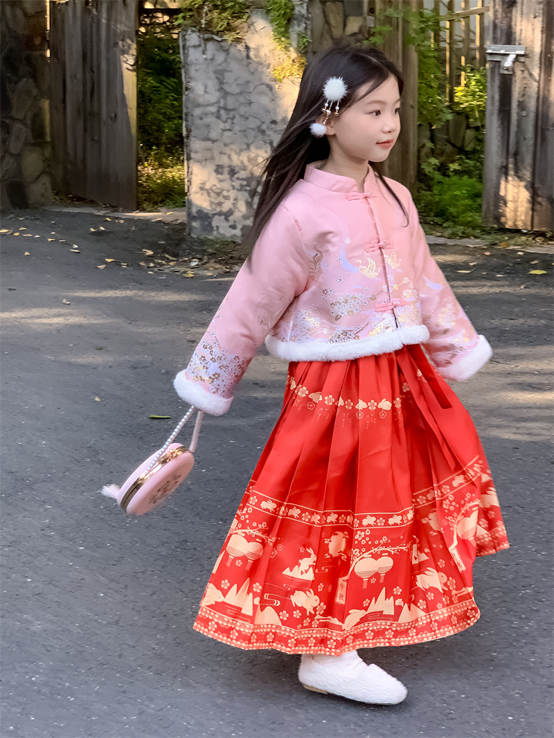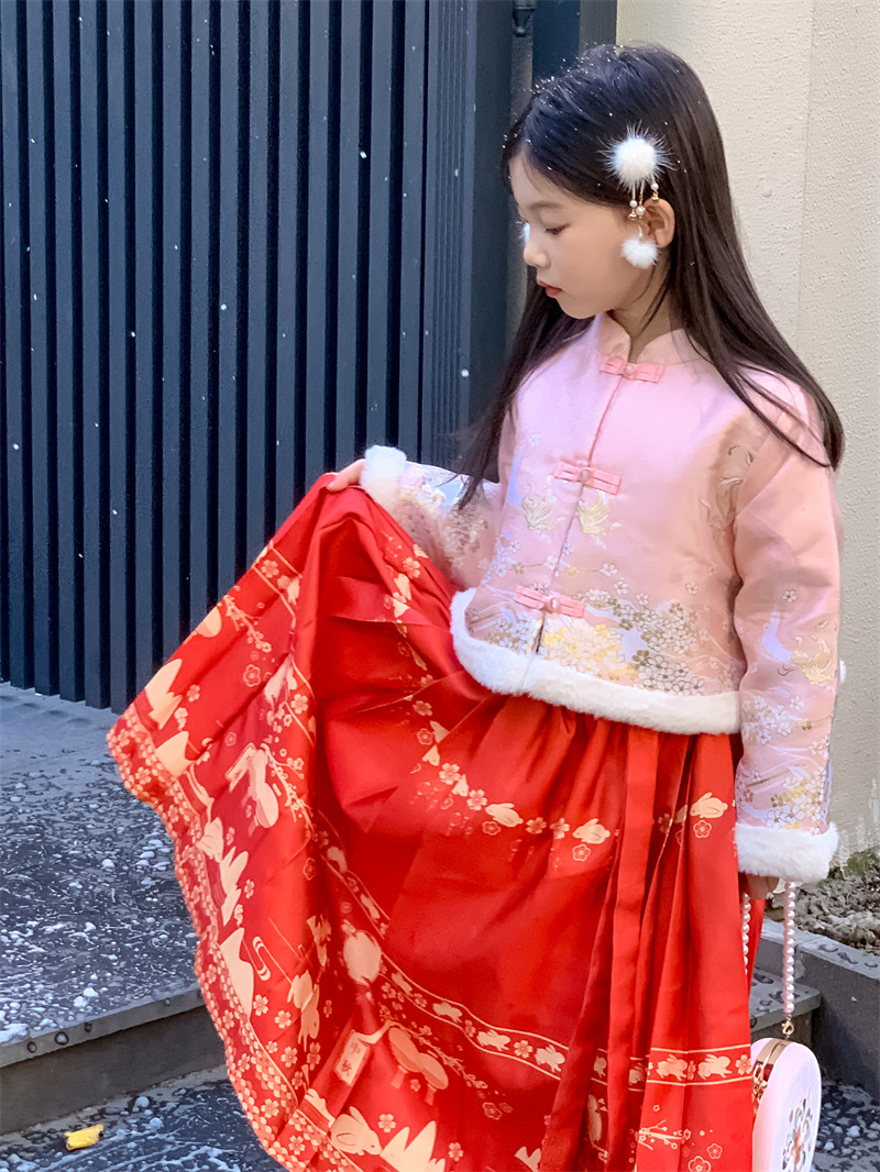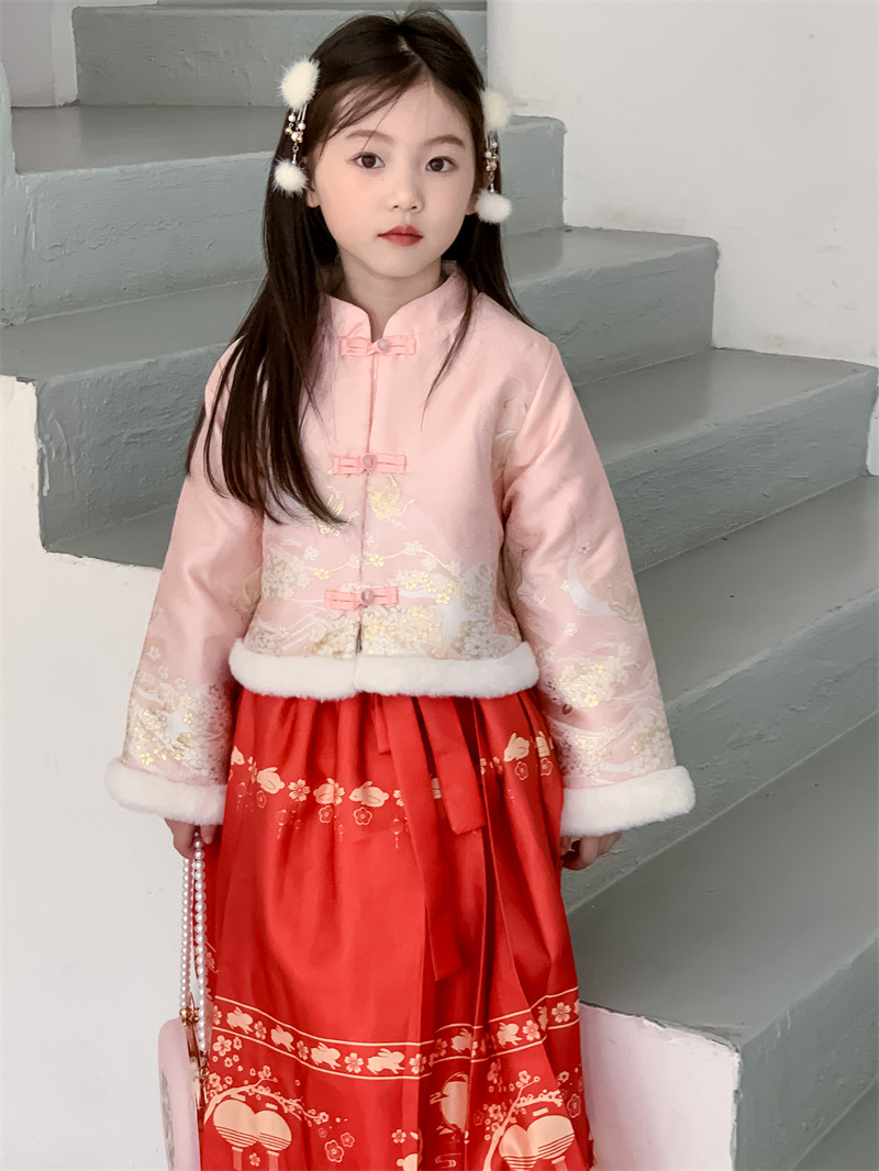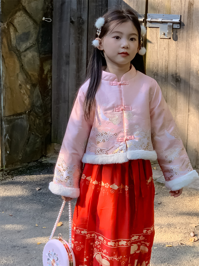 꽃과 여자를 찾고 한푸 새해 의류 겨울 기모 중국 스타일 어린이 고대 탕 세트 투피스 말 국수 스커트