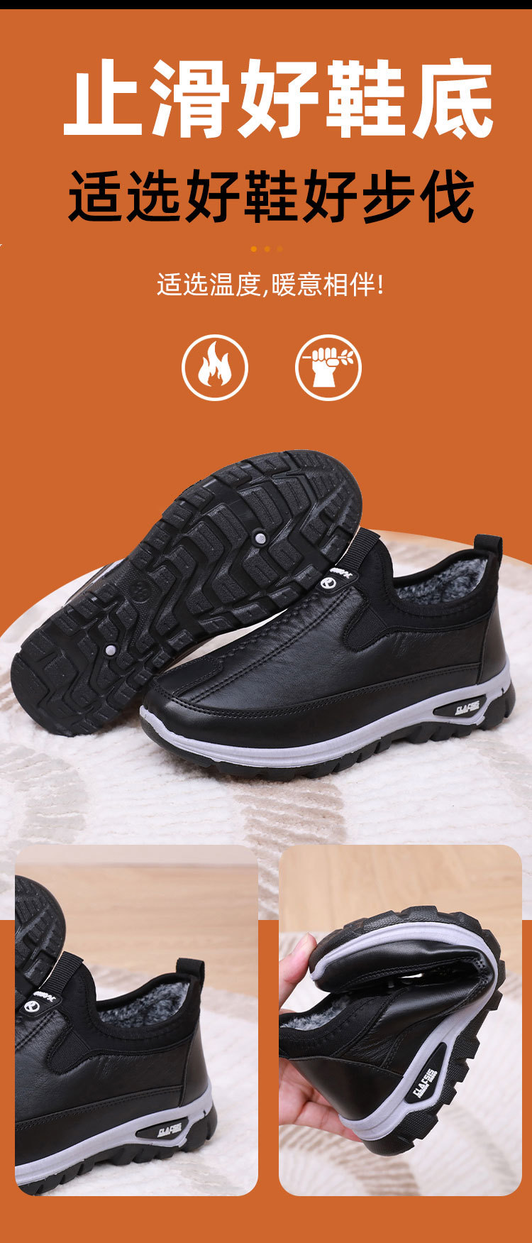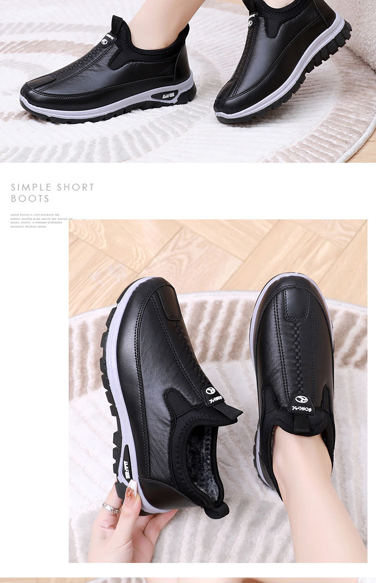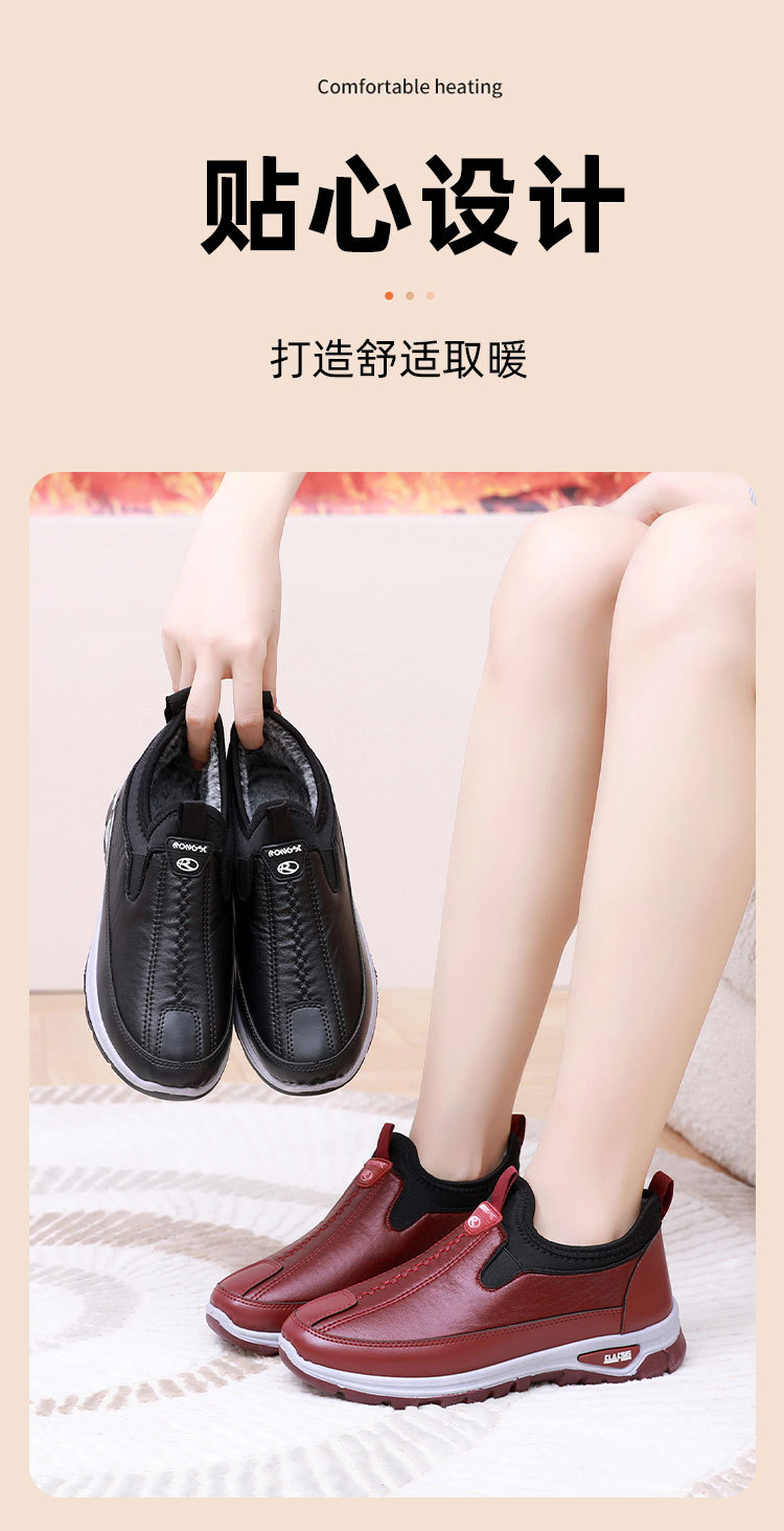 겨울 오래 된 베이징 면 신발 여자의 가죽 방수 따뜻한 중년 및 노인 발목 부츠 기모 두꺼운 미끄럼 방지 스노우 부츠