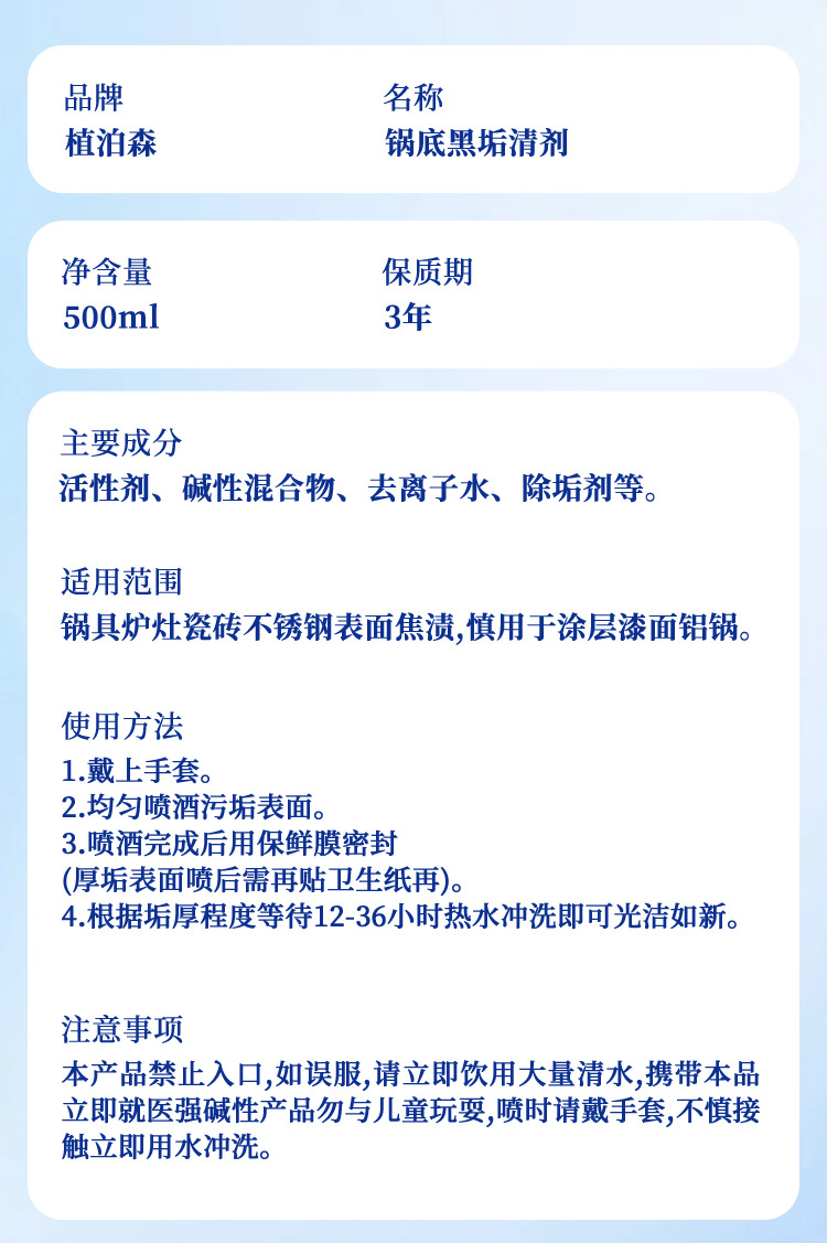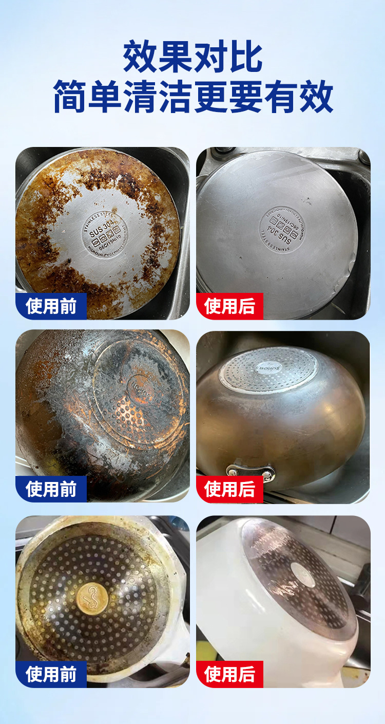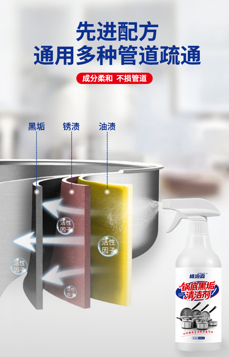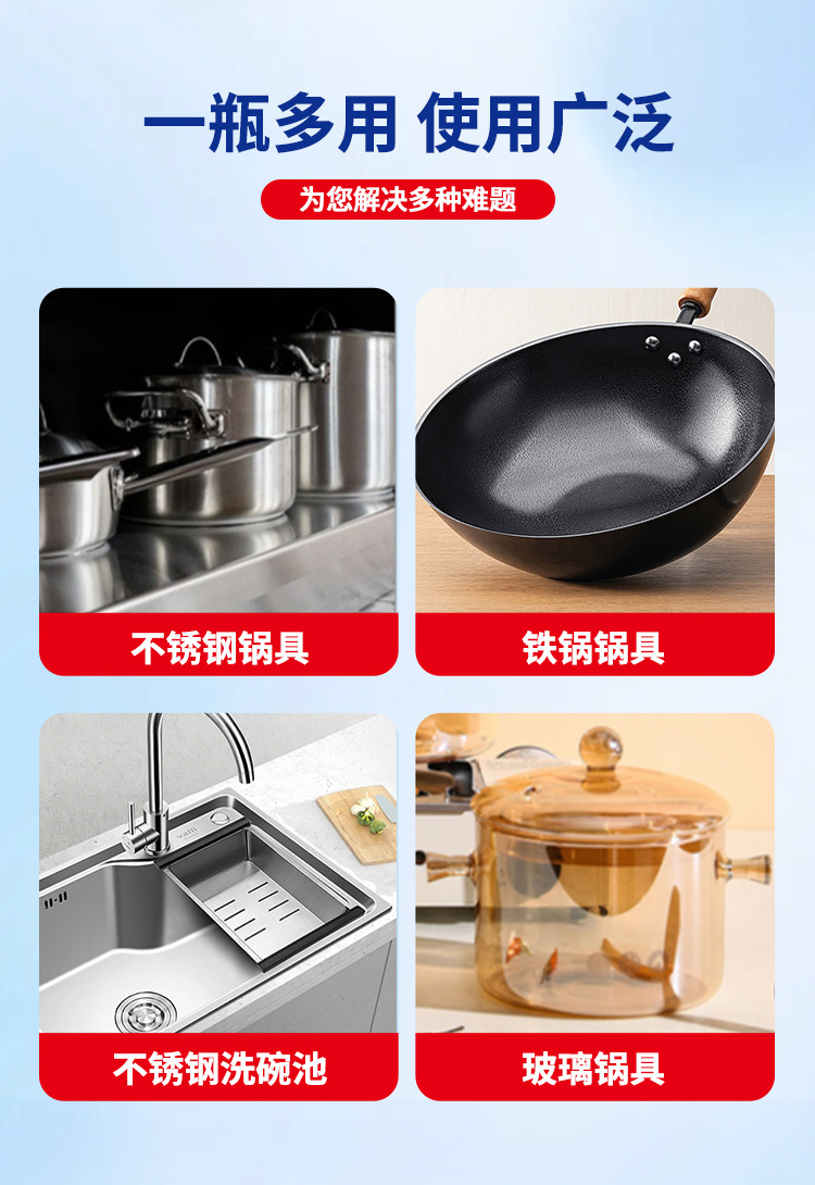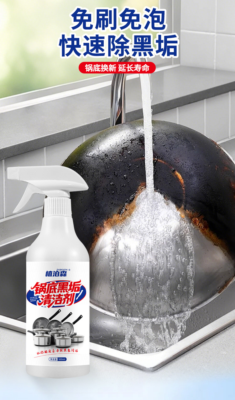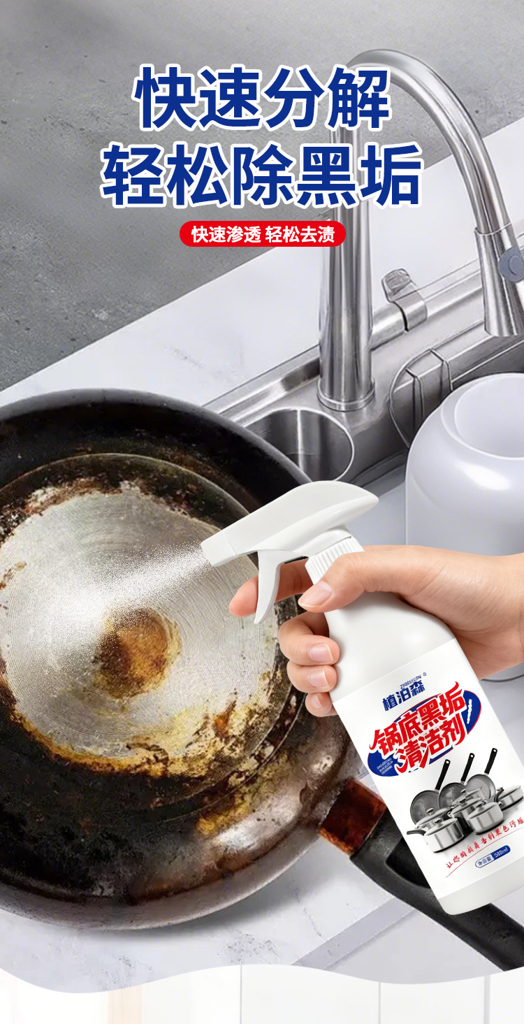 가정용 냄비 바닥 검은 스케일 클리너 스테인레스 스틸 클리너 원 스프레이 클린 포커스 클리너 철 냄비 디스케일링 및 얼룩 제거제