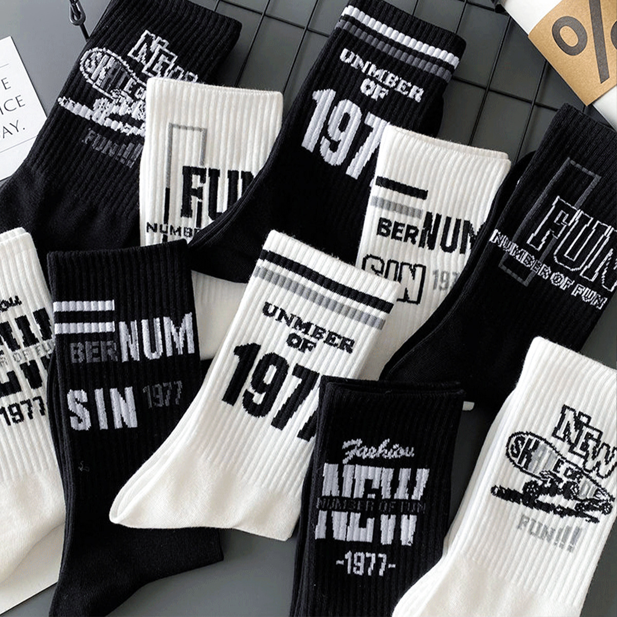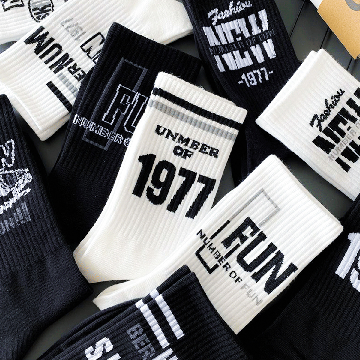 Zhuji 양말 남자 스타킹 가을 및 겨울 중간 길이의 스타킹 트렌디 한 올 매치 미국 스포츠 남자 양말 하이 탑 스타킹 증가스토어 가기