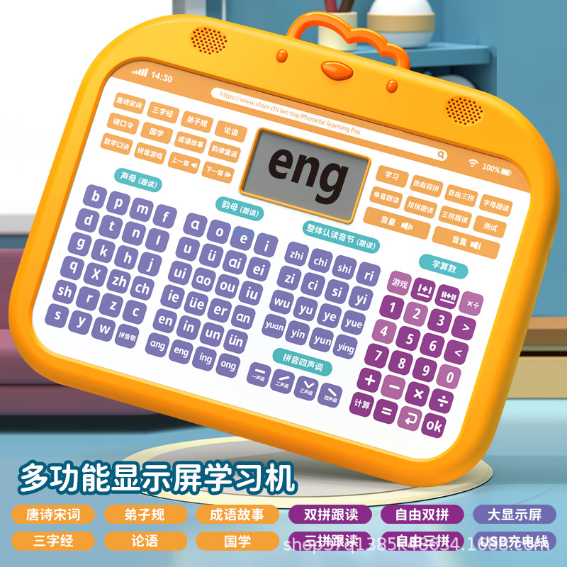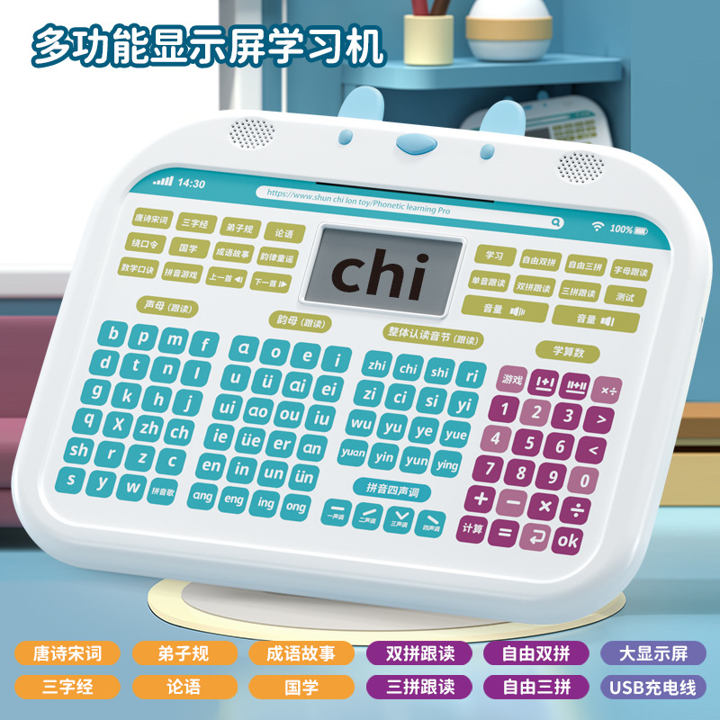 Shun Qilong 어린 아이들을위한 1 학년 병음 학습 기계 중국 병음 음성 읽기 지능형 교육 조기 교육 기계 장난감