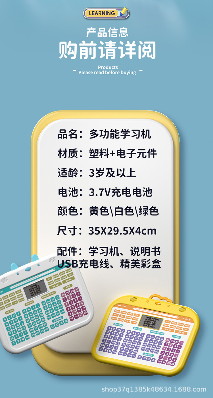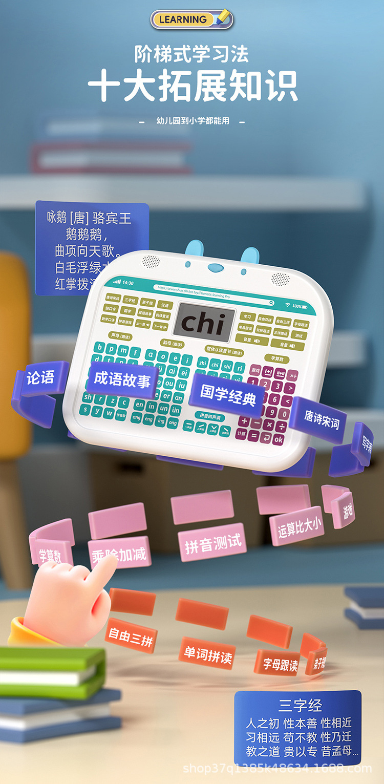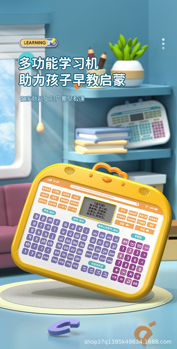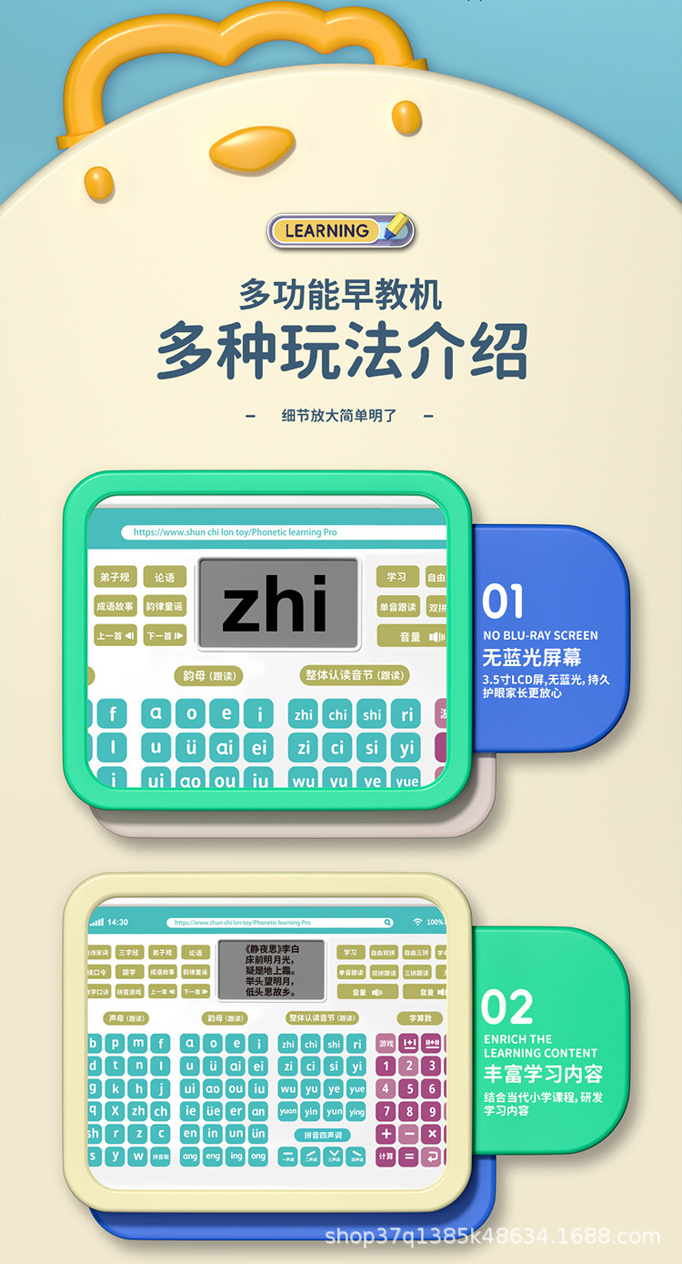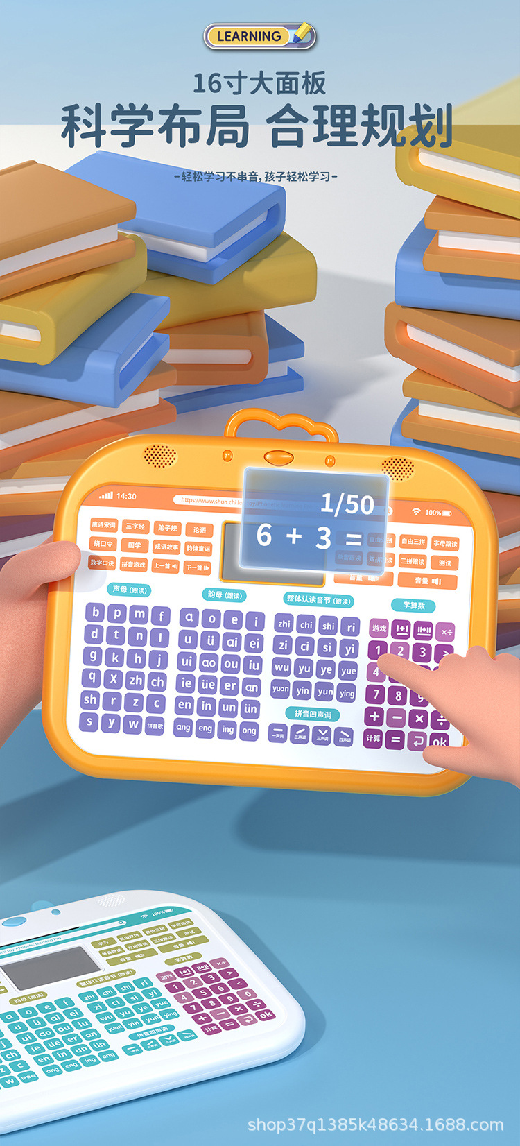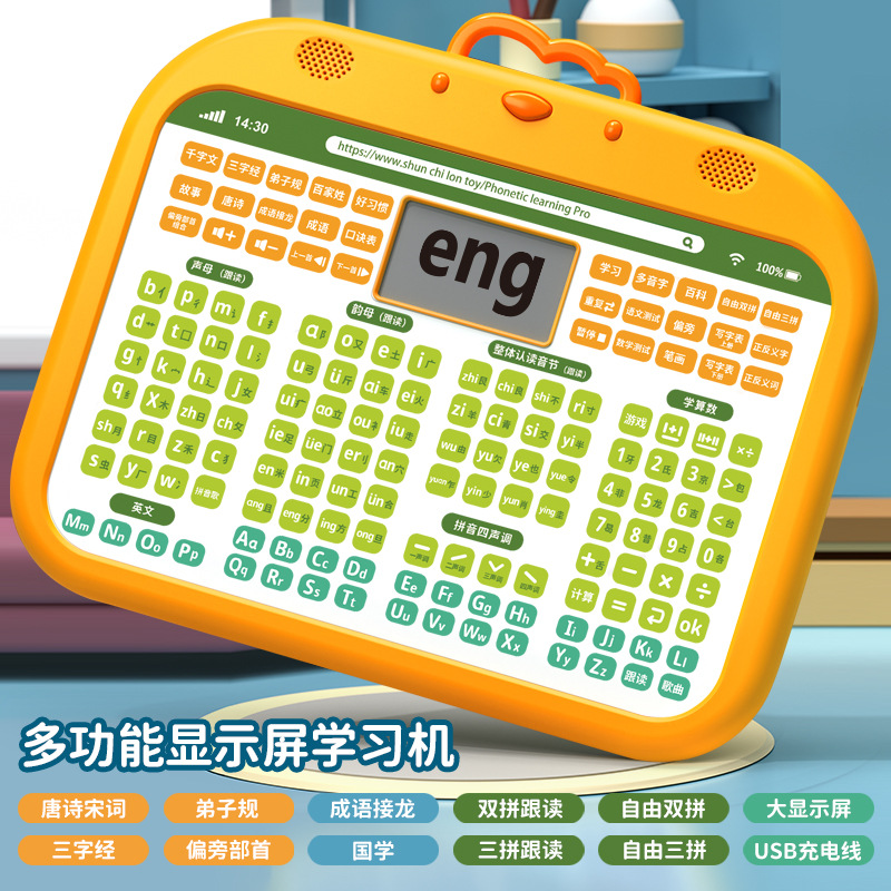 Shun Qilong 어린 아이들을위한 1 학년 병음 학습 기계 중국 병음 음성 읽기 지능형 교육 조기 교육 기계 장난감스토어 가기