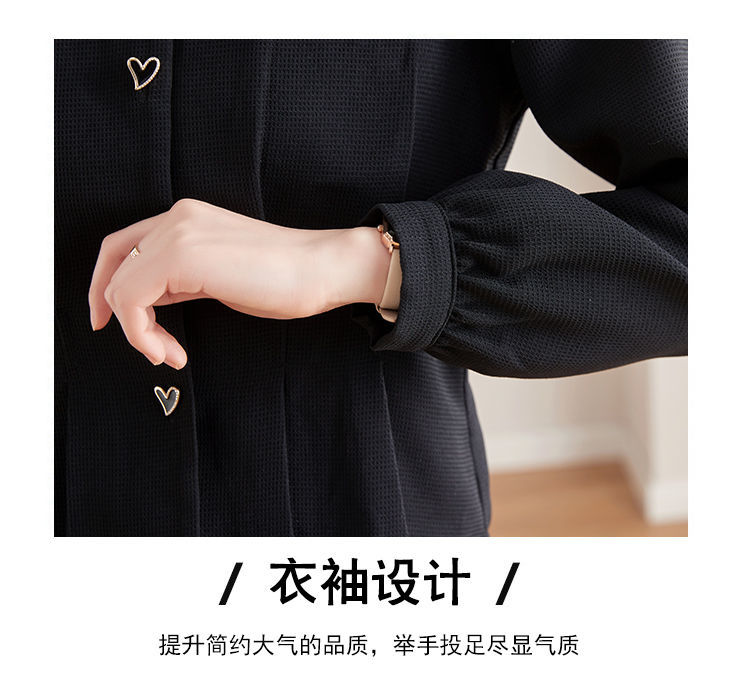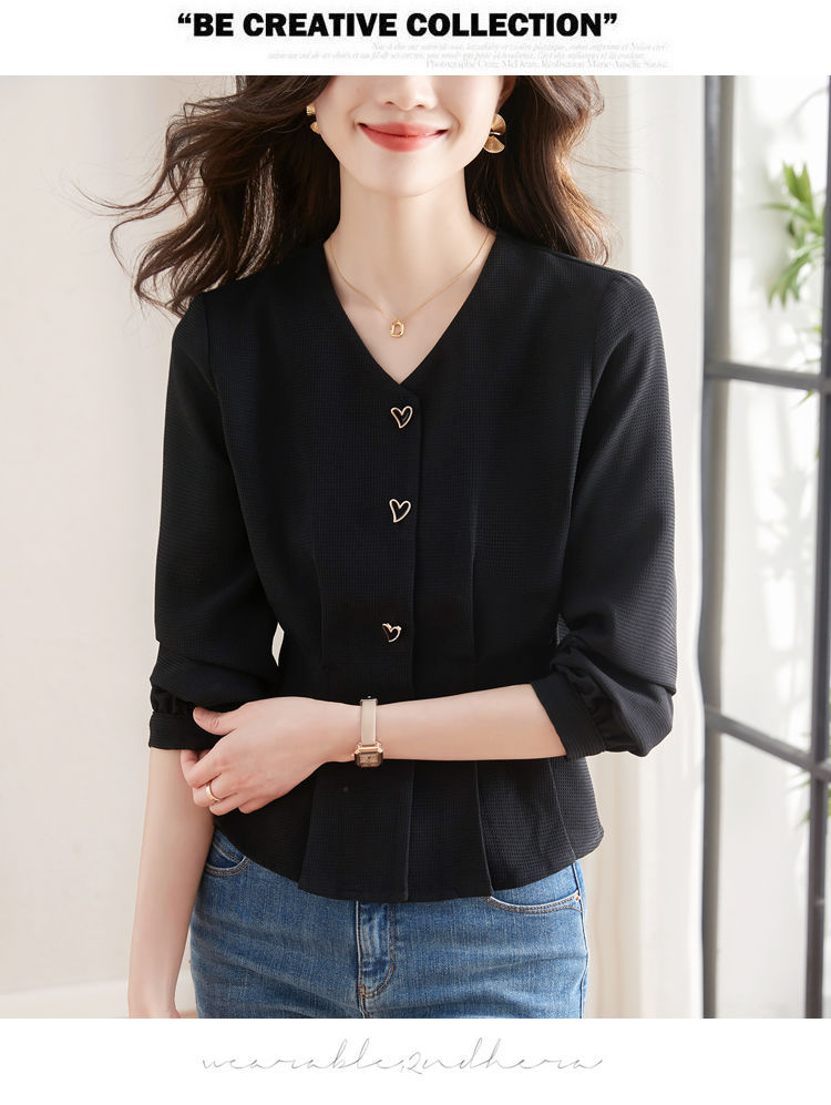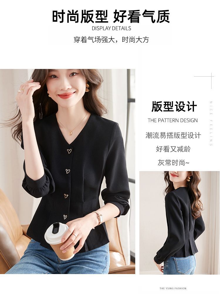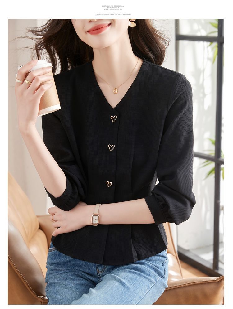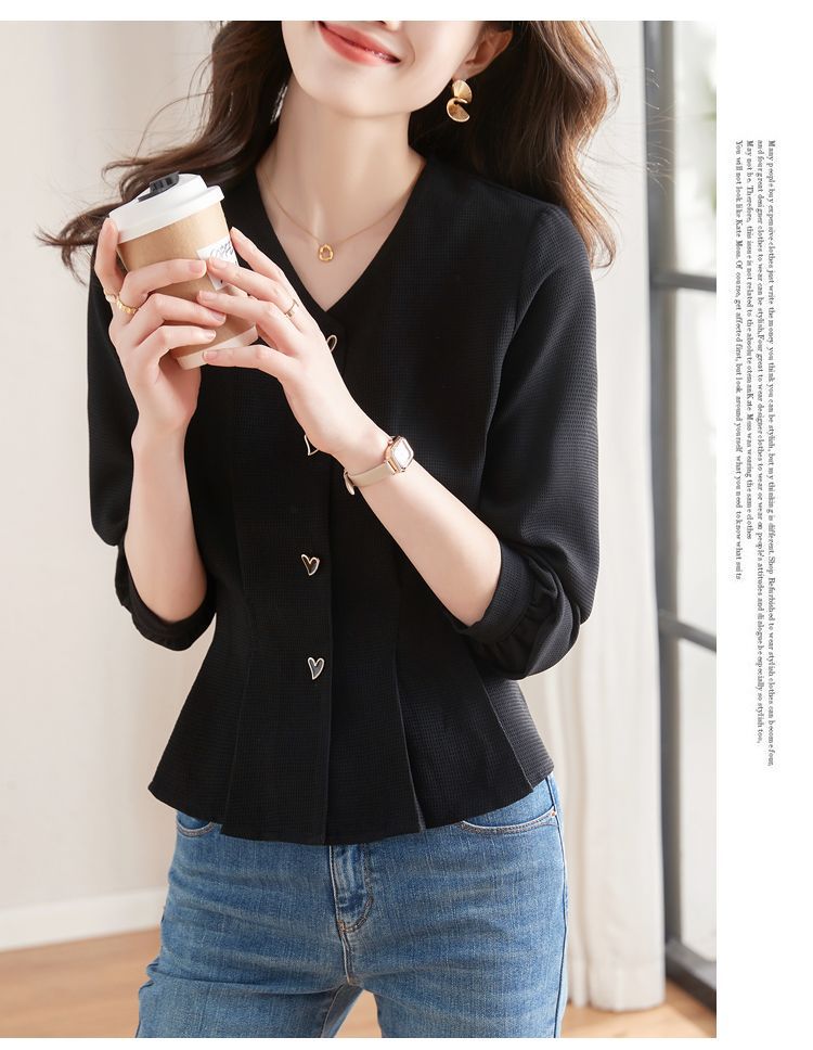 V 넥 블랙 셔츠 여성 긴팔 2025 가을 새로운 스타일 시크하고 아름다운 셔츠 느낌 허리 짧은 탑스토어 가기