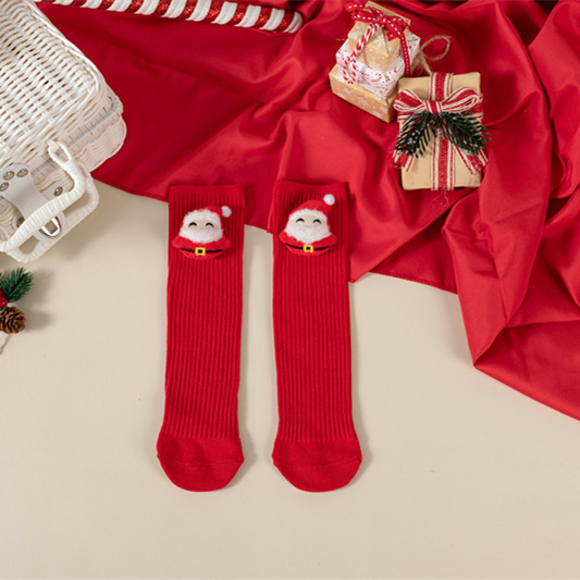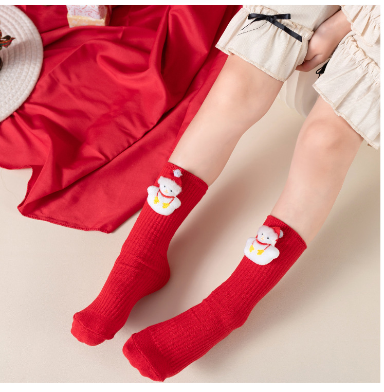 크리스마스 어린이 양말 만화 인형 양말 가을과 겨울 소녀 빨간 송아지 양말 새해 빨간 튜브 양말