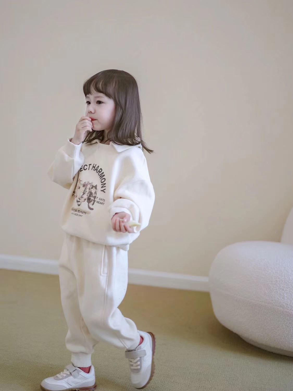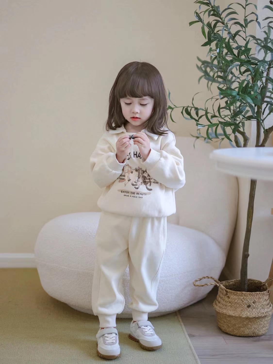 여아 세련된 고양이 세트 2023 패션 스포츠 여자의 큰 소년 봄 한국 스타일 인터넷 축하 캐주얼 투피스 세트스토어 가기
