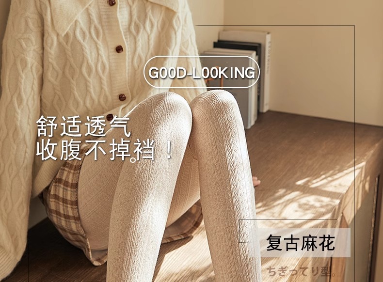 일본 스타일 복고풍 니트 트위스트 레깅스 여자의 겉옷 가을과 겨울 스타일 기모 두꺼운 흰색 팬티 스타킹