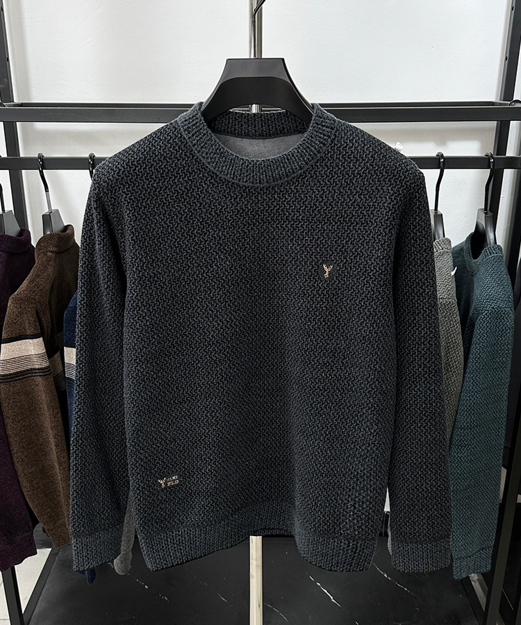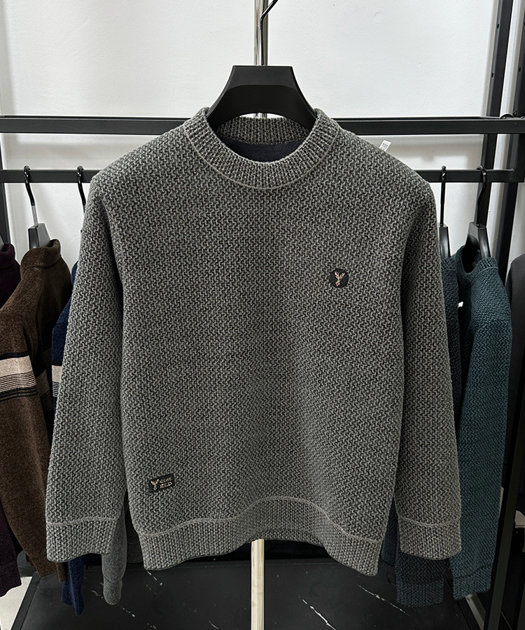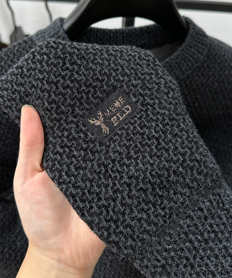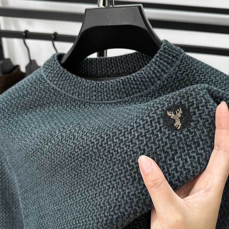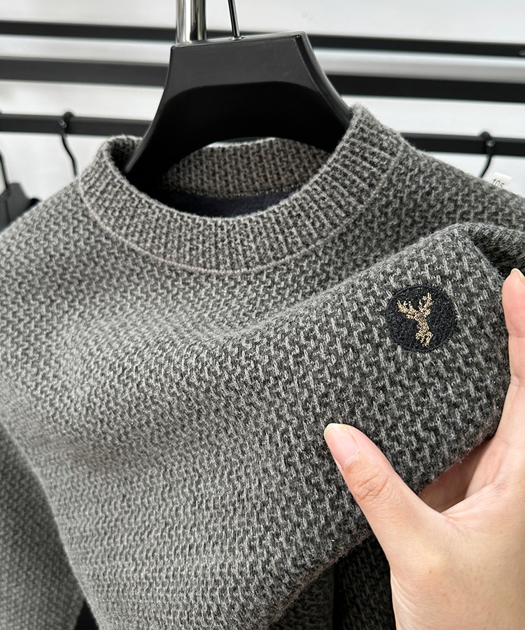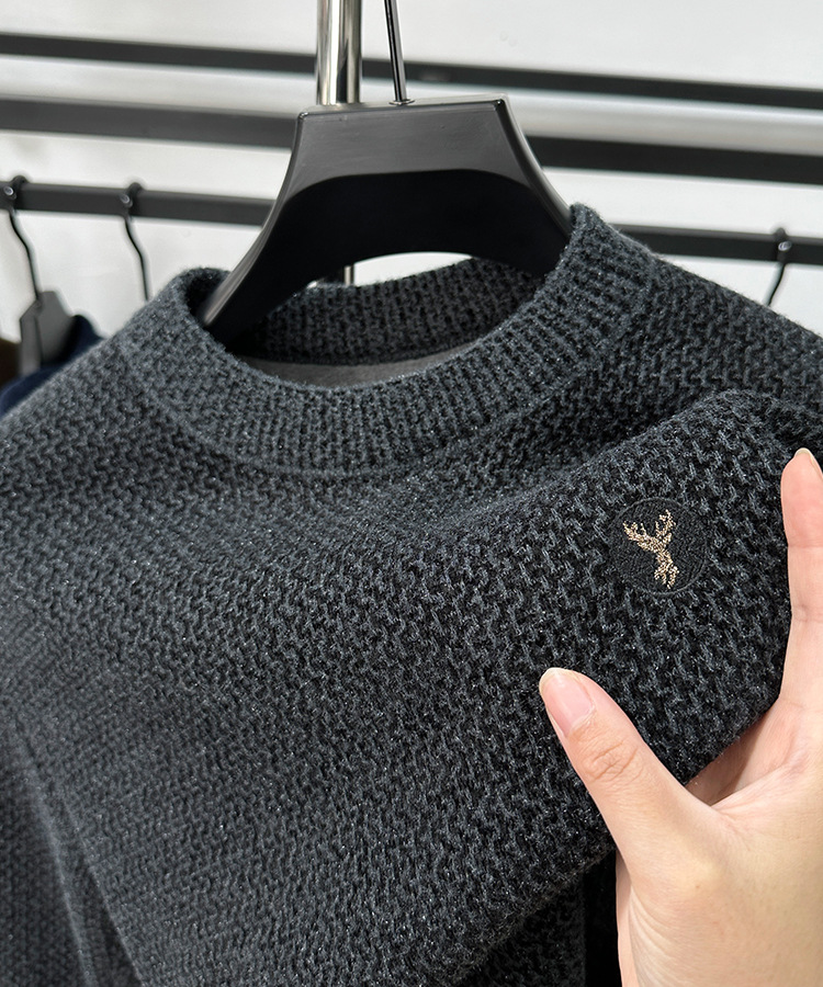 2023 겨울 남성 따뜻한 라운드 넥 플러스 벨벳 캐주얼 뿔 자수 로고 패션 올인원 벨벳 풀오버 스웨터 탑스토어 가기