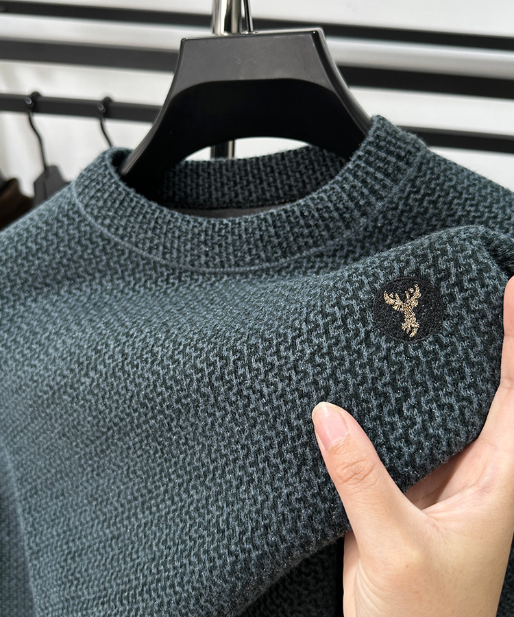 2023 겨울 남성 따뜻한 라운드 넥 플러스 벨벳 캐주얼 뿔 자수 로고 패션 올인원 벨벳 풀오버 스웨터 탑