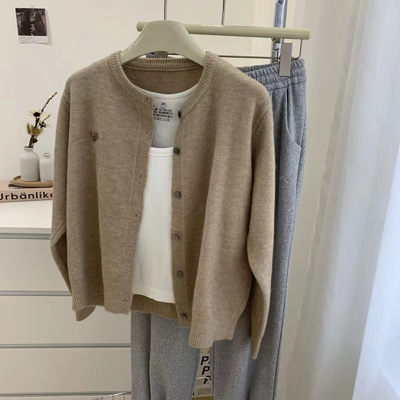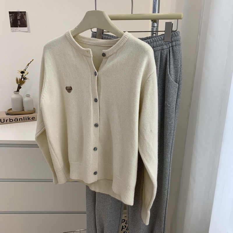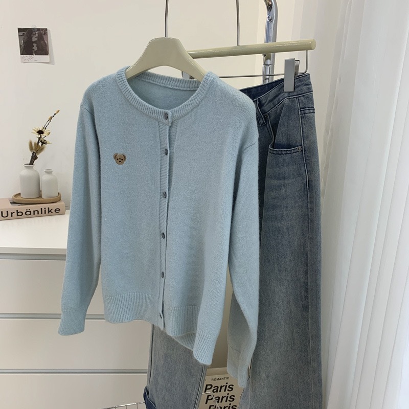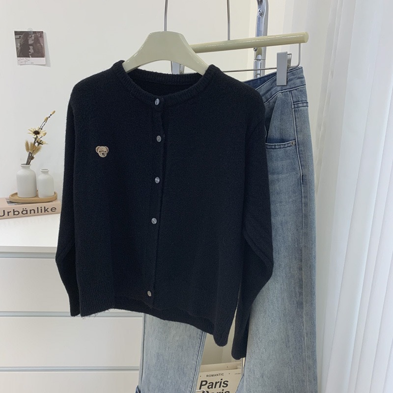 자수 곰돌이 가을 겨울 신상 패션 라운드넥 컬러 버튼 양모 소프트 솔리드 컬러 캐주얼 니트 가디건스토어 가기