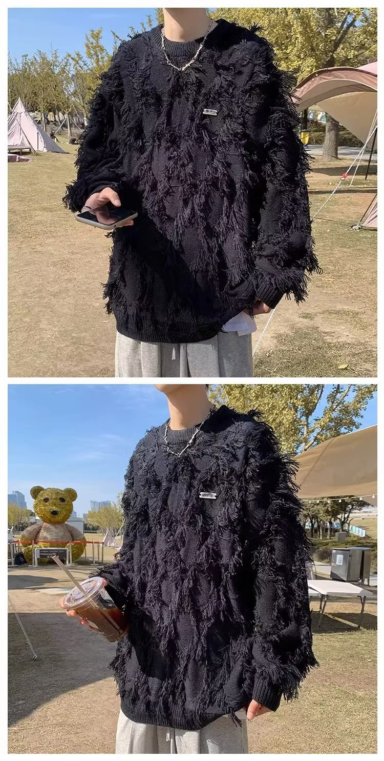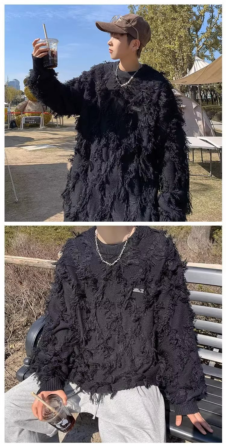 하이 스트리트 패션 브랜드 탄산 스웨터 게으른 스타일 남자의 가을과 겨울 두꺼운 튀김 거리 디자인 스타일 커플 풀오버 스웨터